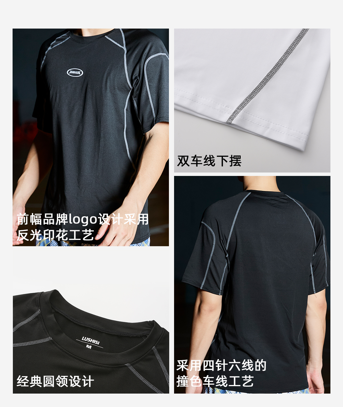 LUSHISI磨炼主题短袖T恤夏季吸湿透气运动紧身衣薄款健身篮球跑步