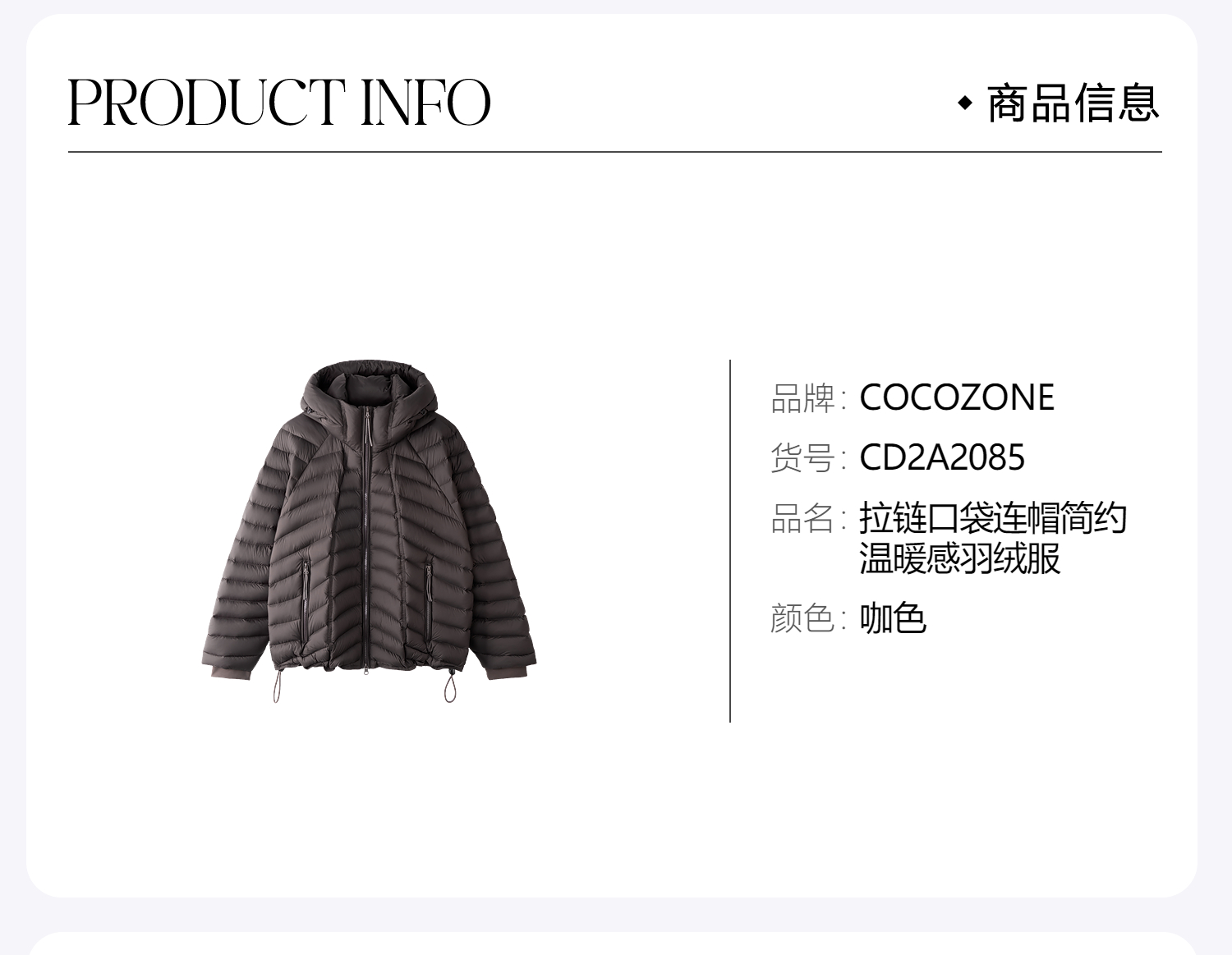 COCO ZONE 刘一一 “大白鹅”拉链口袋连帽温暖感羽绒服 CD2A2085
