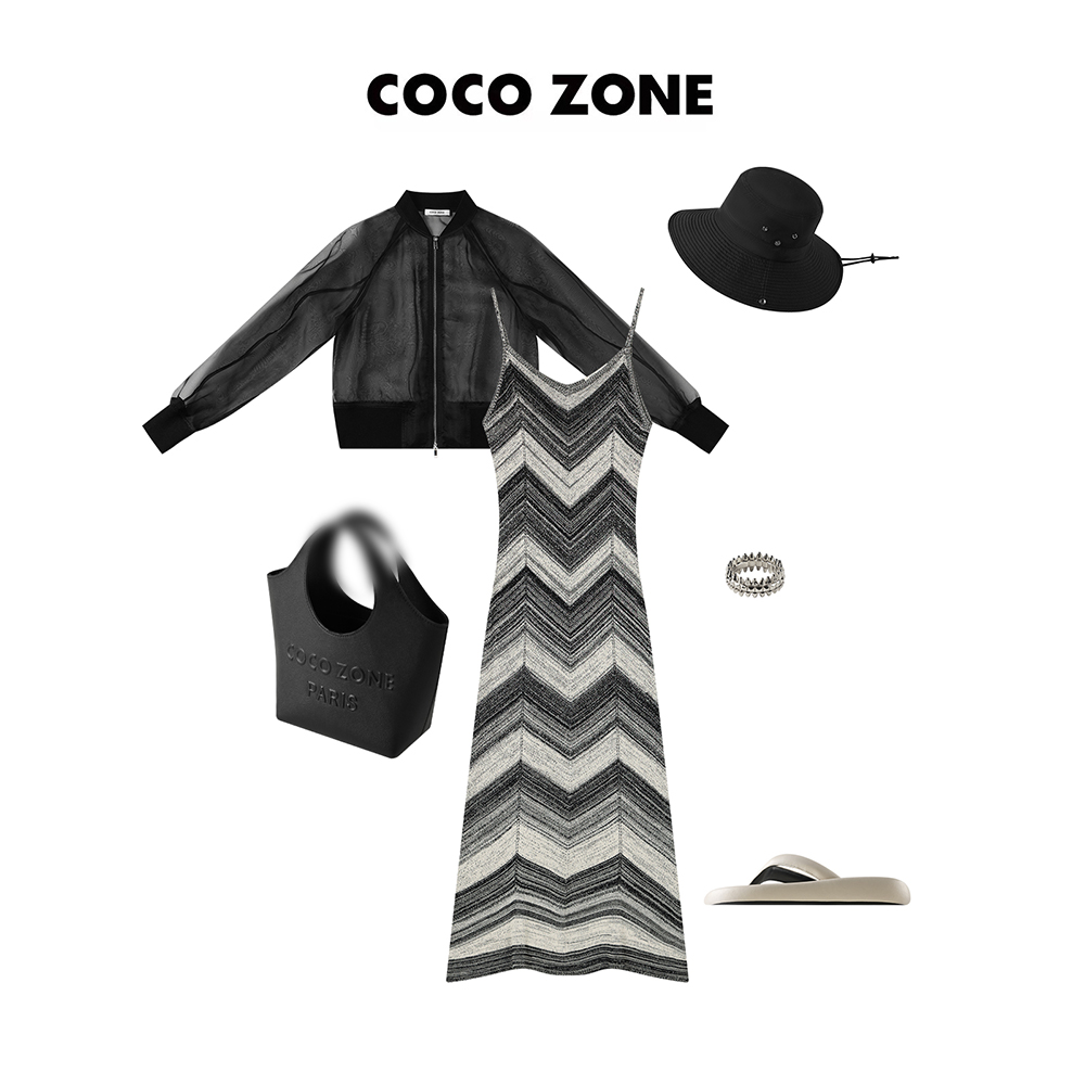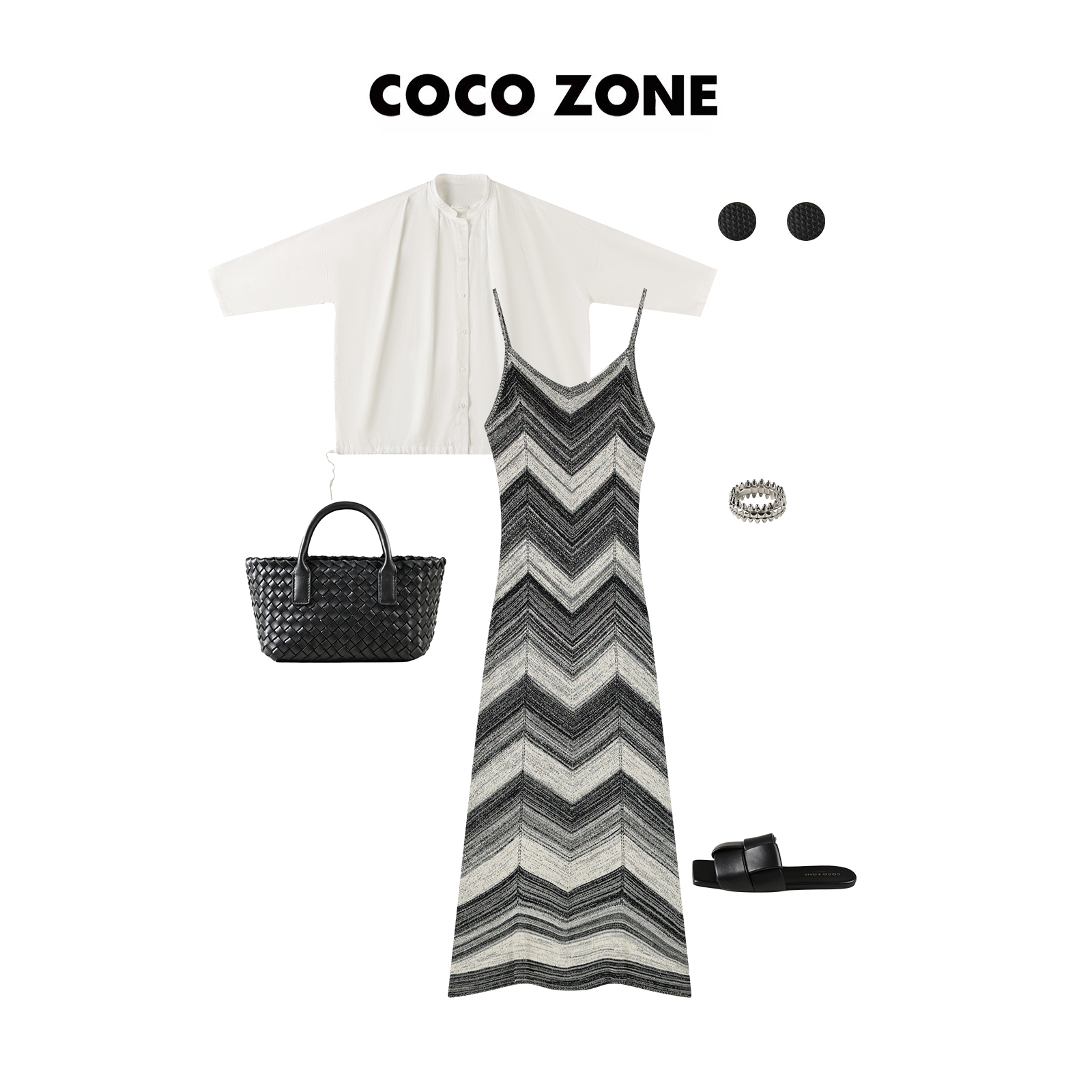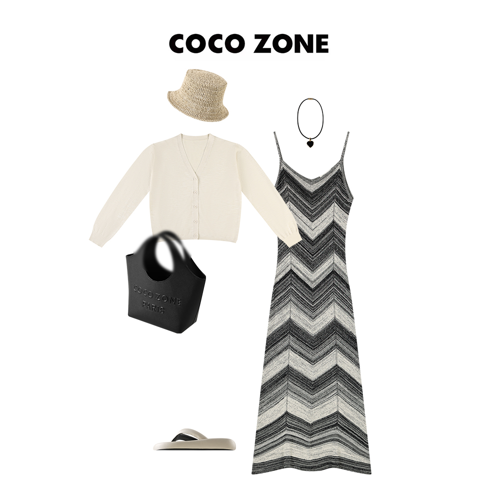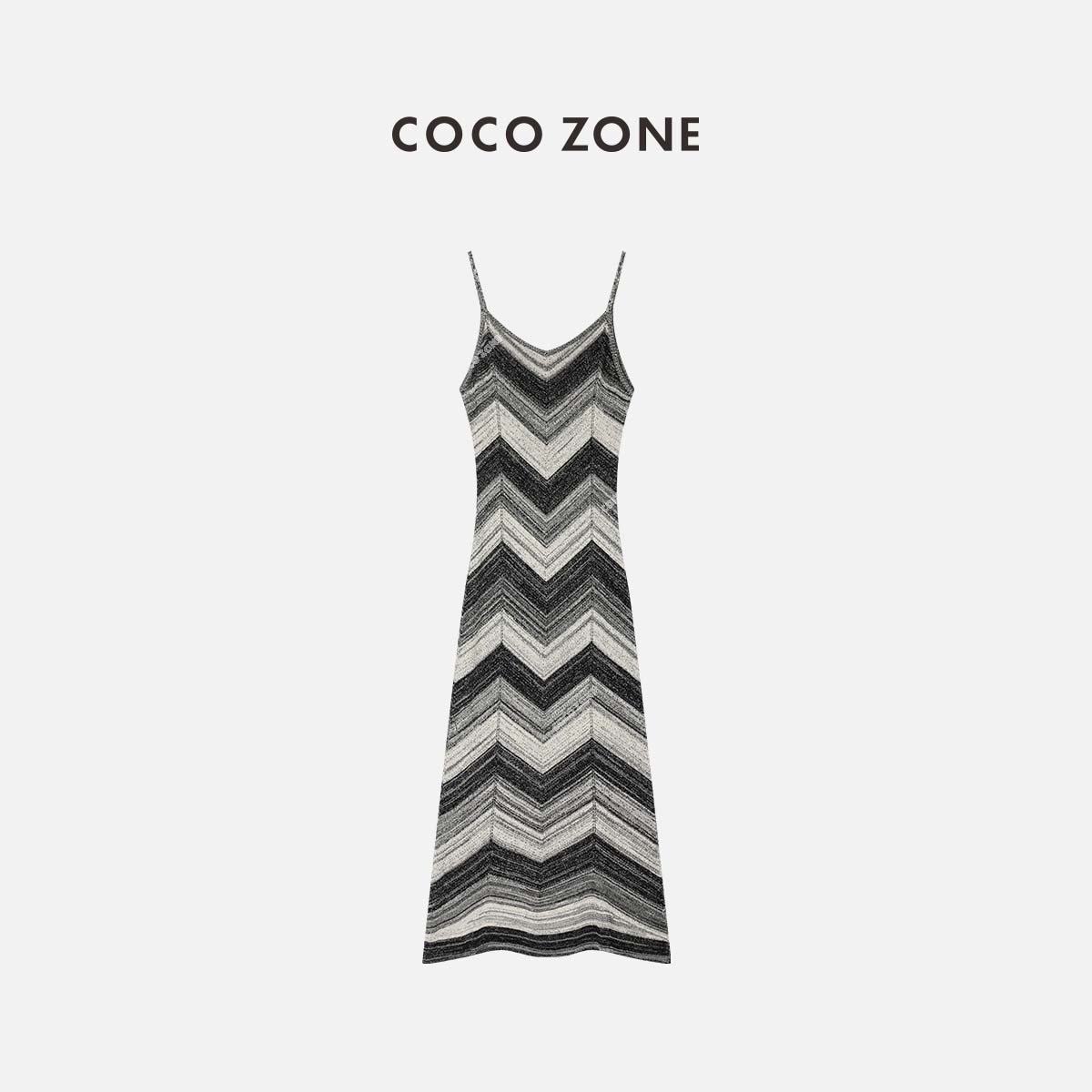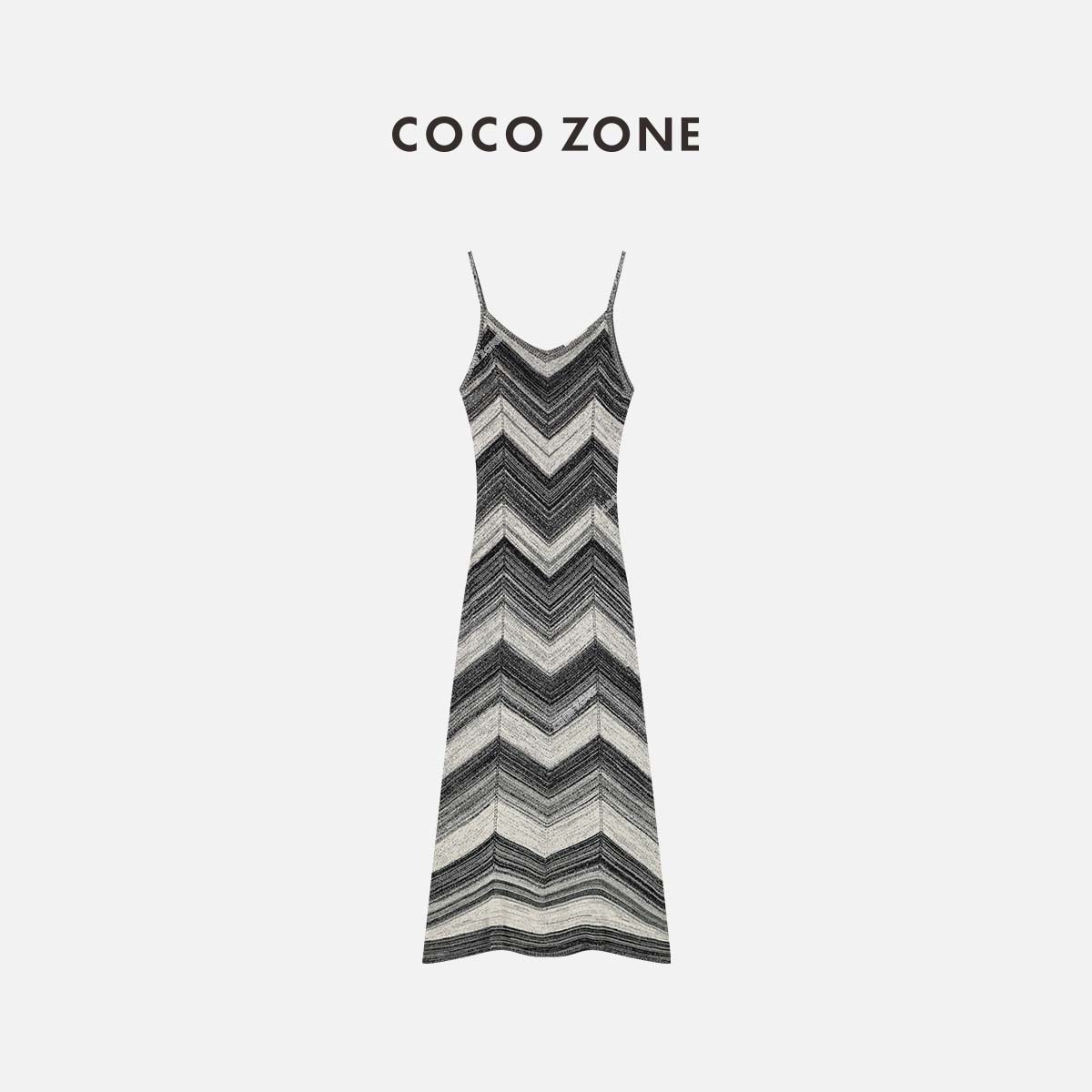 COCO ZONE 新款气质修身款针织波浪纹吊带裙 23C18793