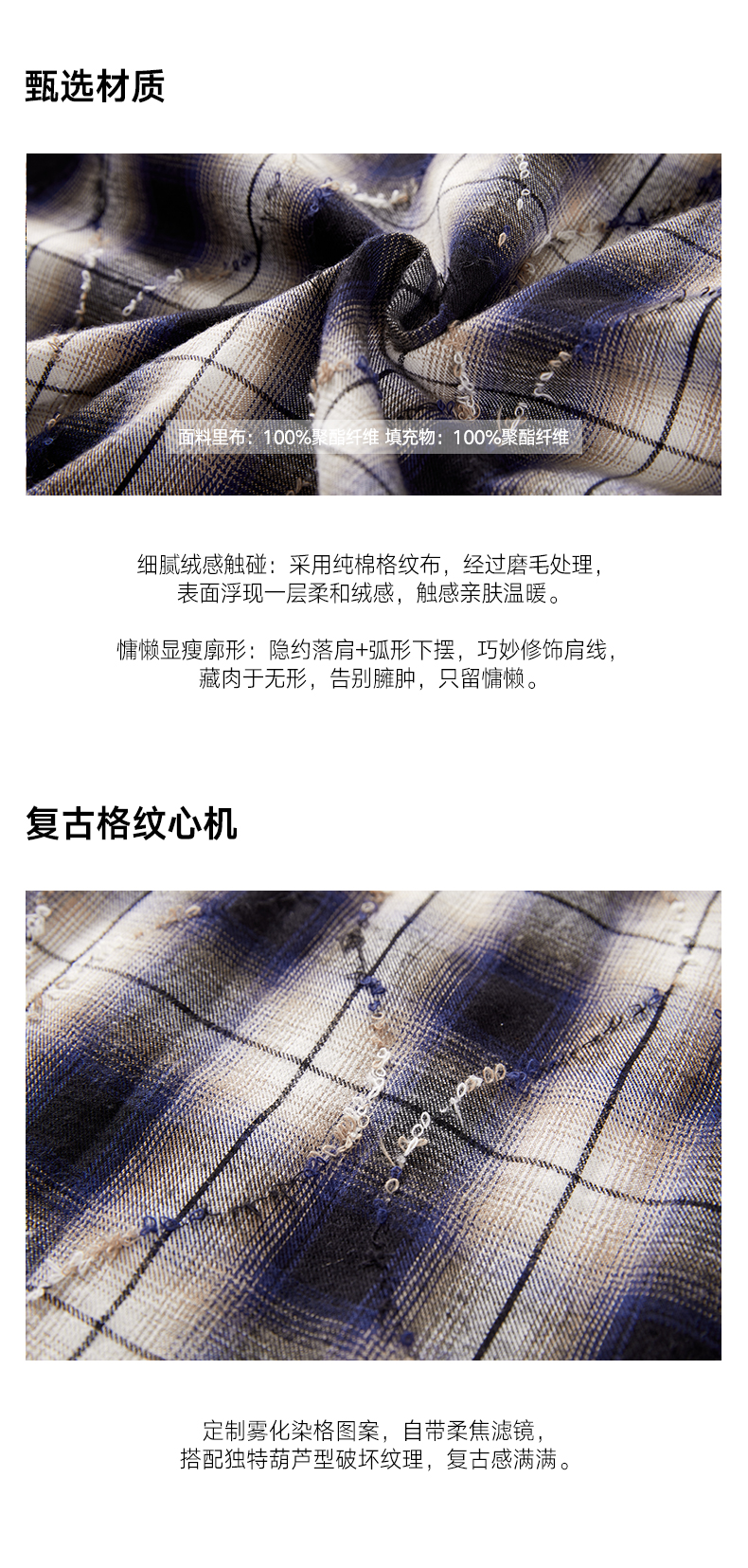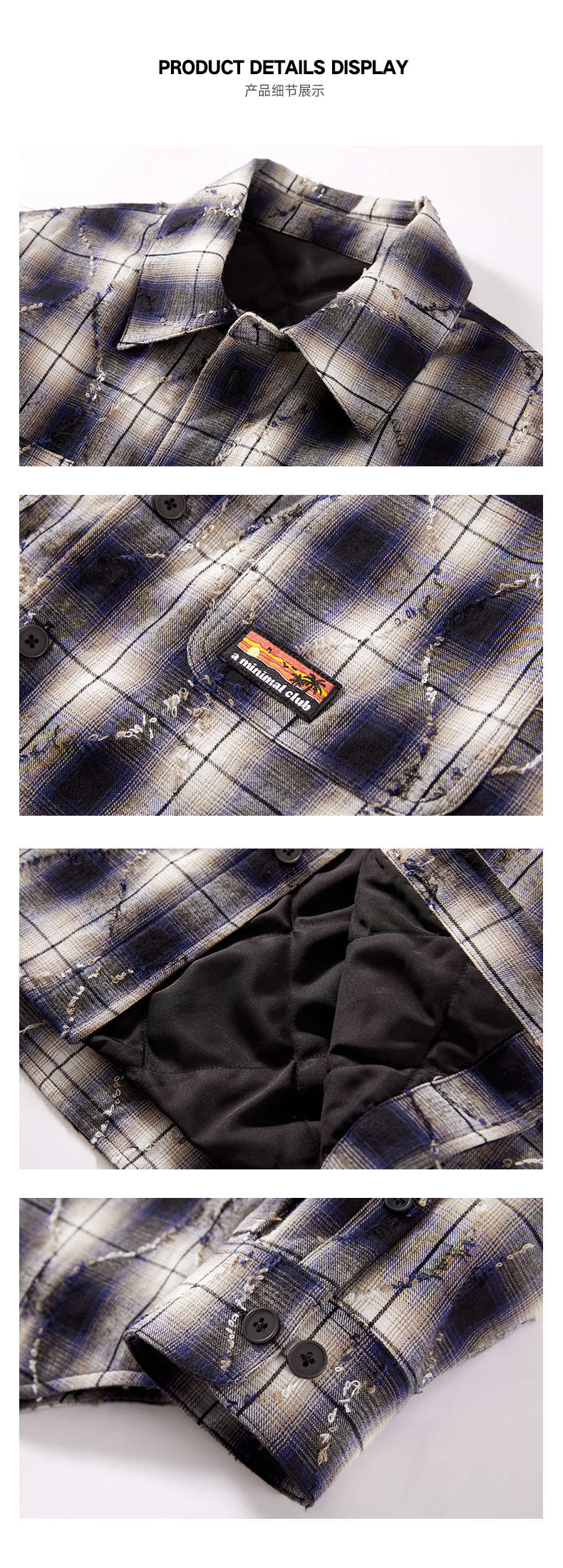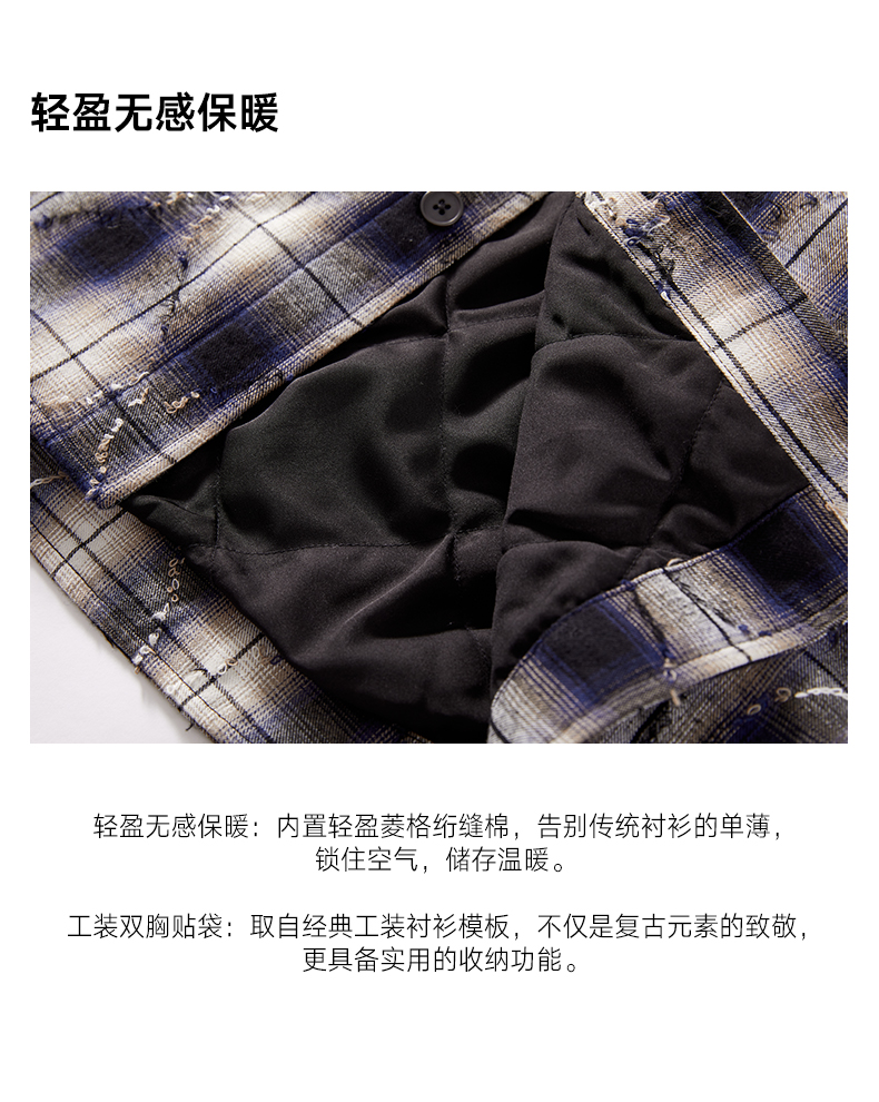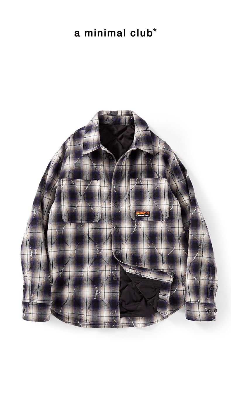 a minimal club美式高街100%棉格纹布棉服毛边菱格绗缝棉AM5APJ02
