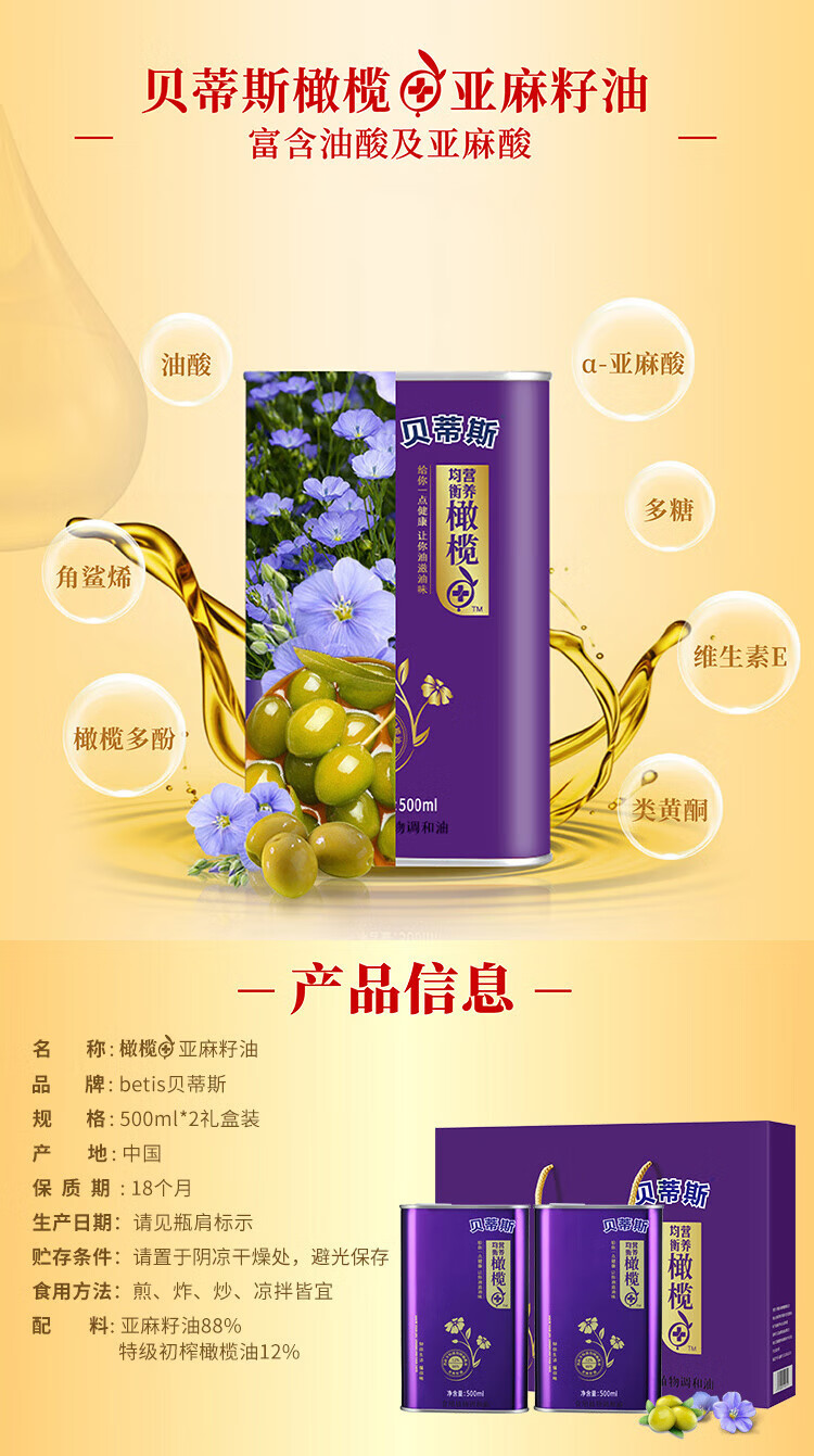 贝蒂斯橄榄亚麻籽油500ml