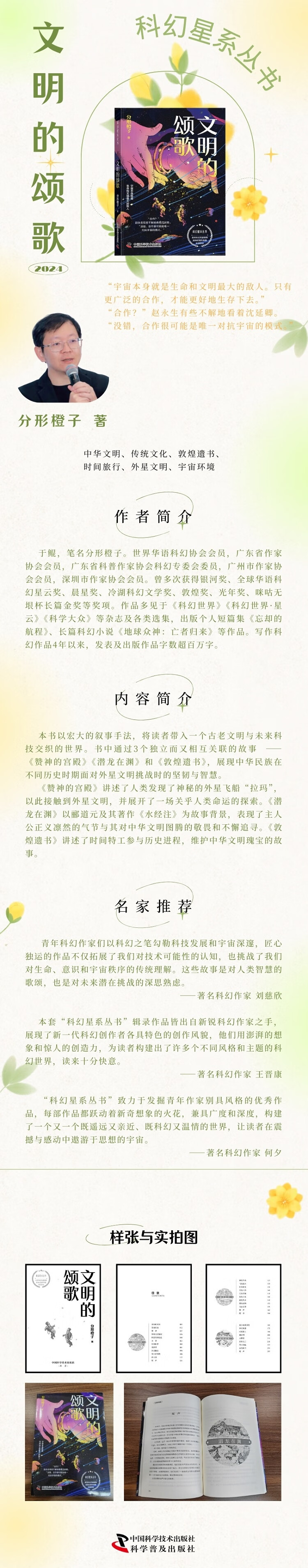 “科幻星系丛书”致力于发掘青年作家别具风格的优秀作品,每部作品都跃动着新奇想象的火花,兼具广度和深度,构建了一个又一个既遥远又亲近、既科幻又温情的世界,让读者在震撼与感动中遨游于思想的宇宙。