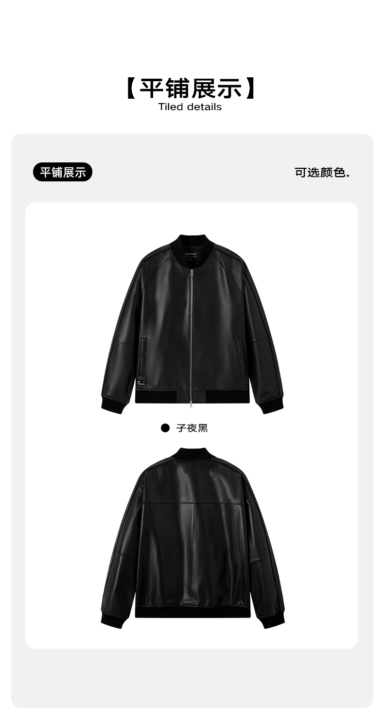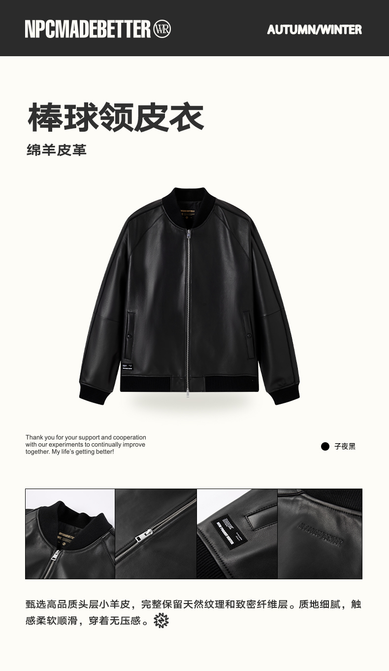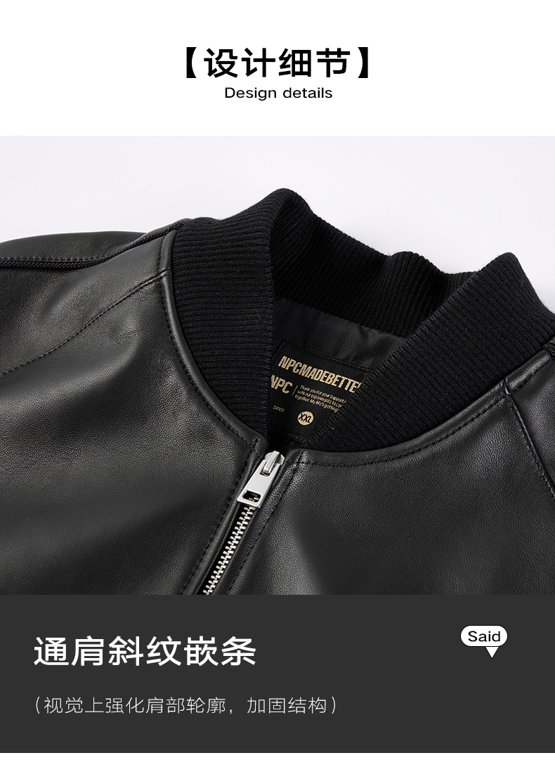 NPC潮牌立体剪裁棒球领皮衣绵羊皮革复古老钱短款春上新NP5CTJ28