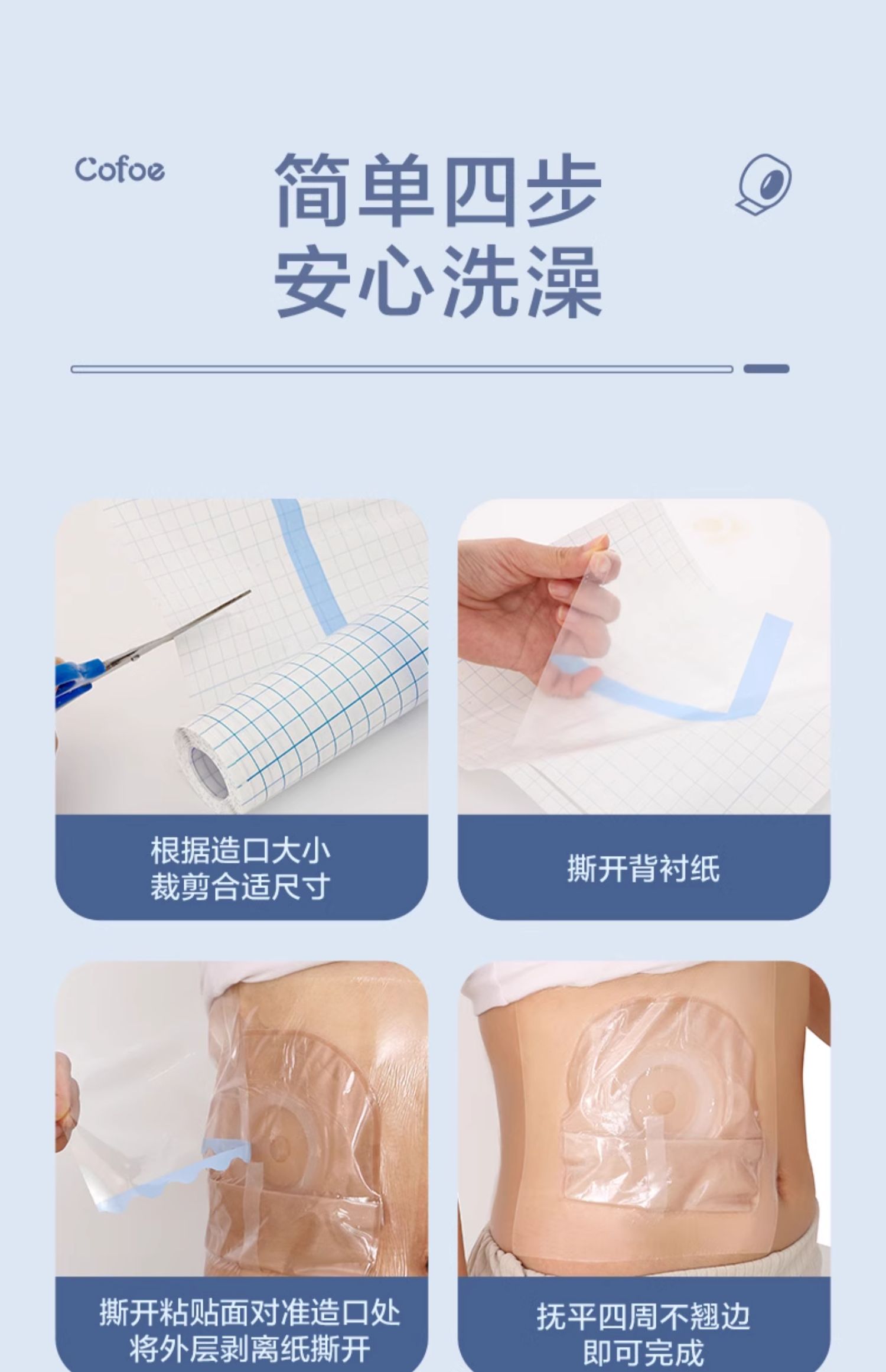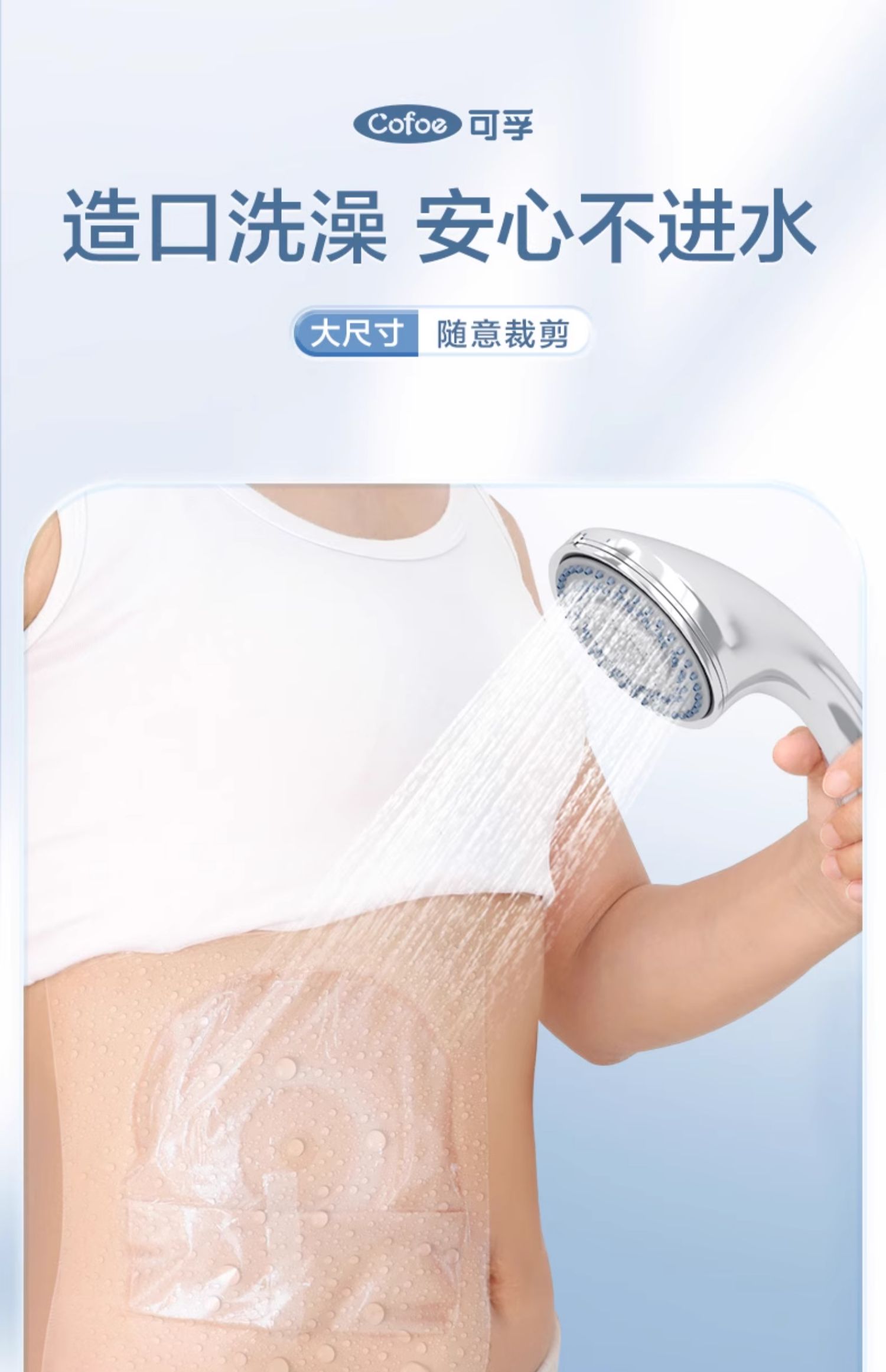 可孚造口洗澡贴护理用品大号伤口保护医用手术后防水贴膜透明游泳