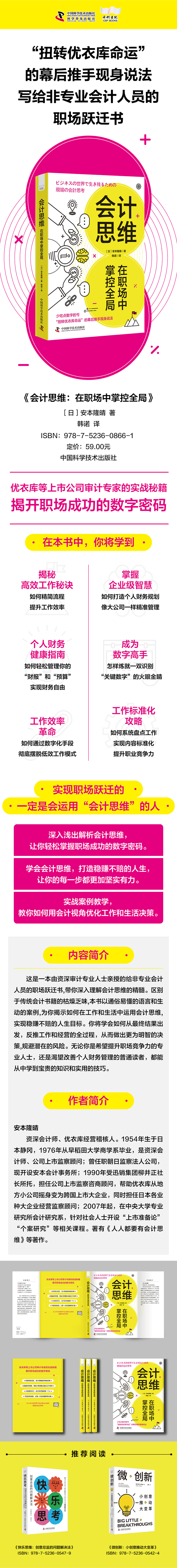 1.本书由“扭转优衣库命运”的幕后推手现身说法,将会计思维作为解锁企业奥秘的钥匙,却又不囿于传统会计的局限,为读者揭示数字作为工作和生活的强大引擎,逐步揭开职场成功背后隐藏的数字密码。