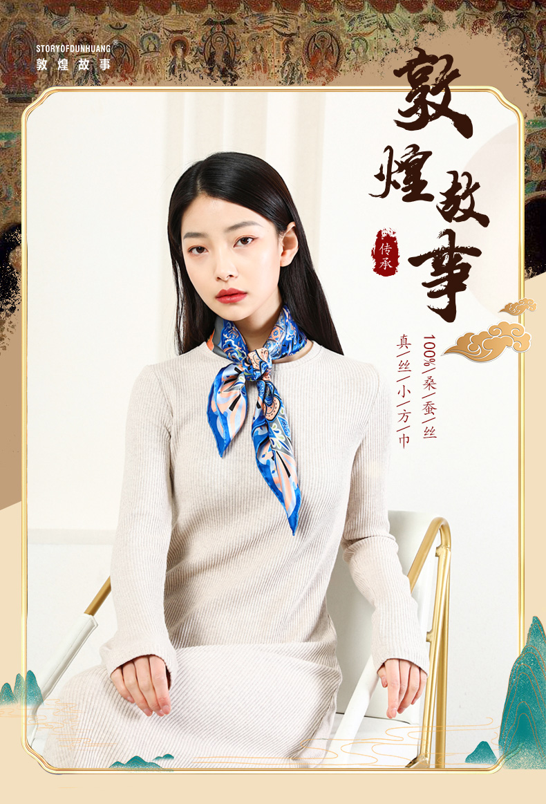 敦煌故事桑蚕丝印花送礼中国风女丝巾