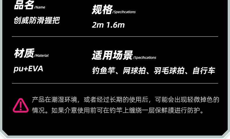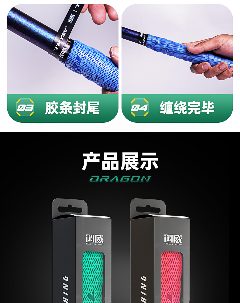 创威鱼竿缠把带龙骨吸汗带加长防滑手把套双层EVA缠绕带防电套