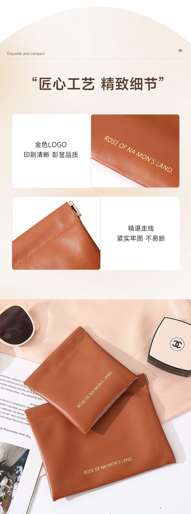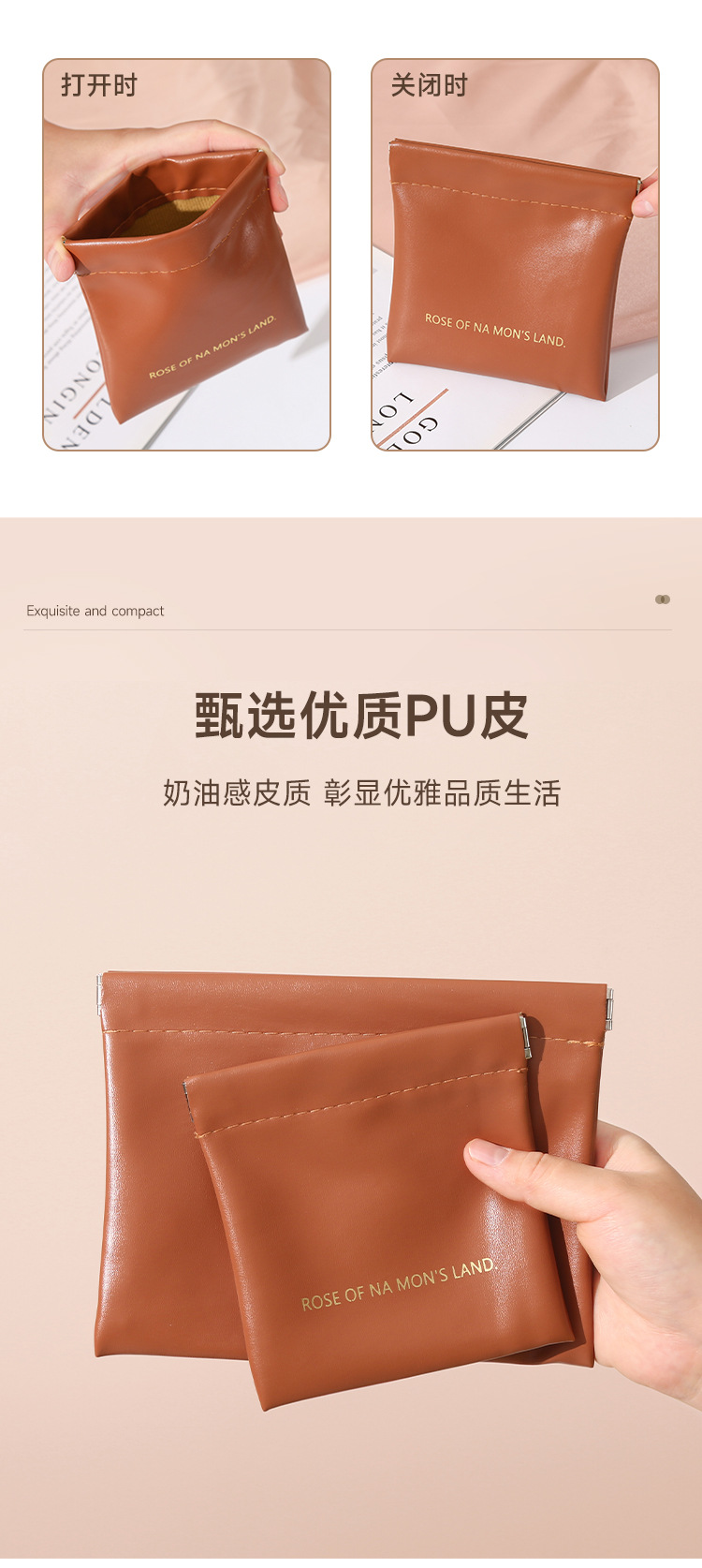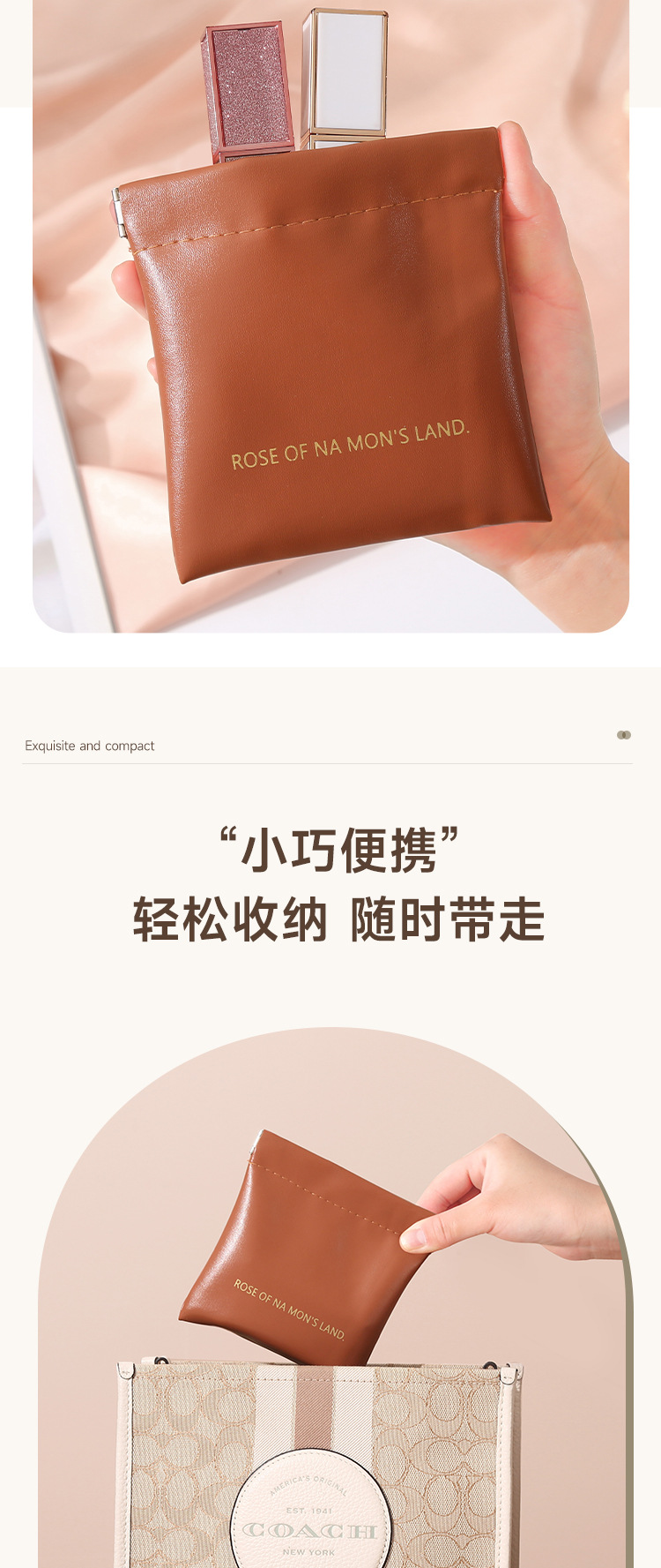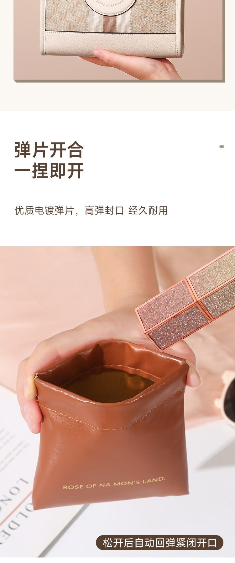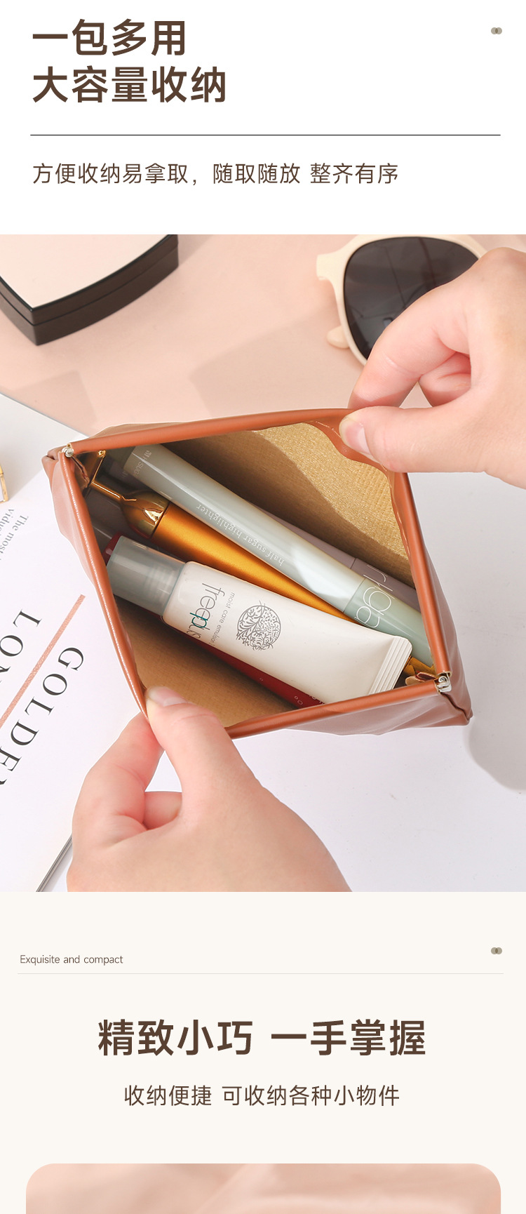 PU弹片防水化妆包 便携口红收纳袋随身迷你包大容量小包补妆包压印1个