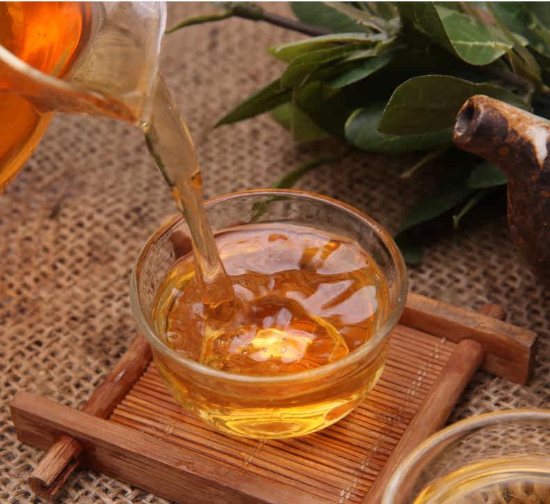 茶汤内含物质丰富、汤感粘稠、口感顺滑、韵味悠长。金黄红亮的茶汤明艳诱人、茶雾缭绕、更显韵味十足。经陈放后的易武茶汤顺滑绵柔、灵巧中唇齿流香、饱满纯正中尽显蜜兰香