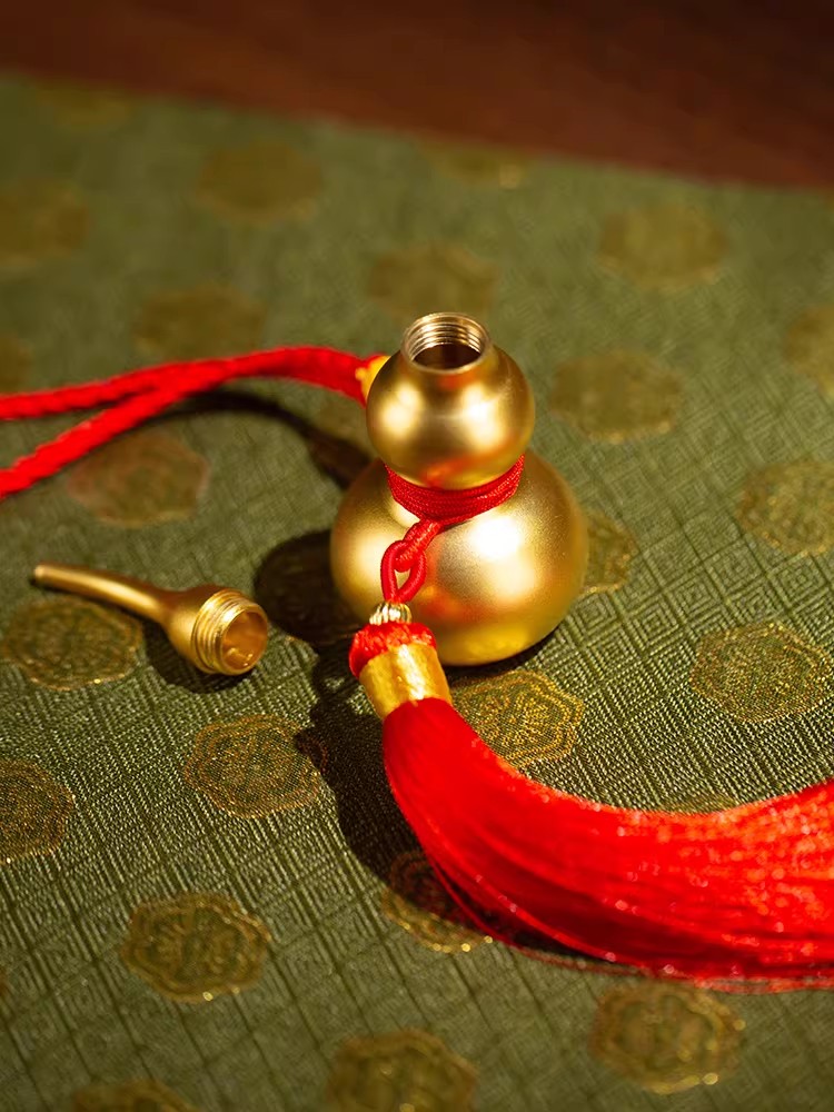 葫芦谐音”福禄“,嘴小肚大,天生具有迎福、聚财的作用。挂饰精巧与美意共生,更寓意福禄欢喜,大吉大利。葫芦作为一个非常百搭的风水好物,也是民俗文化中最常见的吉祥宝瓶,市面上做葫芦的非常多,我们朱炳仁铜这款葫芦造型传统,精妙绝伦,8公分的高度,可做家居摆件、手把玩物、车挂包挂装饰品都可以,葫芦盖螺纹设计可以打开,葫芦身中空可以在里面放五谷杂粮、手抄字体、碎米等作为祈福吉祥好物,拧上之后也是严丝合缝,传统精致,值得入手。