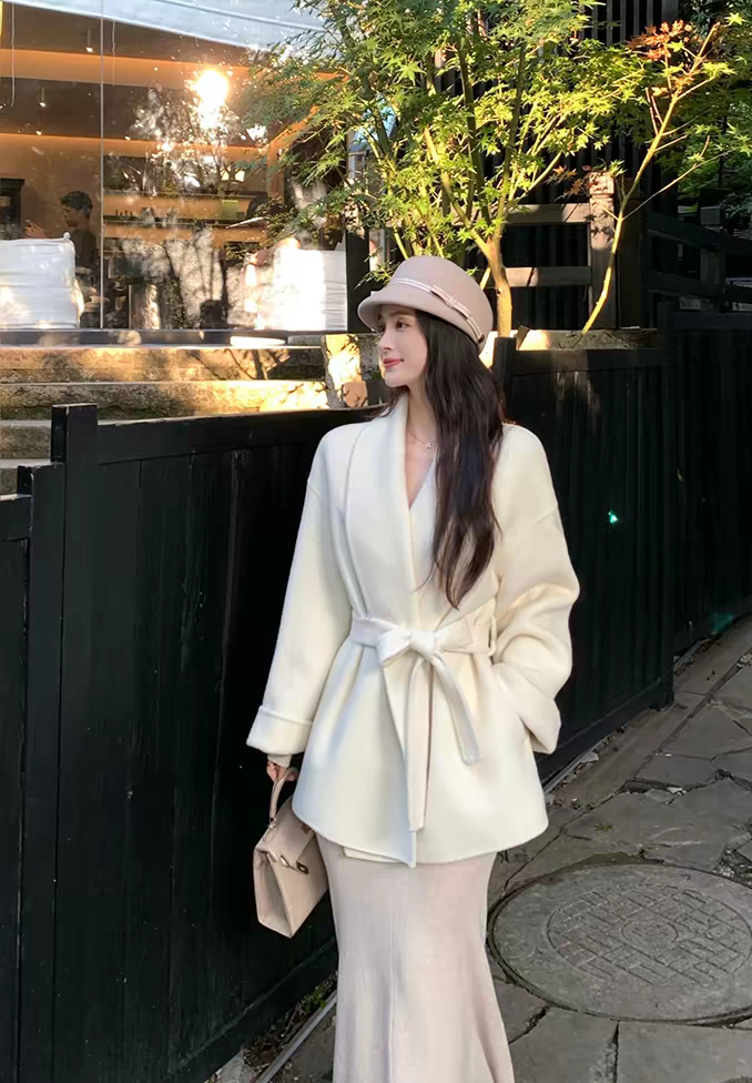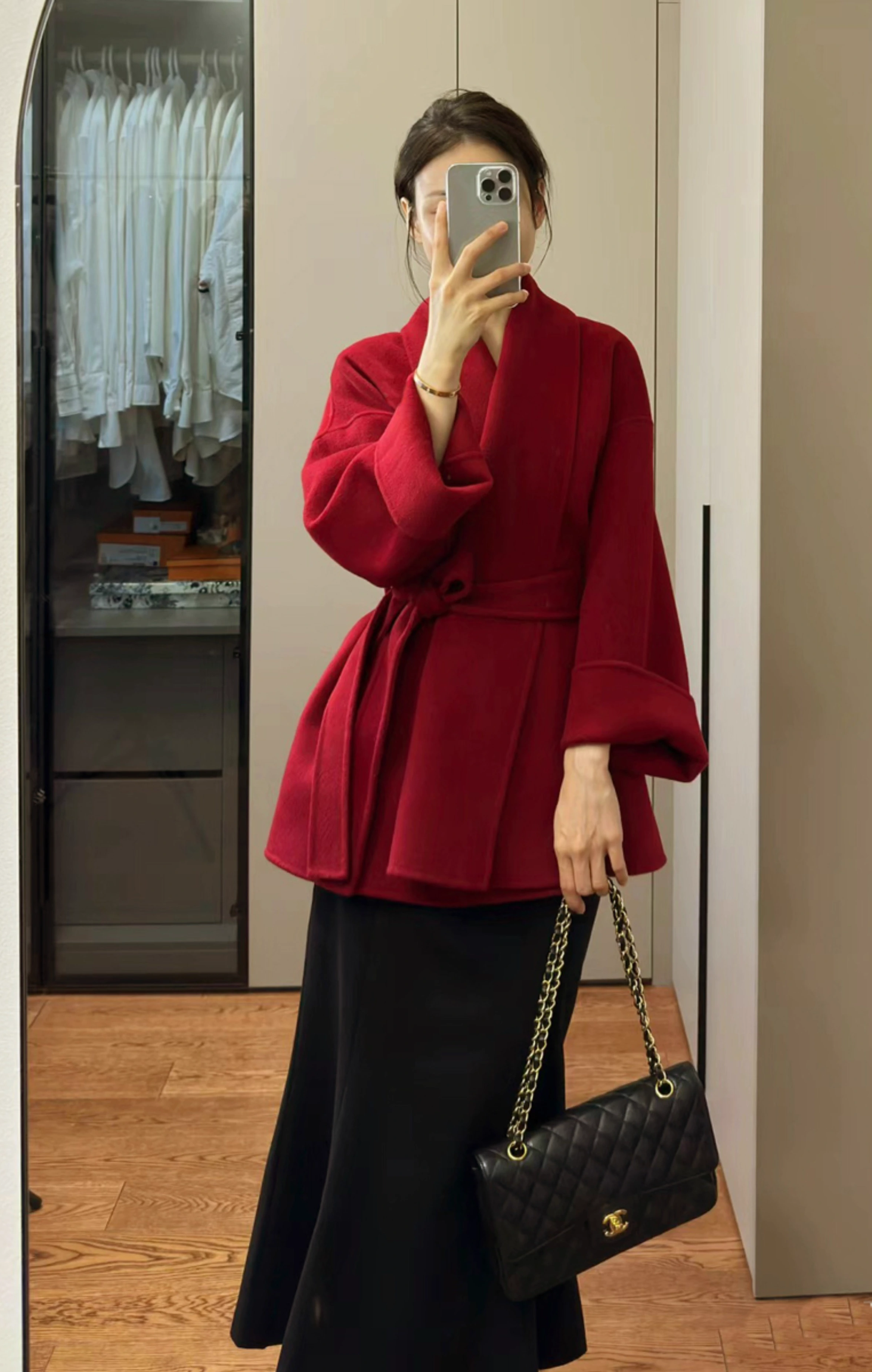 纯手工缝制的双面呢!御寒锁温,柔软亲肤毛呢面丰满充盈,触感蓬松柔糯将空气锁住形成御寒保暖层赋予大衣温润柔滑,细腻光泽感