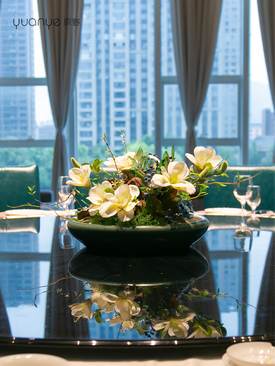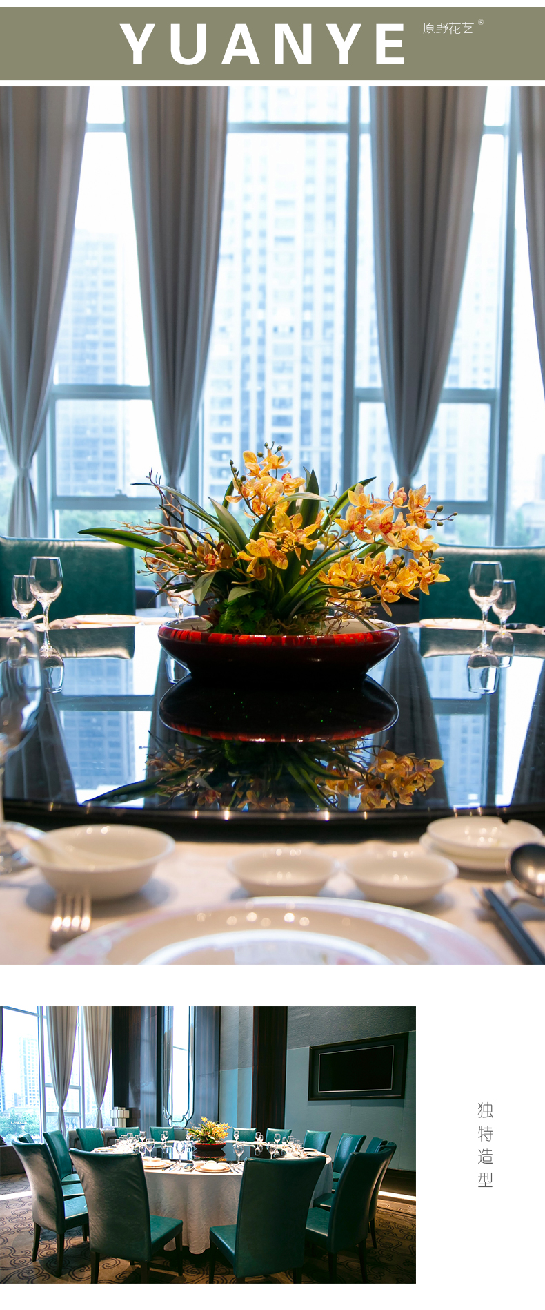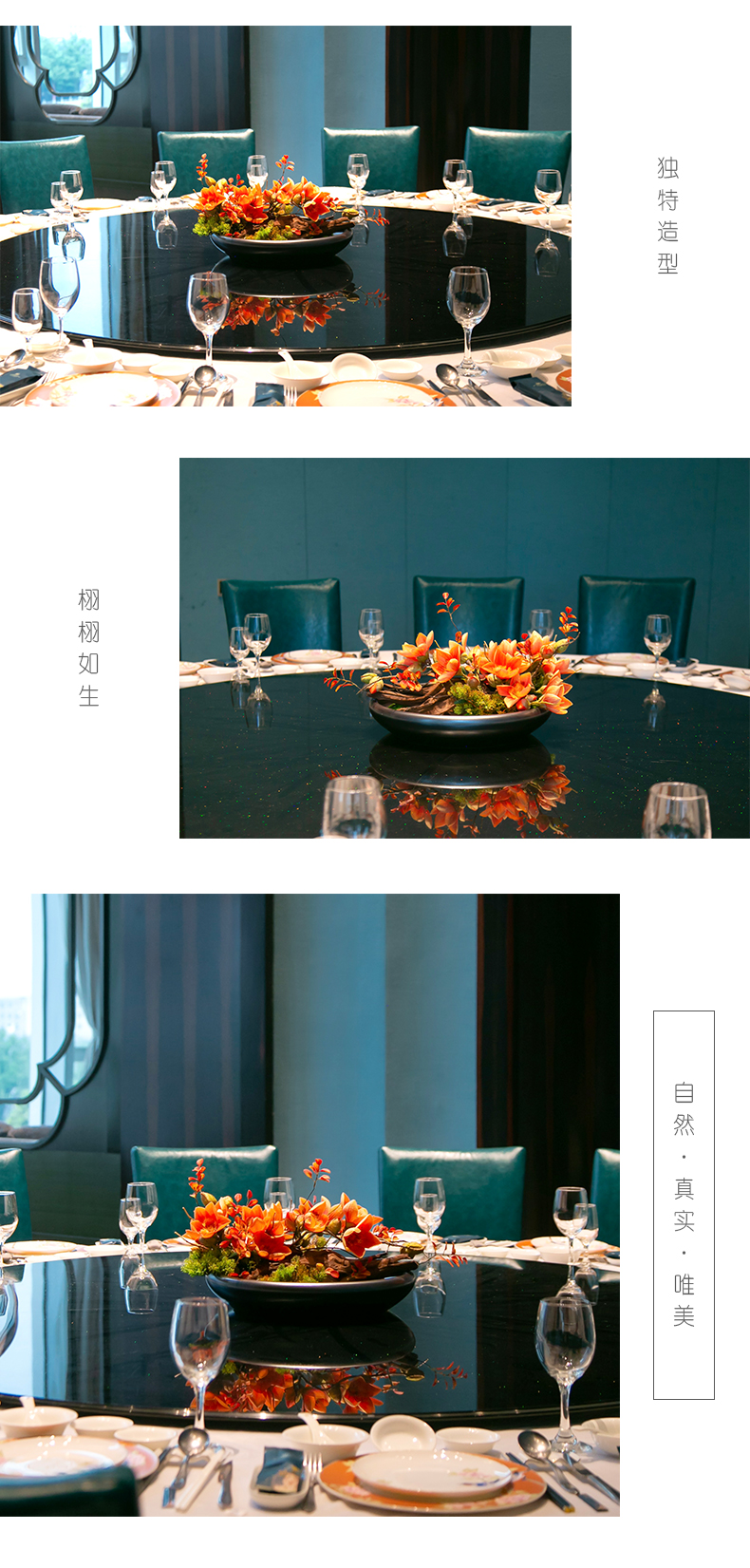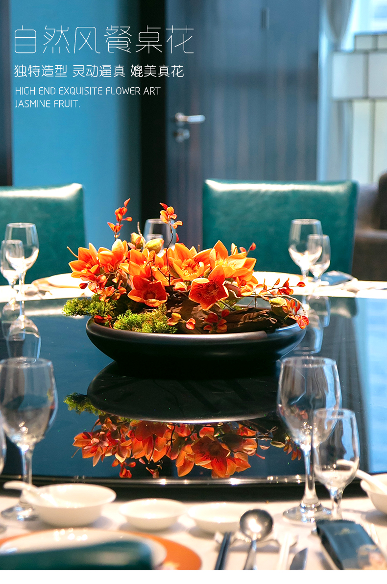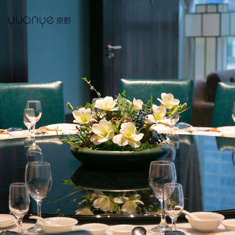 酒店高档餐桌花仿真花圆桌转盘桌面餐厅包厢大装饰假花摆设件