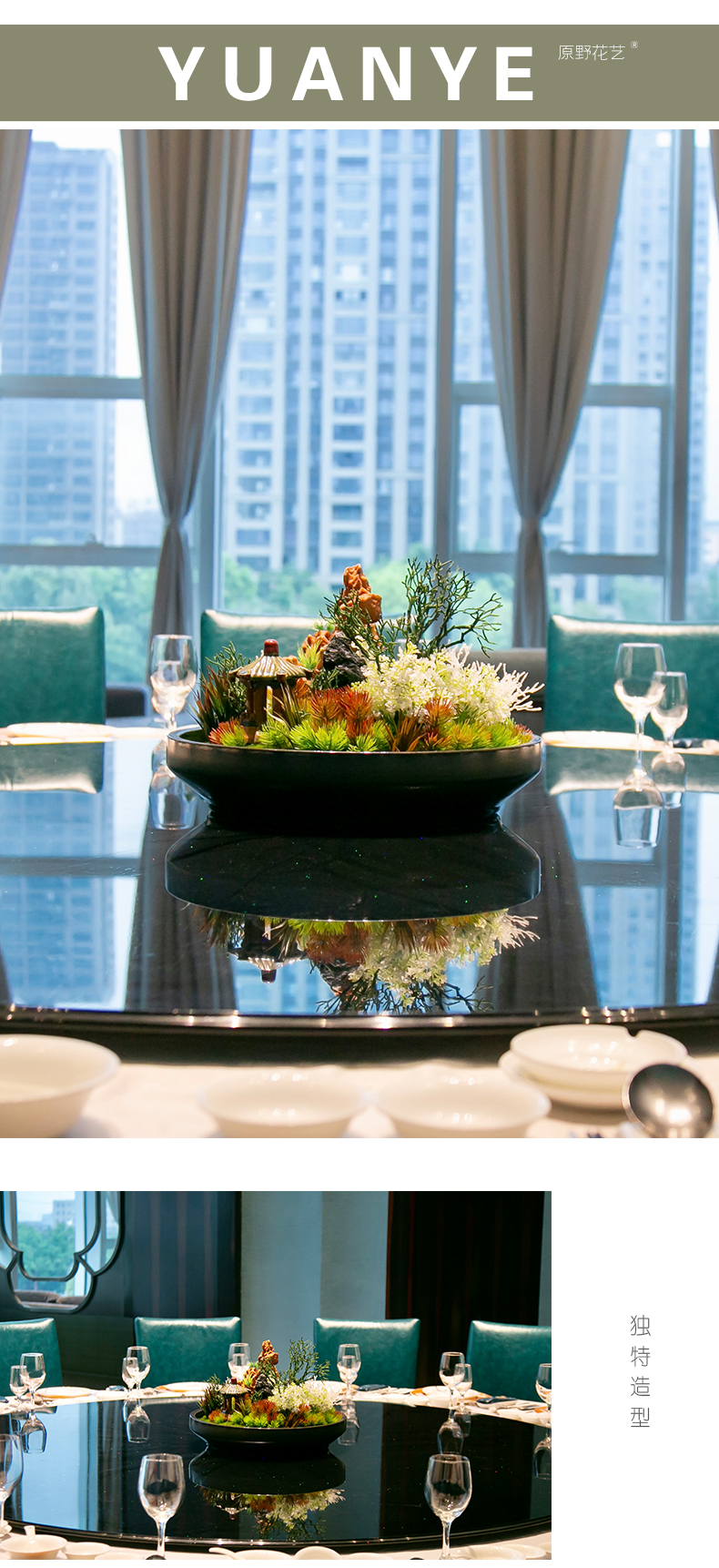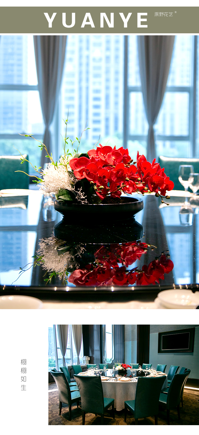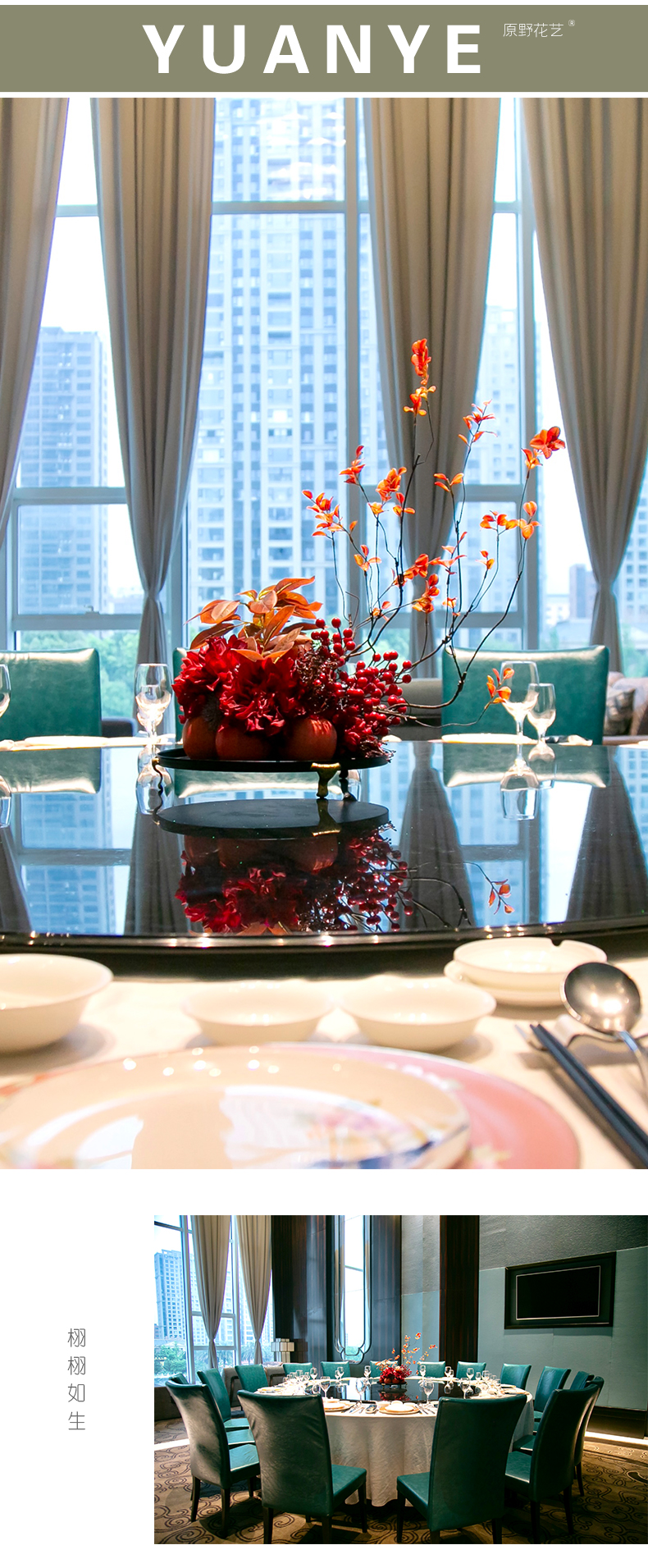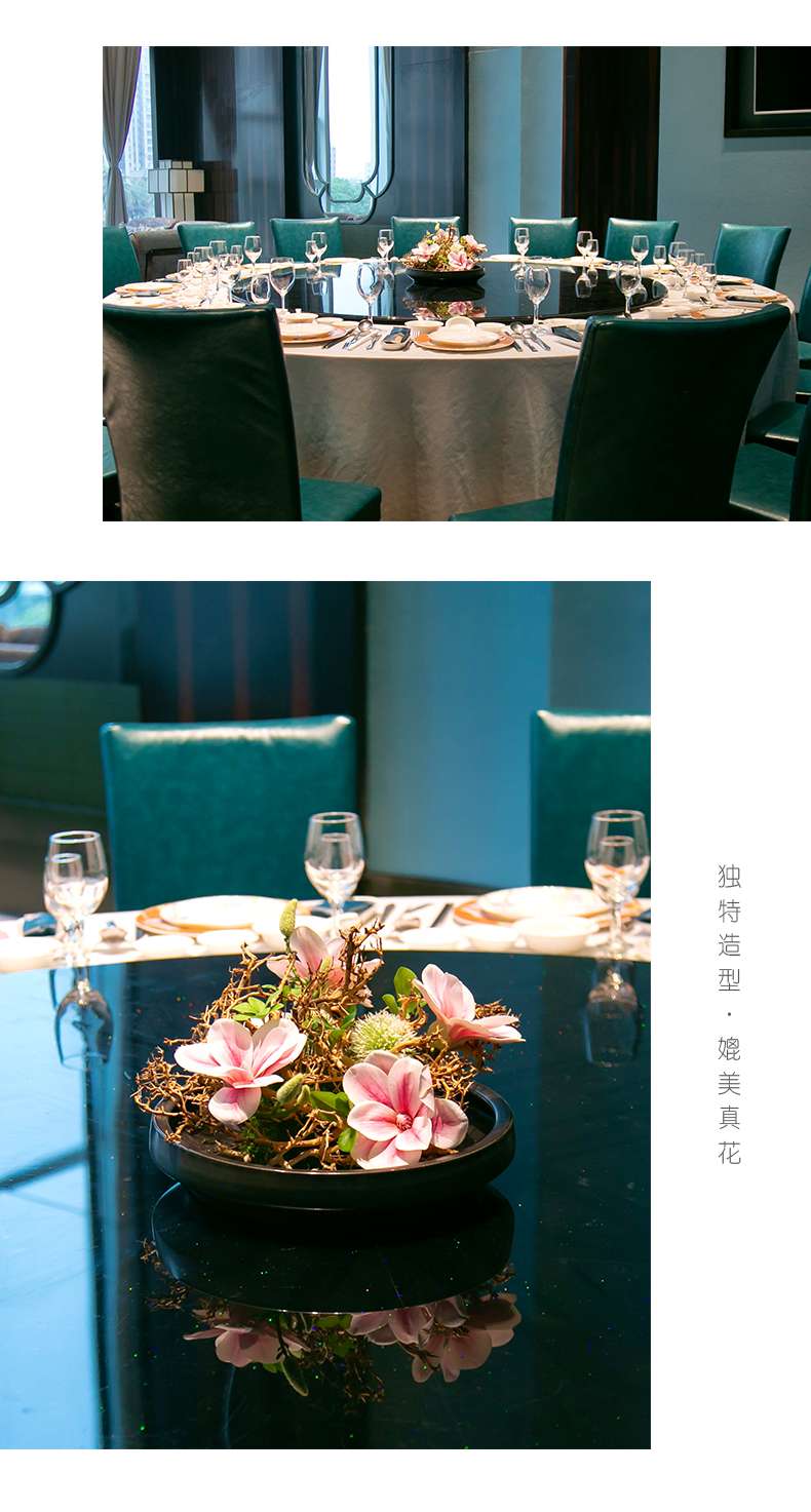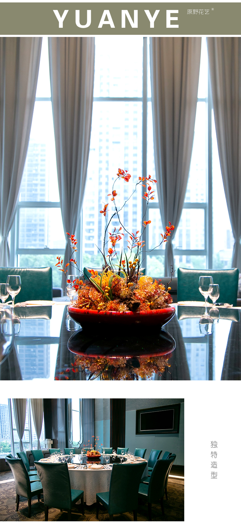 酒店高档餐桌花仿真花圆桌转盘桌面餐厅包厢大装饰假花摆设件