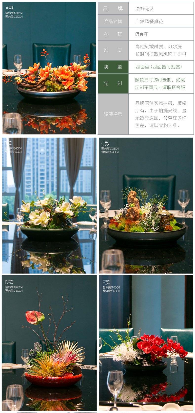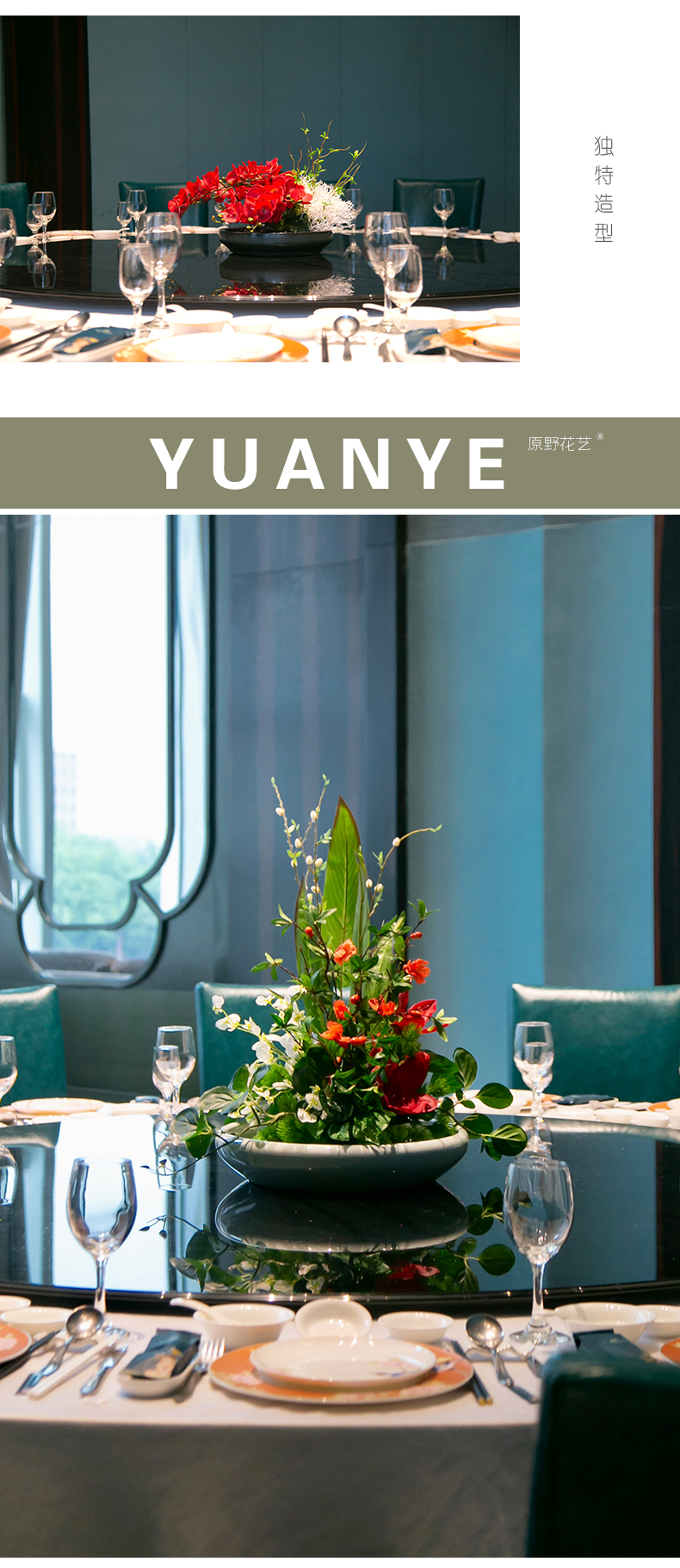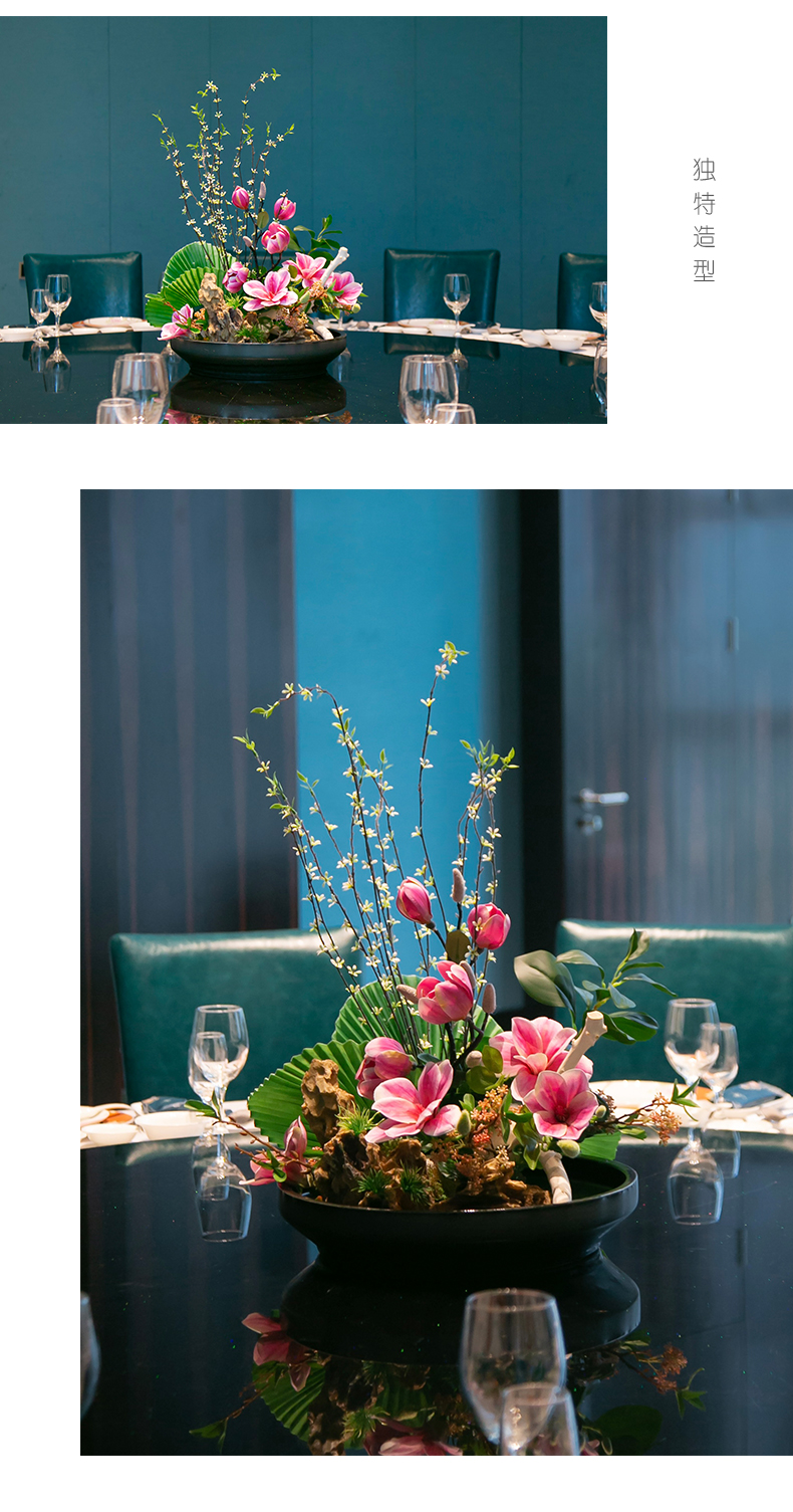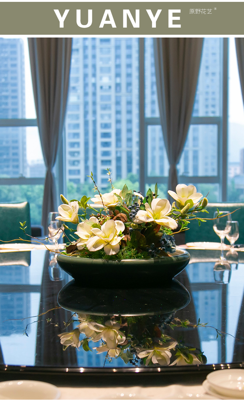 酒店高档餐桌花仿真花圆桌转盘桌面餐厅包厢大装饰假花摆设件