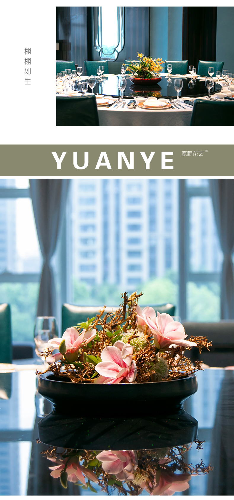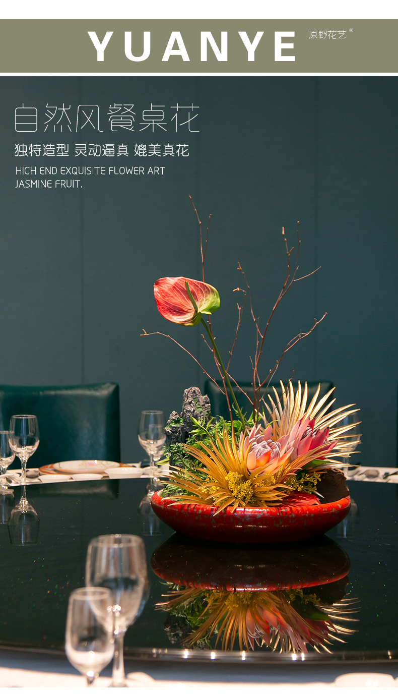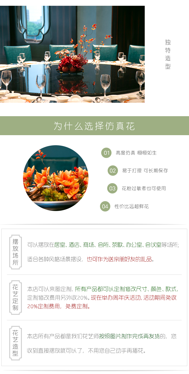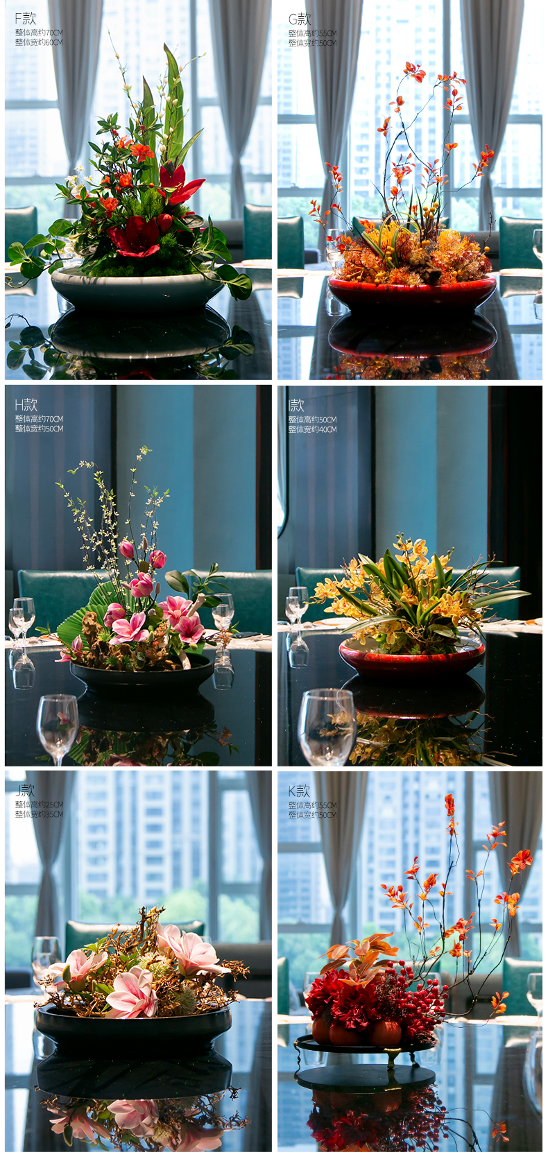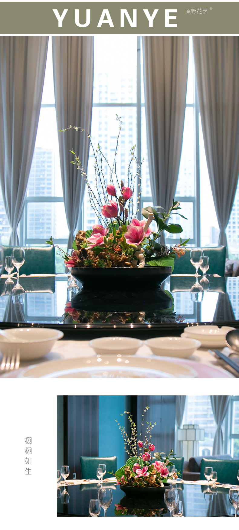 酒店高档餐桌花仿真花圆桌转盘桌面餐厅包厢大装饰假花摆设件