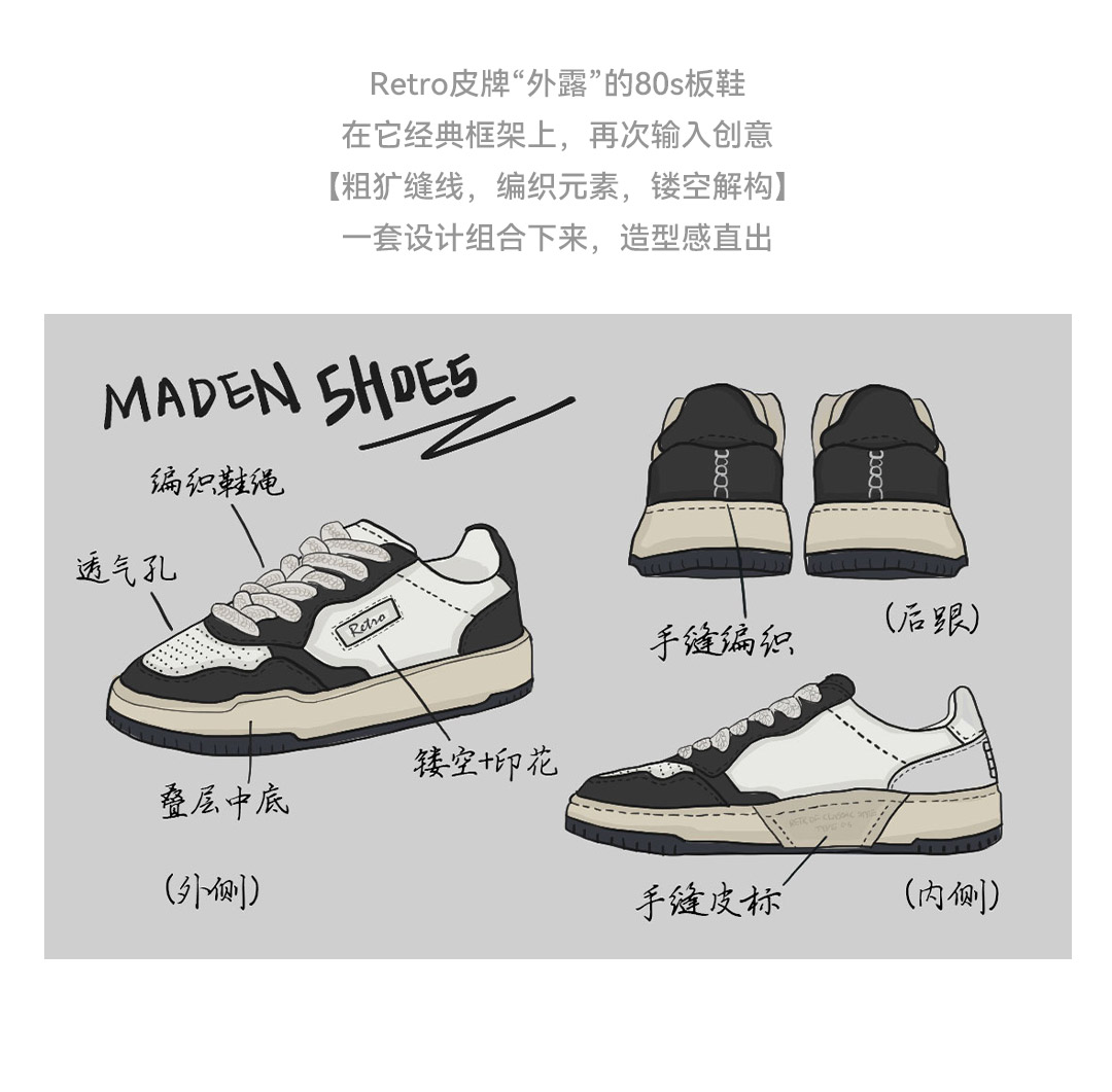 马登2025新款黑白熊猫板鞋男冬季运动休闲低帮原创小众百搭潮鞋