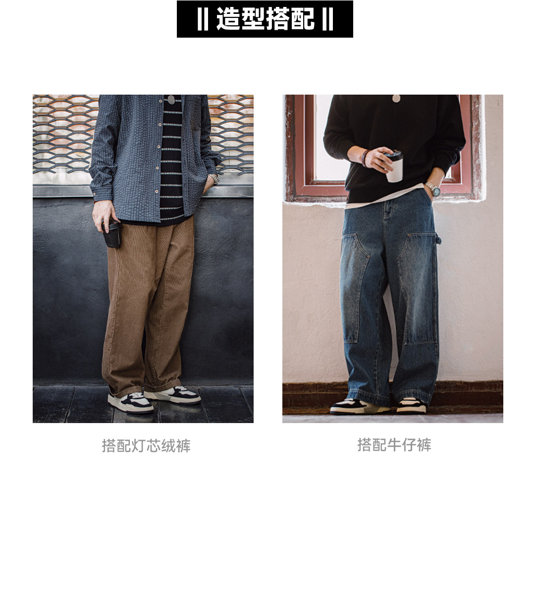 工装优选 日系复古丹宁水洗深色中腰锥形牛仔裤宽松长裤子男秋冬