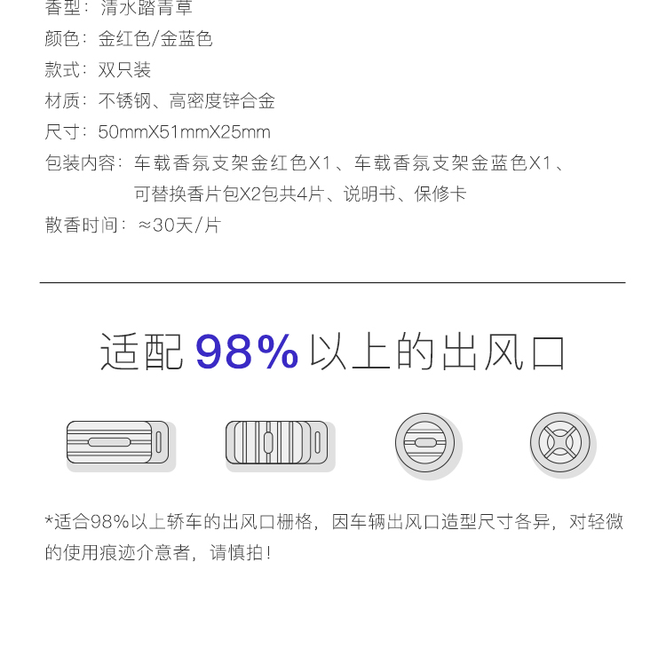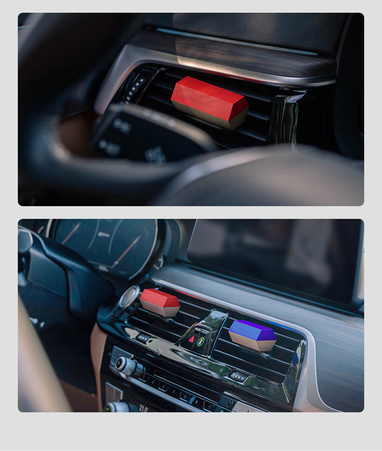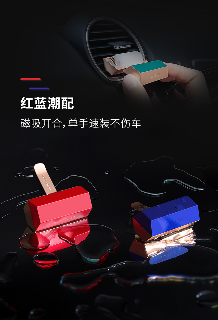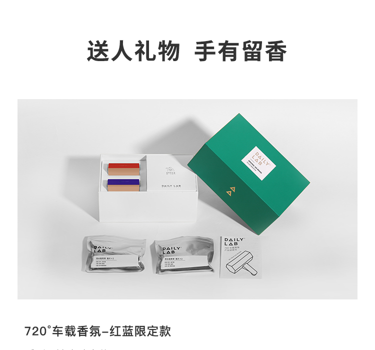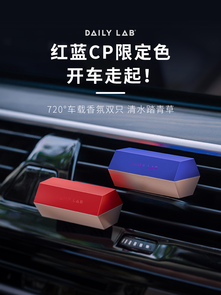 DAILY LAB 720红蓝限定款 车载香薰汽车香水出风口香片空调除味香氛轻奢情人节创意礼物 清水踏青草 双只装+香片*4