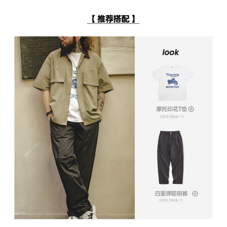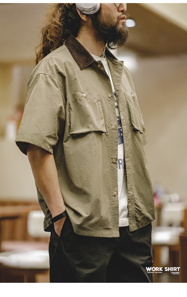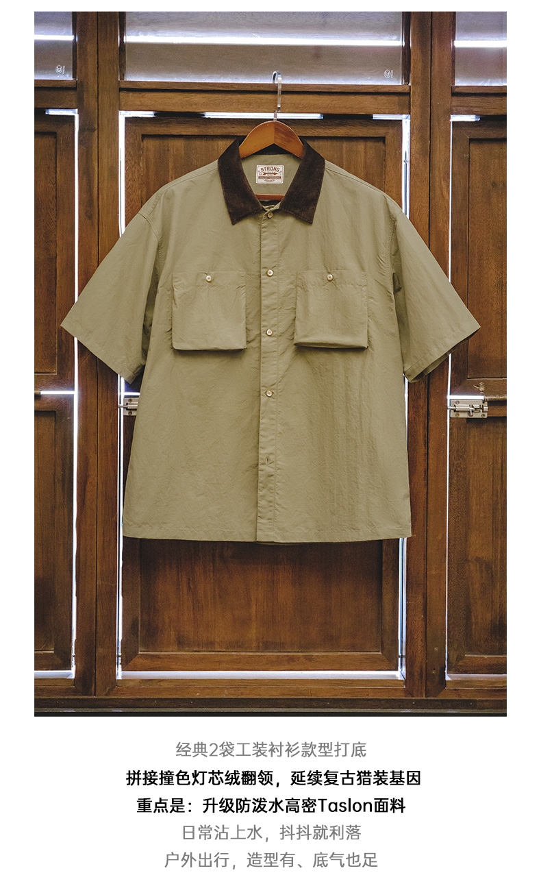 工装优选美式复古防水薄款短袖衬衫户外宽松半袖口袋猎装衬衣男夏
