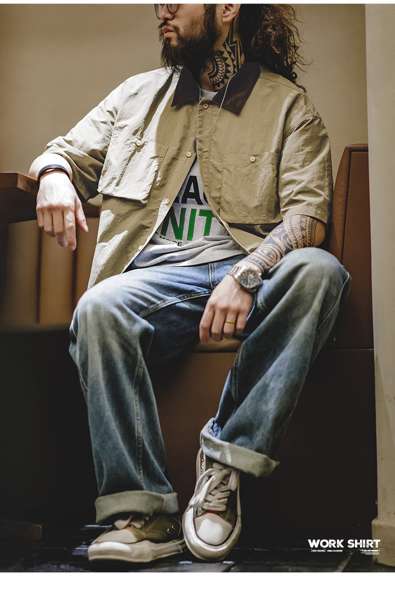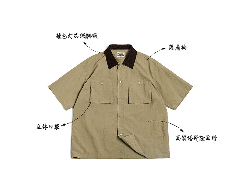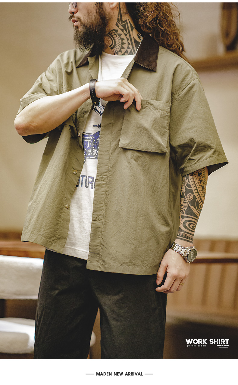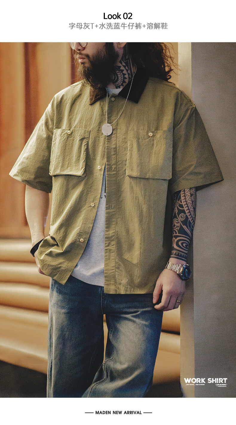工装优选美式复古防水薄款短袖衬衫户外宽松半袖口袋猎装衬衣男夏