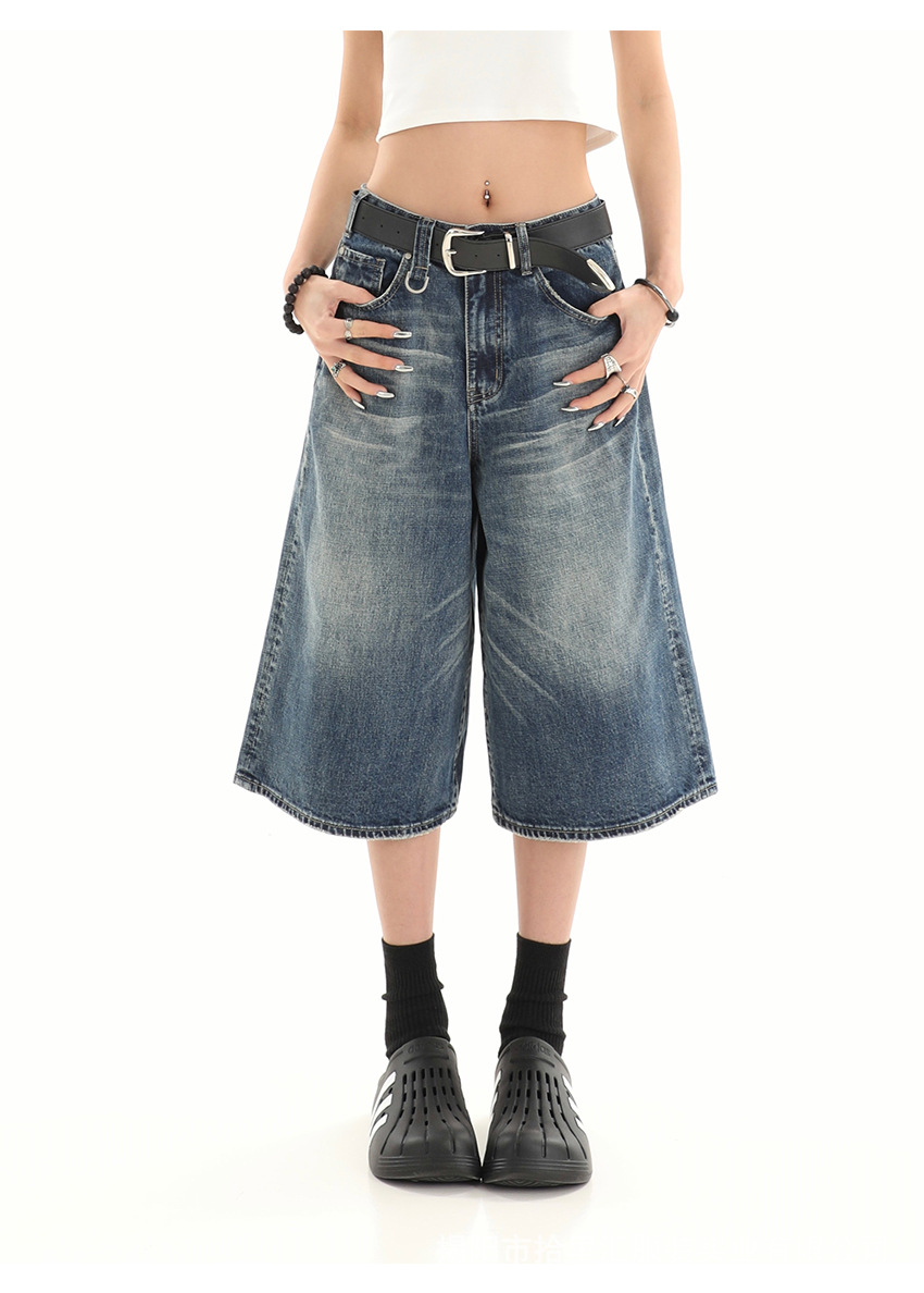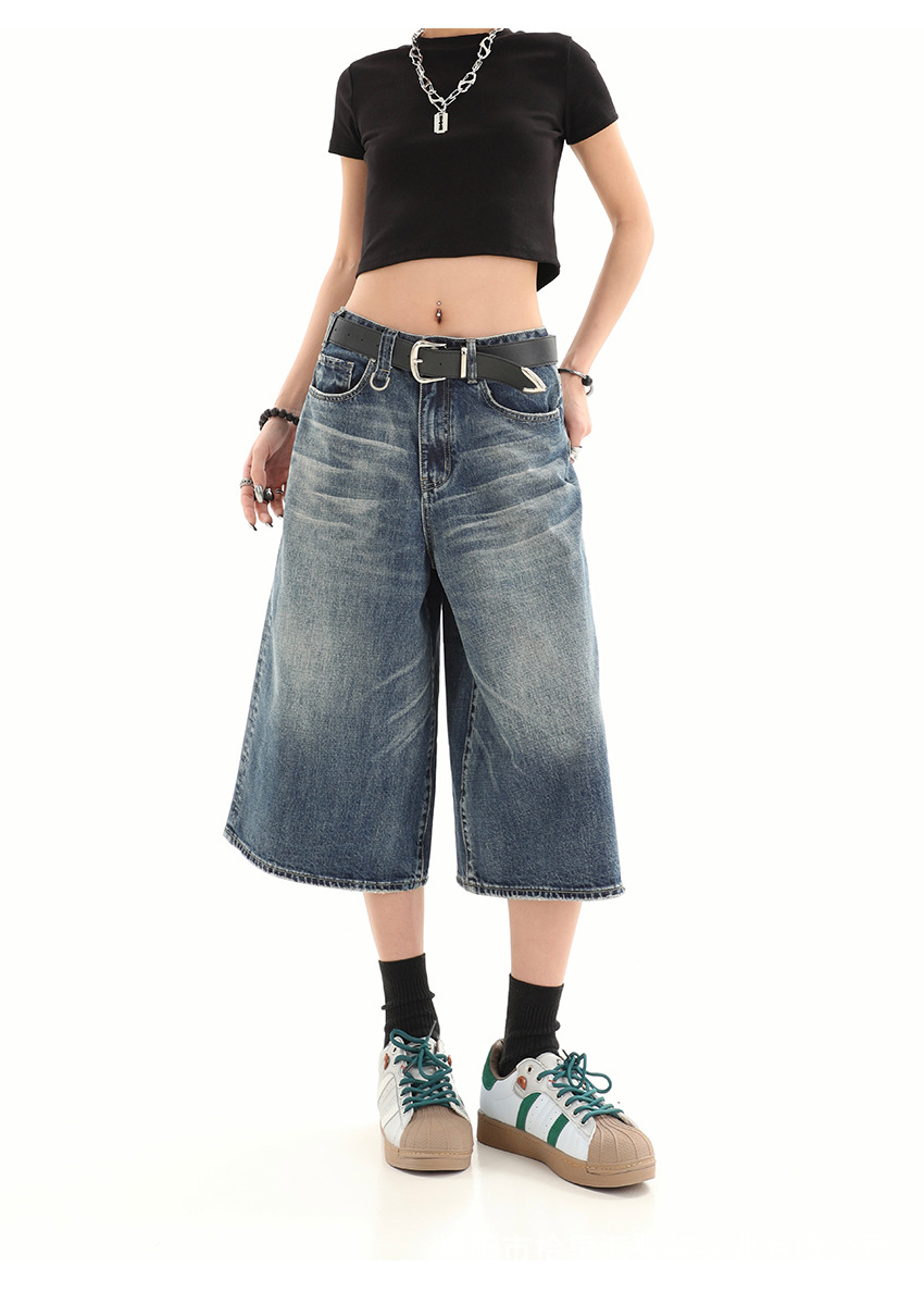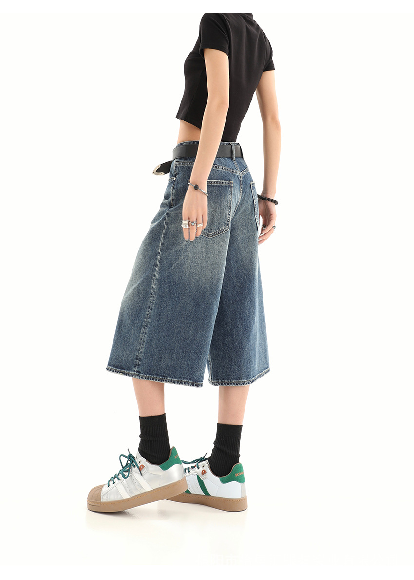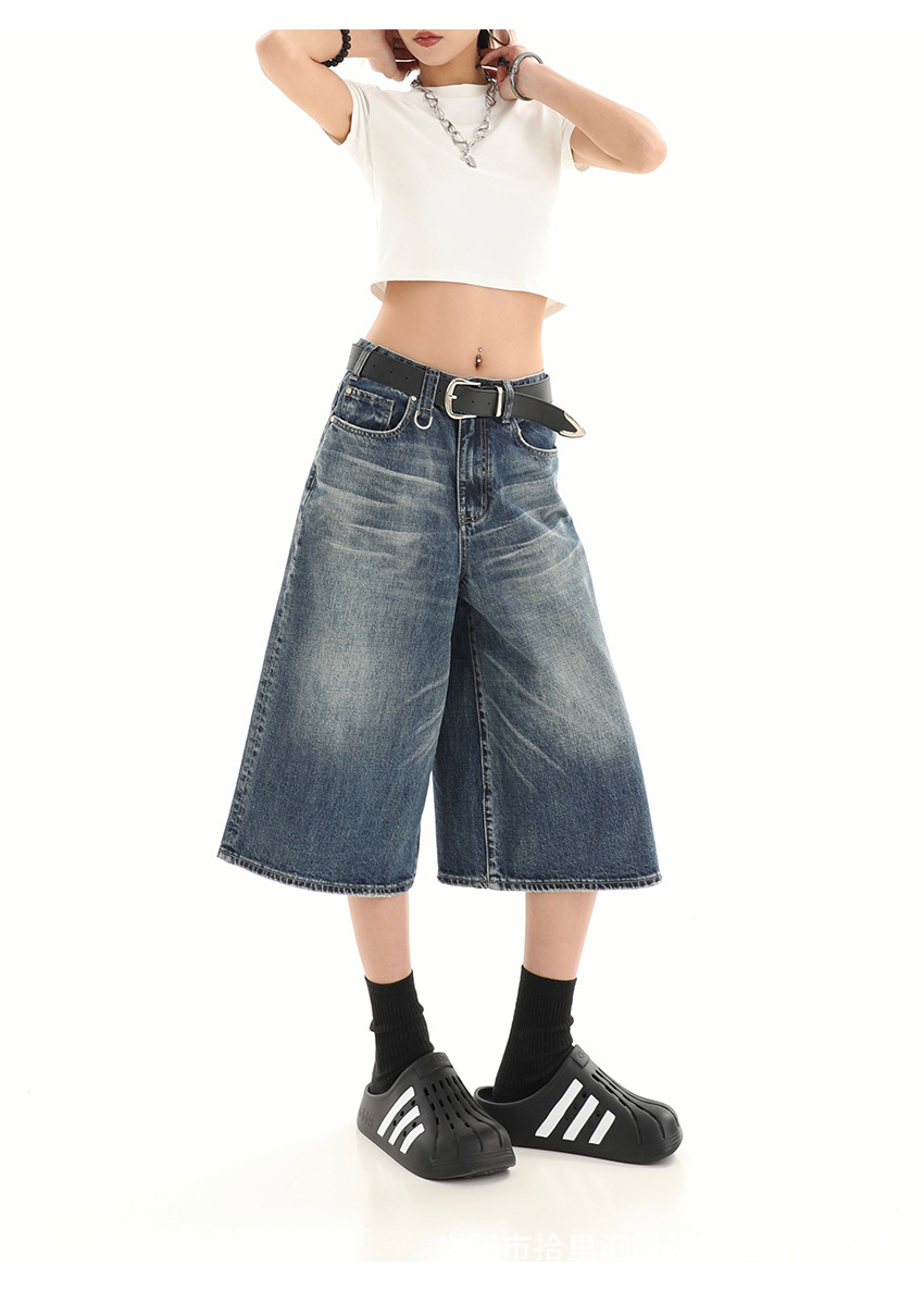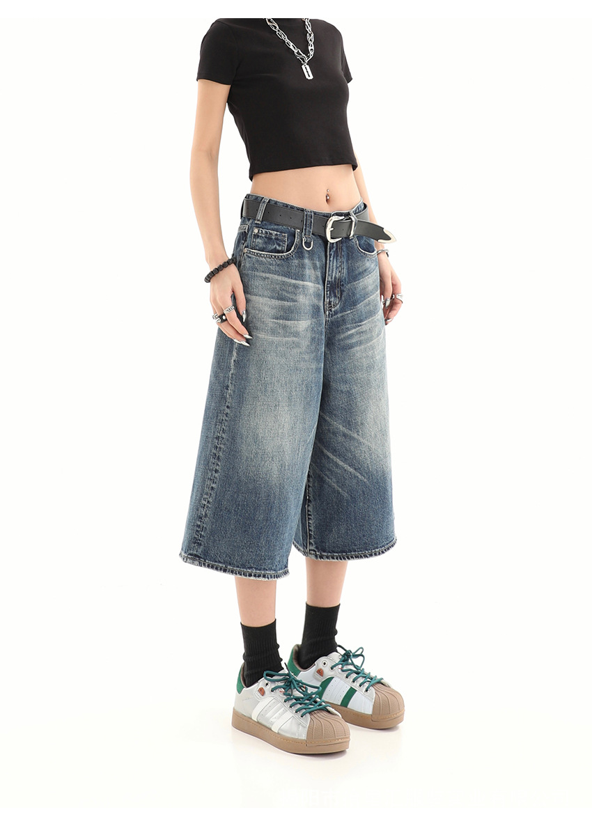 【美式复古❗️A字七分牛仔裤】做旧水洗工艺自带复古质感,阔腿版型修饰腿型,中长款式适配多种鞋型,打造松弛街头造型,小个子做旧七分牛仔女高街设计感阔腿7分裤QQ