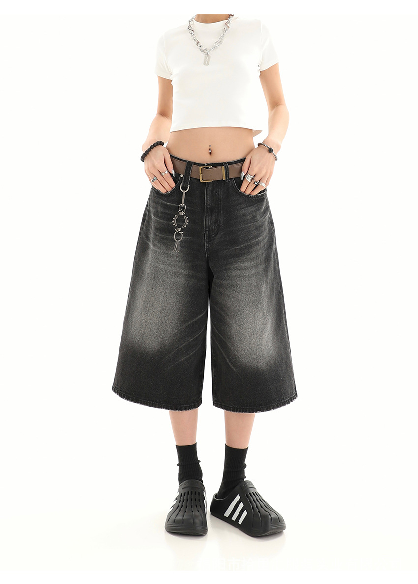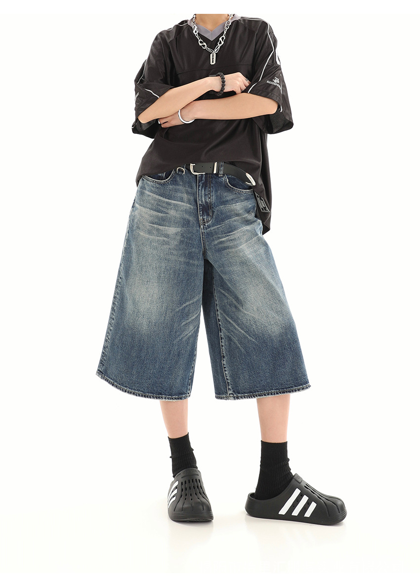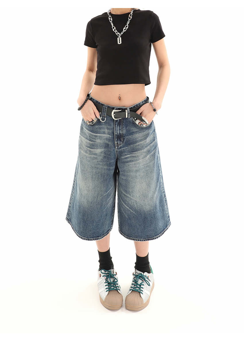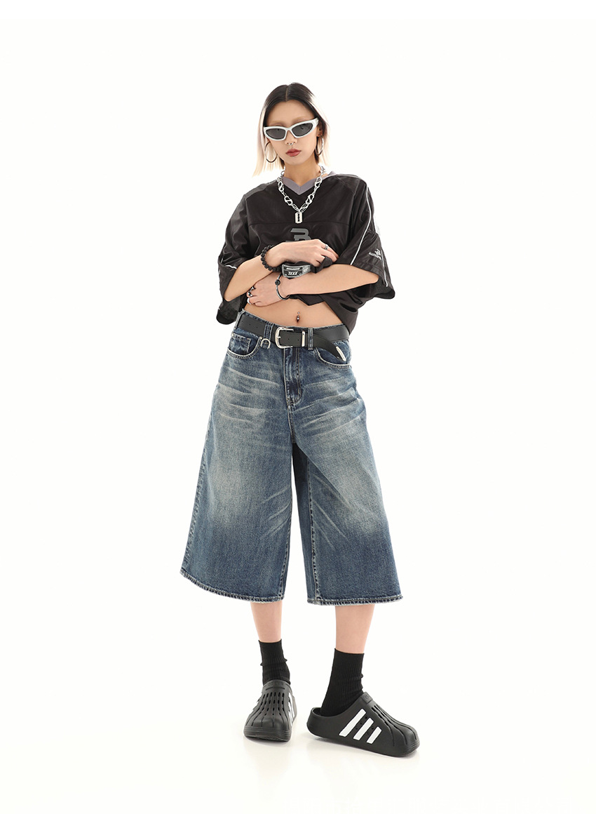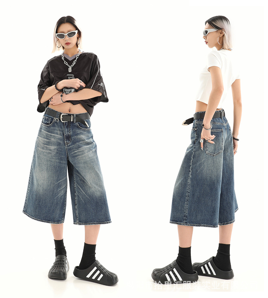 【美式复古❗️A字七分牛仔裤】做旧水洗工艺自带复古质感,阔腿版型修饰腿型,中长款式适配多种鞋型,打造松弛街头造型,小个子做旧七分牛仔女高街设计感阔腿7分裤QQ