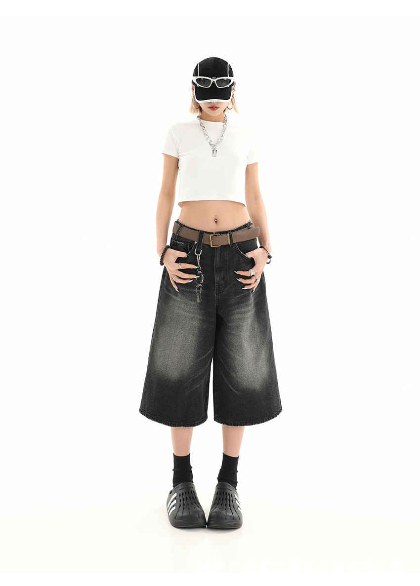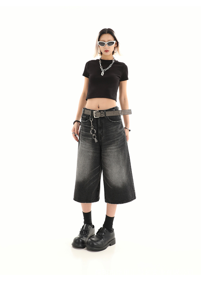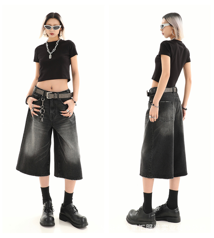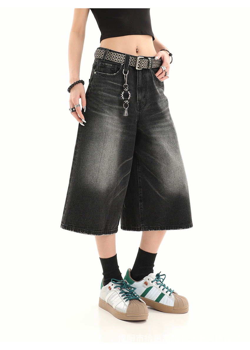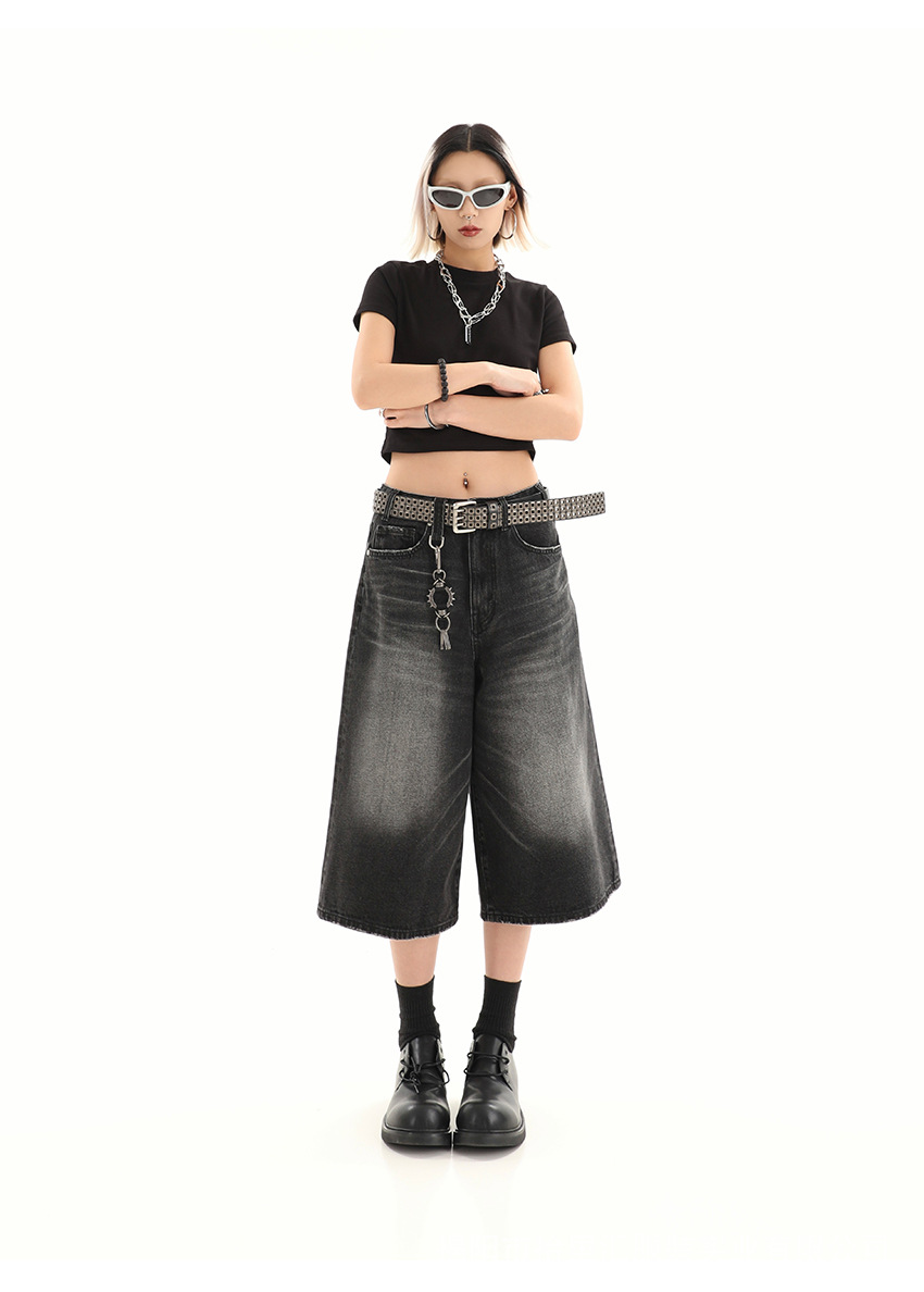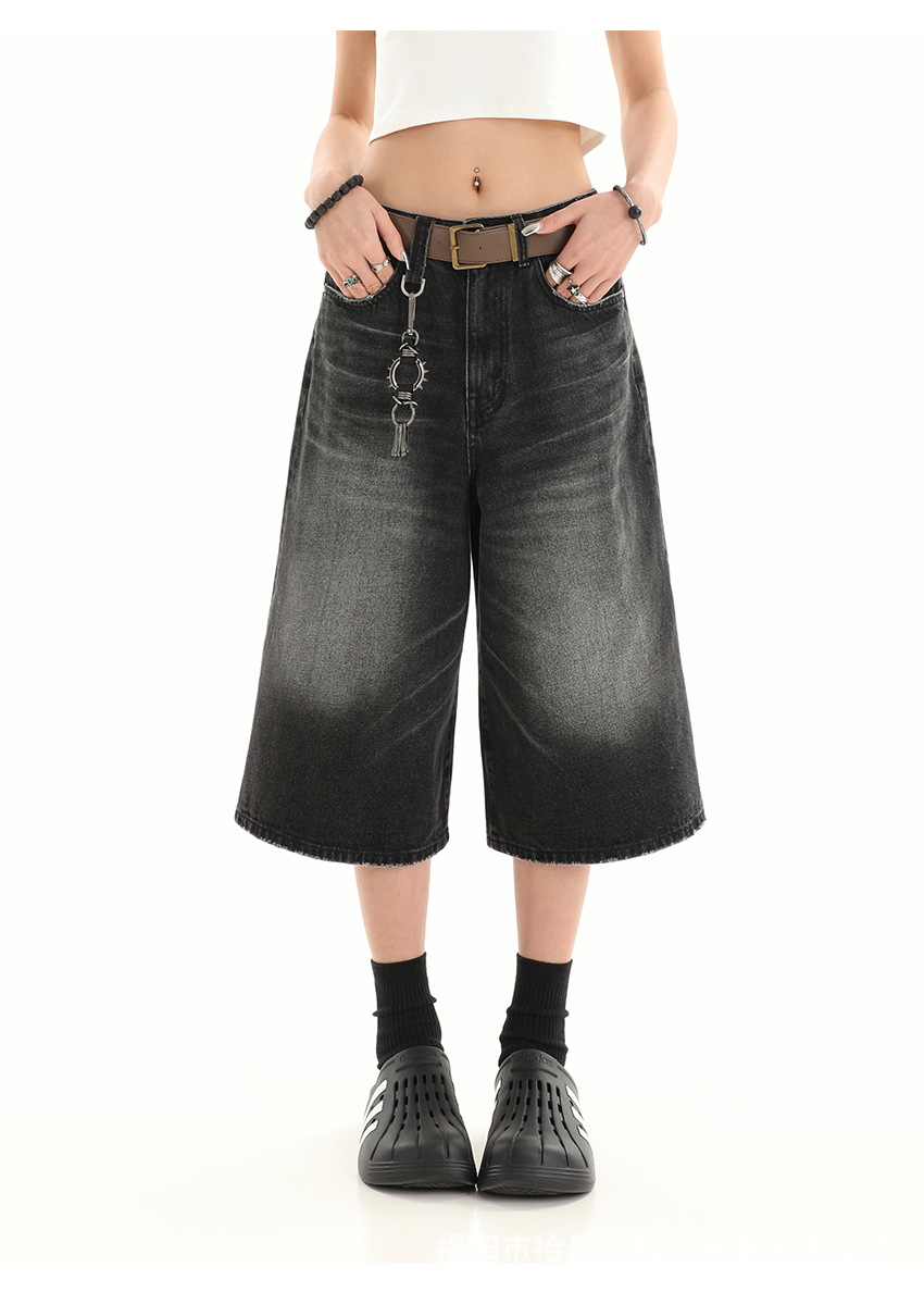 【美式复古❗️A字七分牛仔裤】做旧水洗工艺自带复古质感,阔腿版型修饰腿型,中长款式适配多种鞋型,打造松弛街头造型,小个子做旧七分牛仔女高街设计感阔腿7分裤QQ