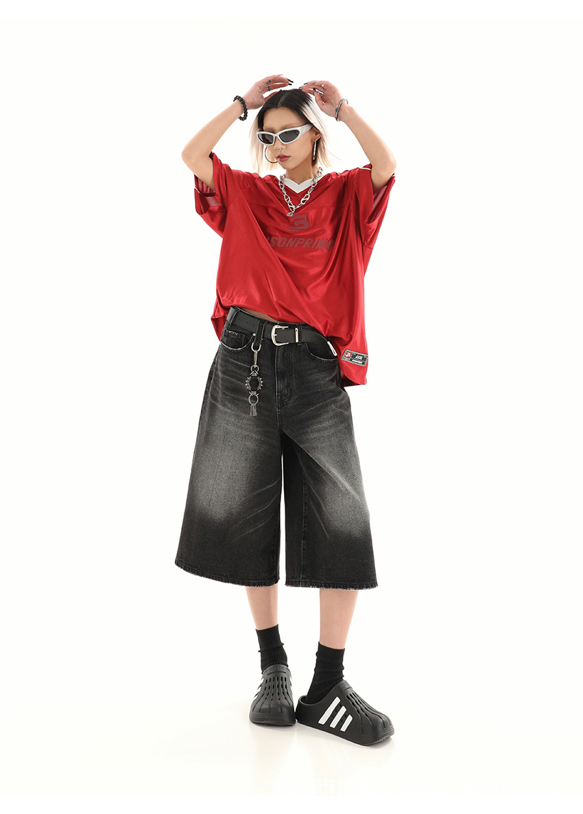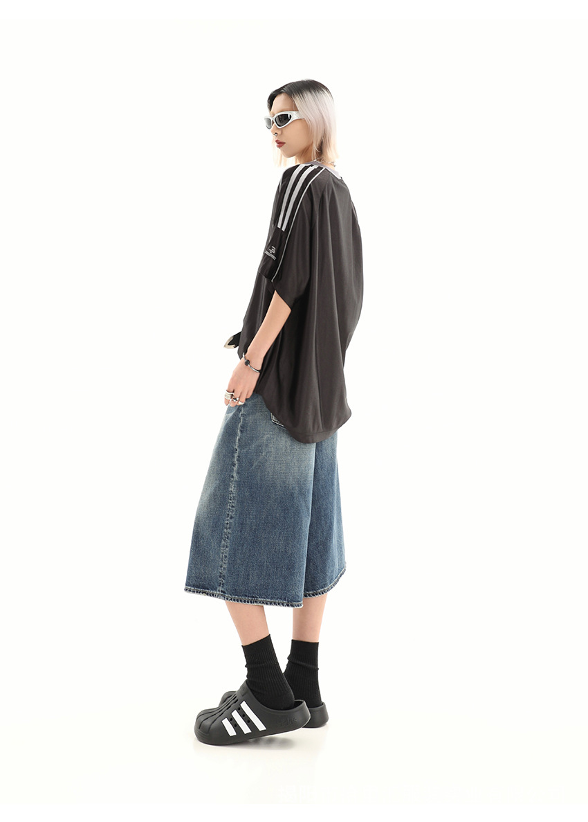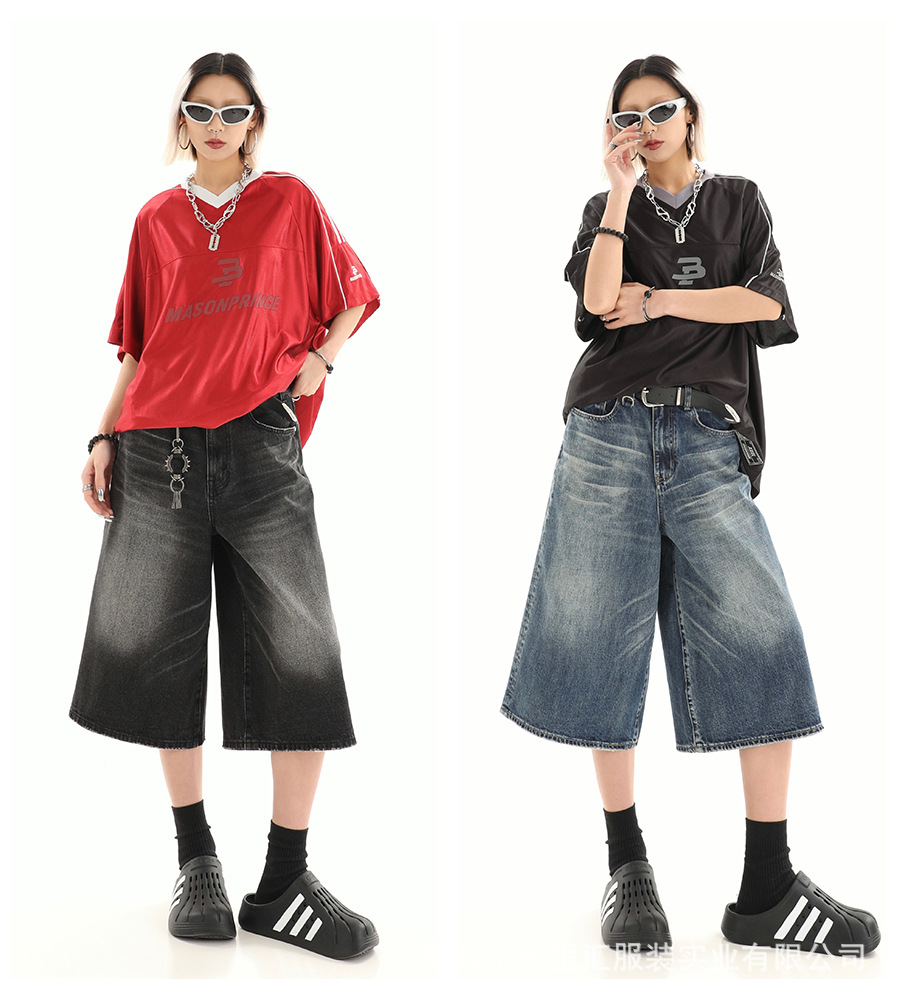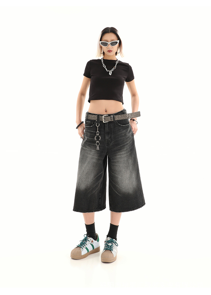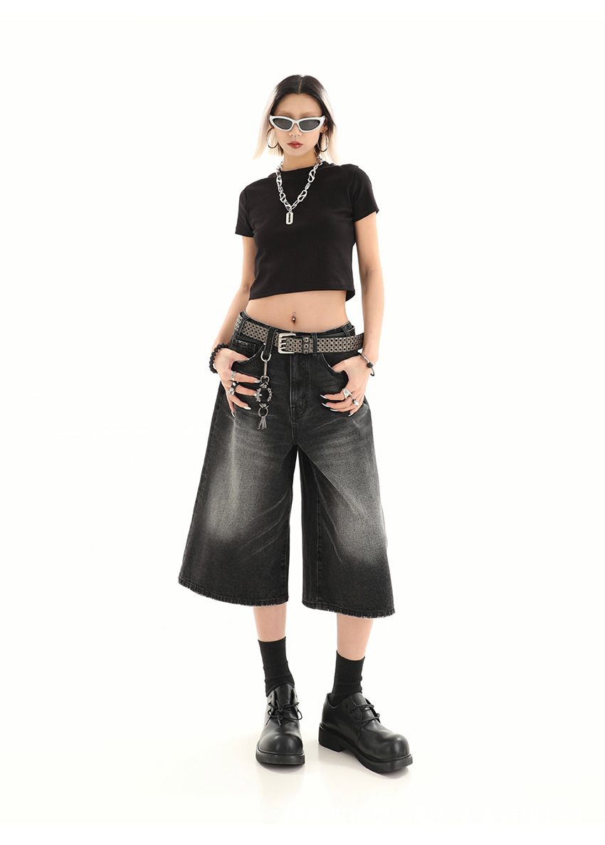 【美式复古❗️A字七分牛仔裤】做旧水洗工艺自带复古质感,阔腿版型修饰腿型,中长款式适配多种鞋型,打造松弛街头造型,小个子做旧七分牛仔女高街设计感阔腿7分裤QQ