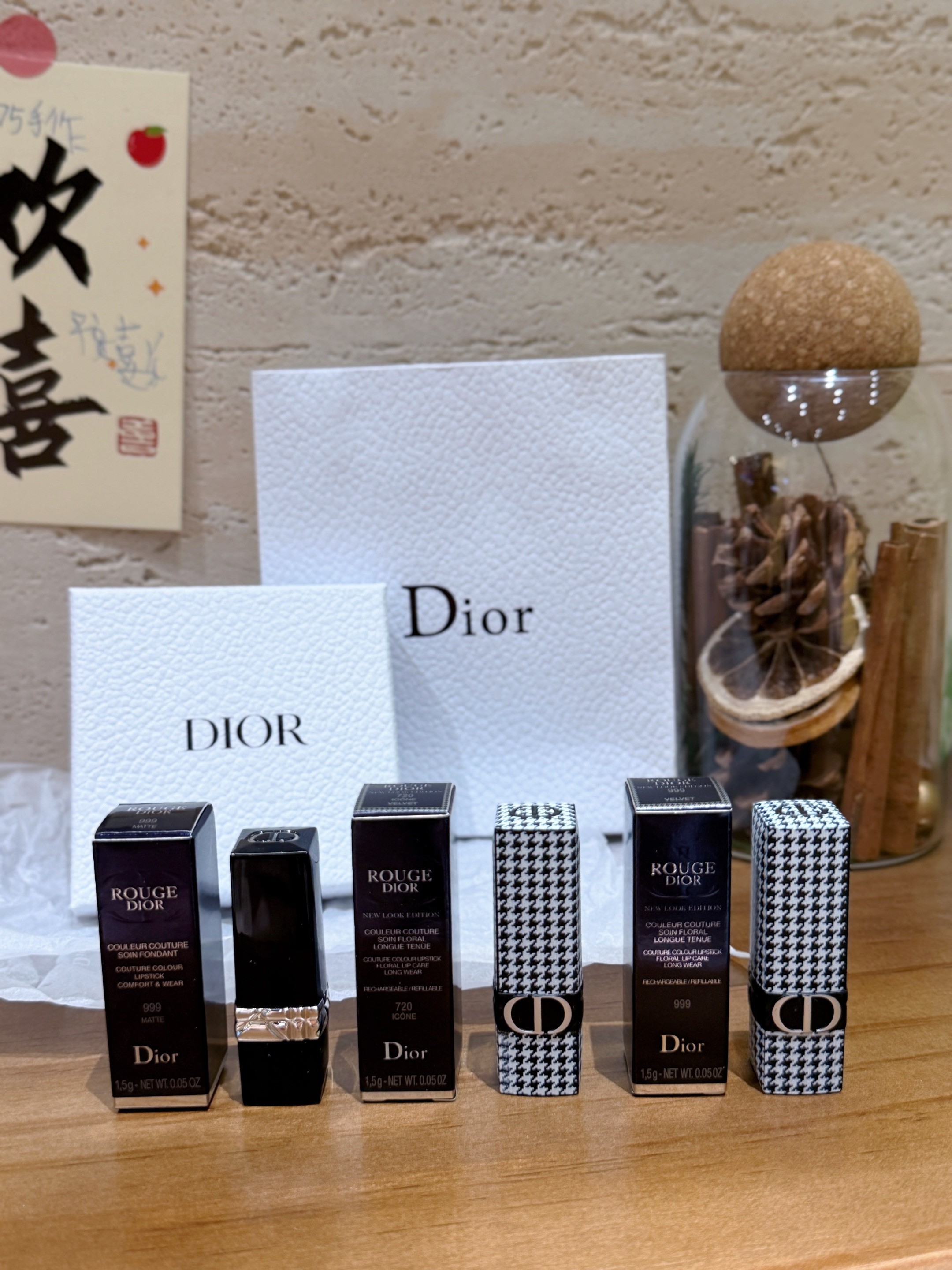 这波Dior千鸟格口红三件套!把经典哑光 ➕千鸟格 999➕王炸千鸟格720打包塞进礼盒,从包装到膏体全是高定质感——千鸟格壳子自带复古贵气,膏体浮雕logo精致到舍不得用!