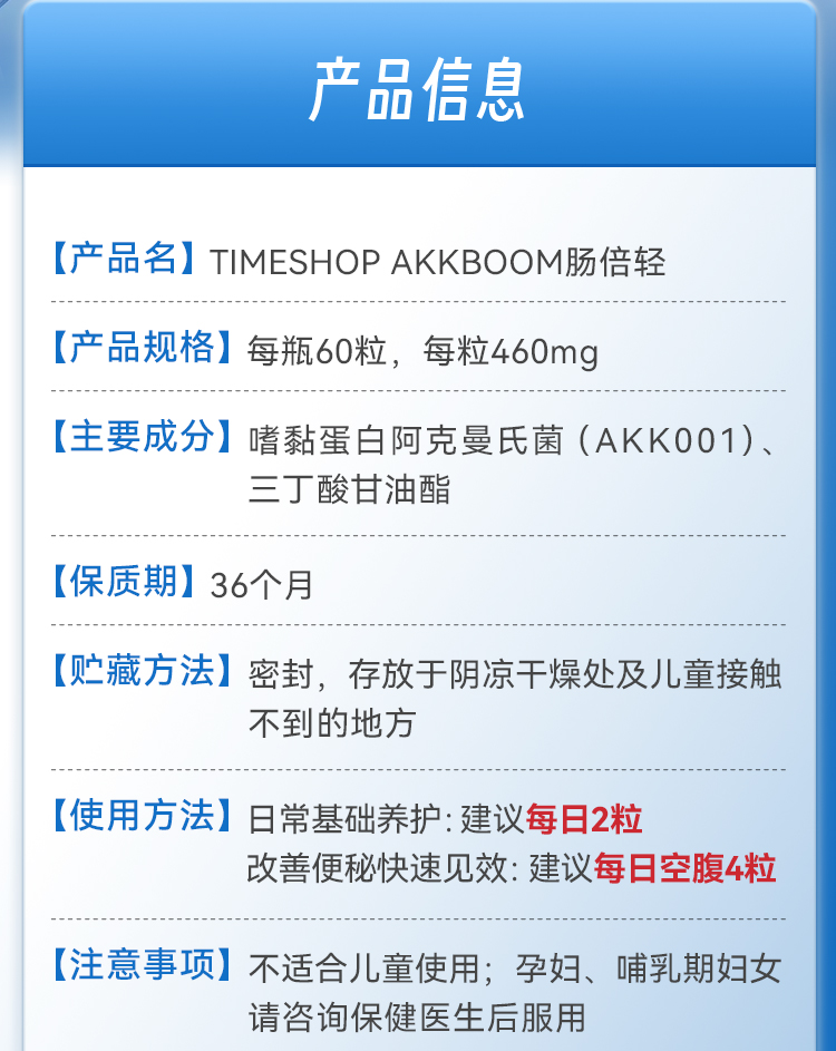 Timeshop肠倍轻 · AKK益生菌胶囊 60粒|保税