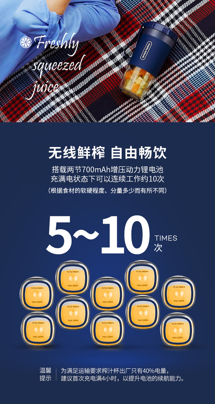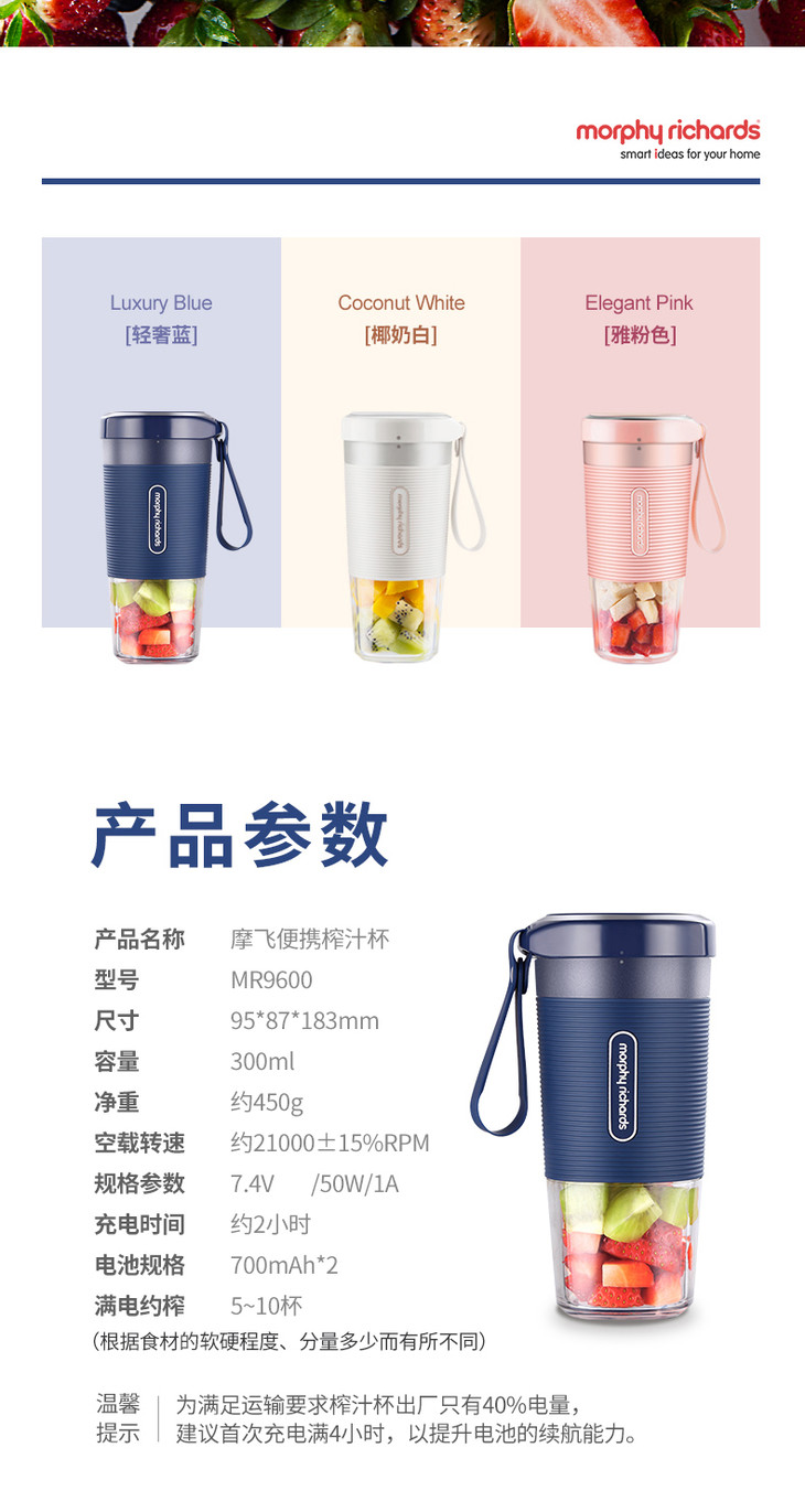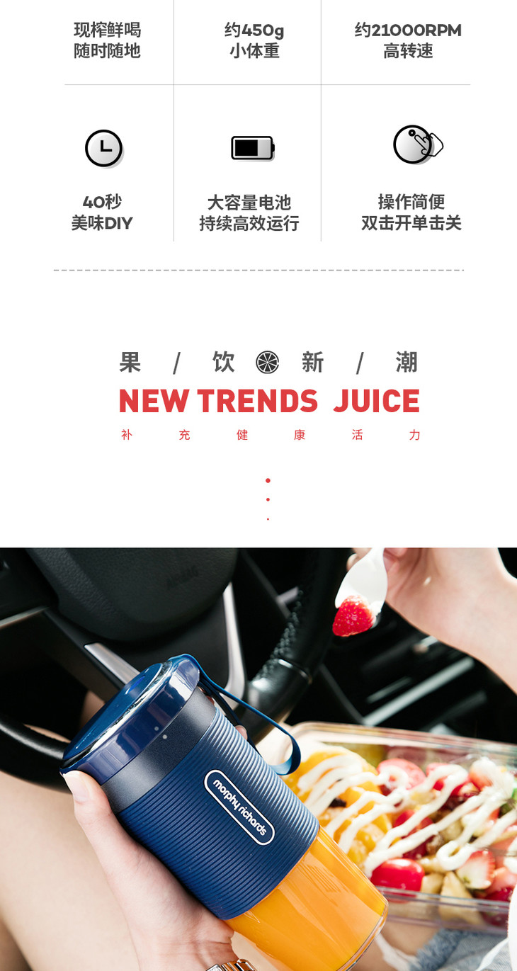 摩飞便携式榨汁机MR9600 现榨现喝 便携式充电小型迷你榨汁机