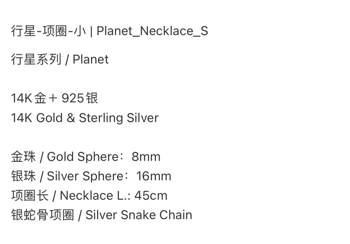 AWU|小PL-NS Planet Necklace 8+16mm [ 行星 项链 小]