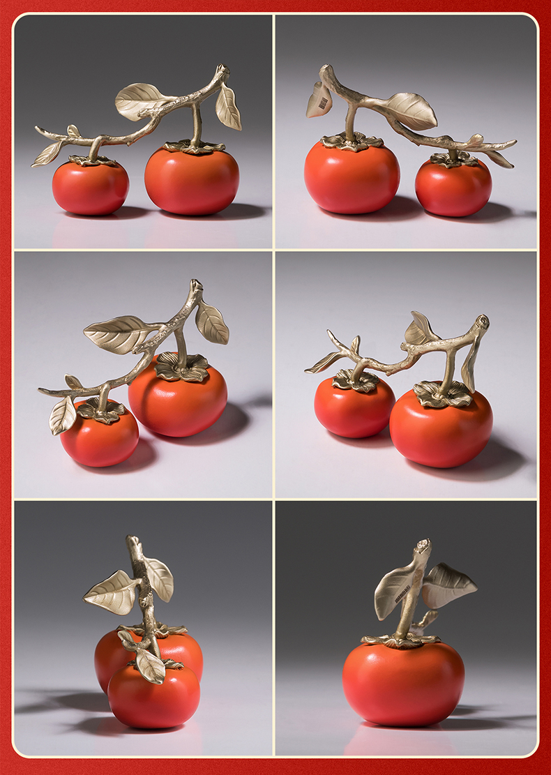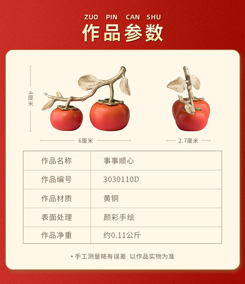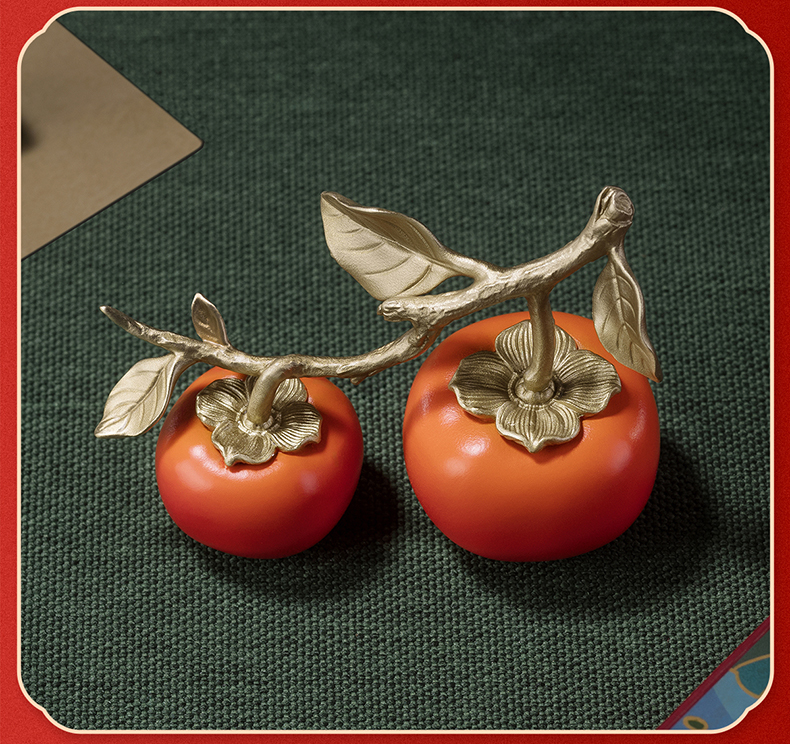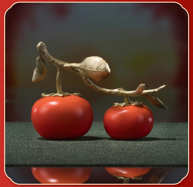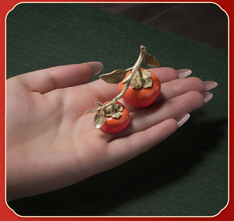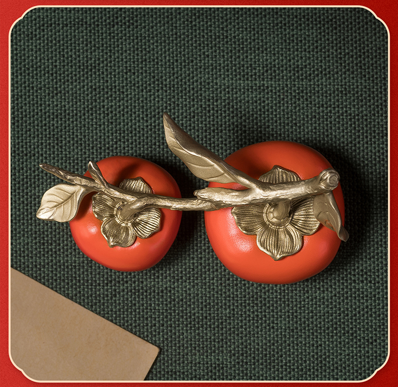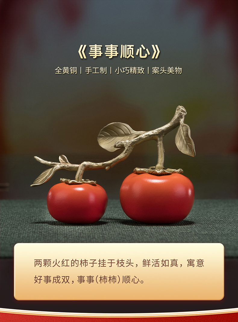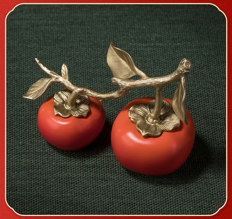 铜师傅《事事顺心》客厅桌面铜柿子摆件 家居装饰工艺品乔迁礼物