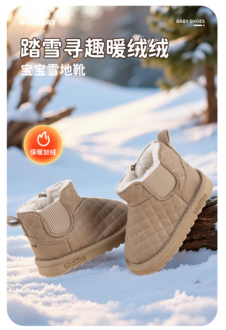 贝贝怡秋冬新款女童学步鞋中帮拉链雪地靴百搭休闲棉鞋ZB4EX011
