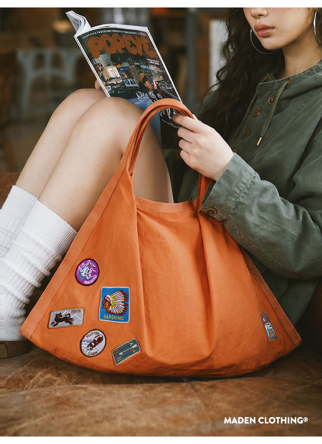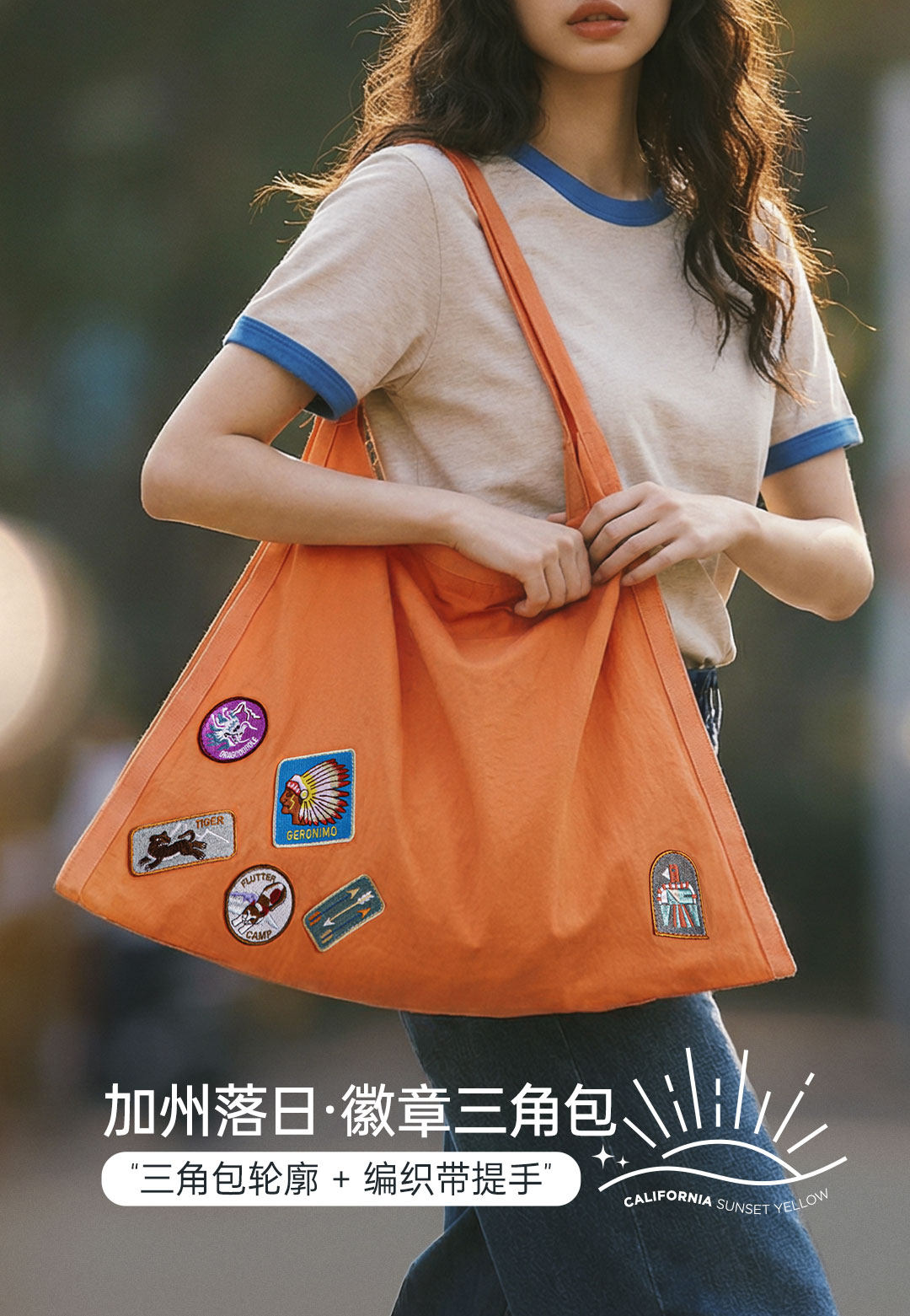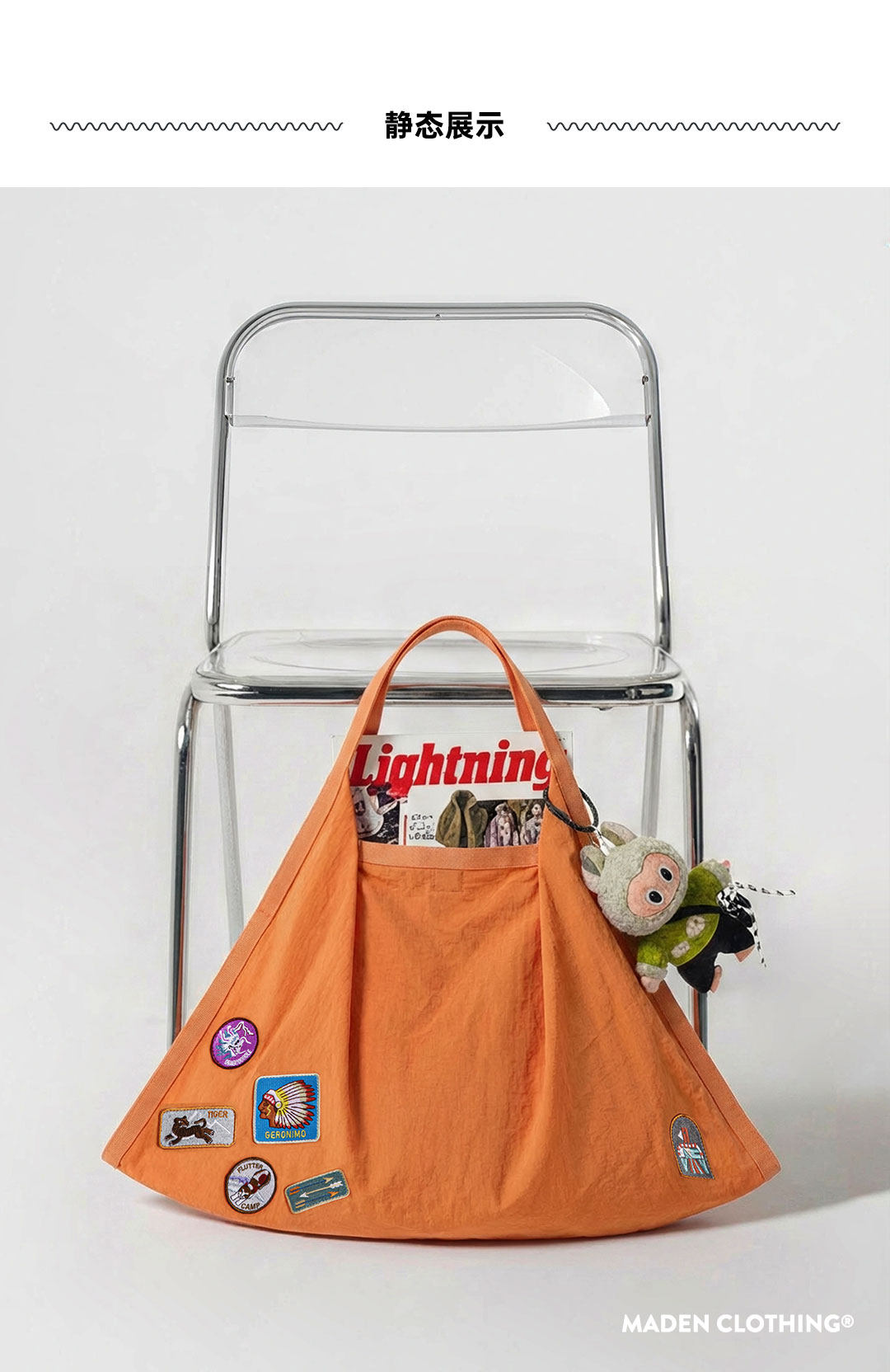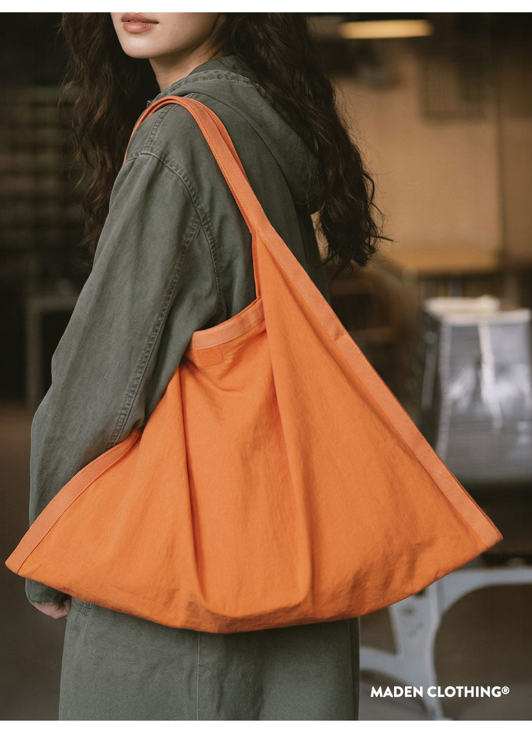 马登落日橘尼龙超大容量通勤电脑手提单肩出行轻托特包三角包女士