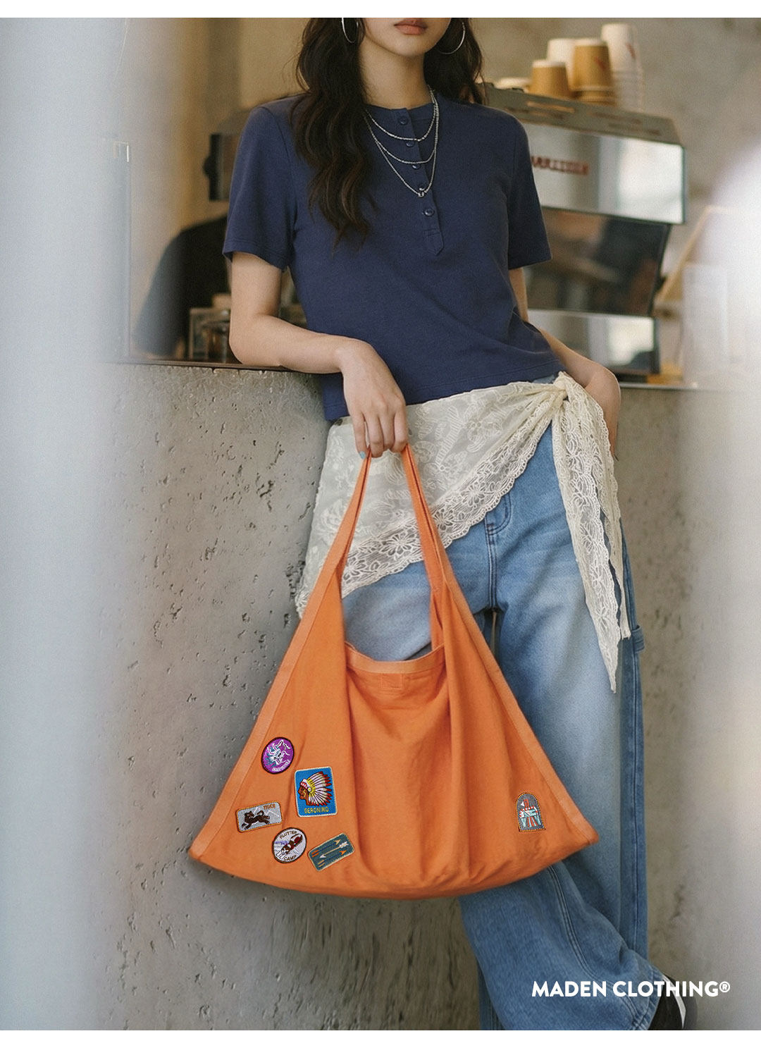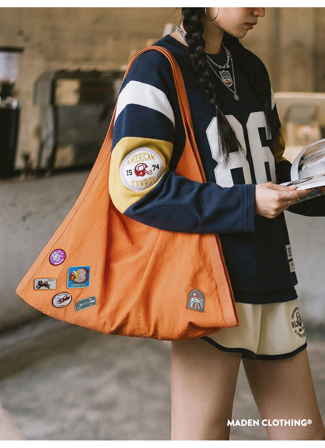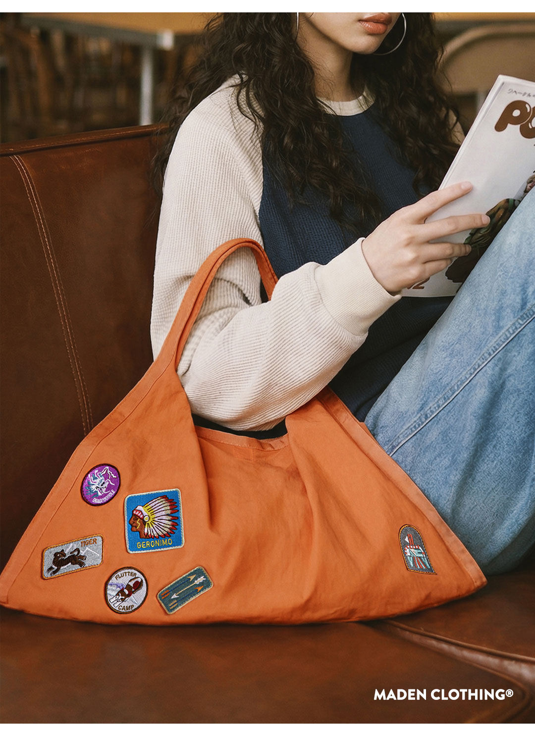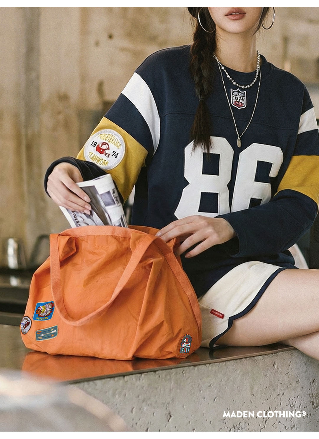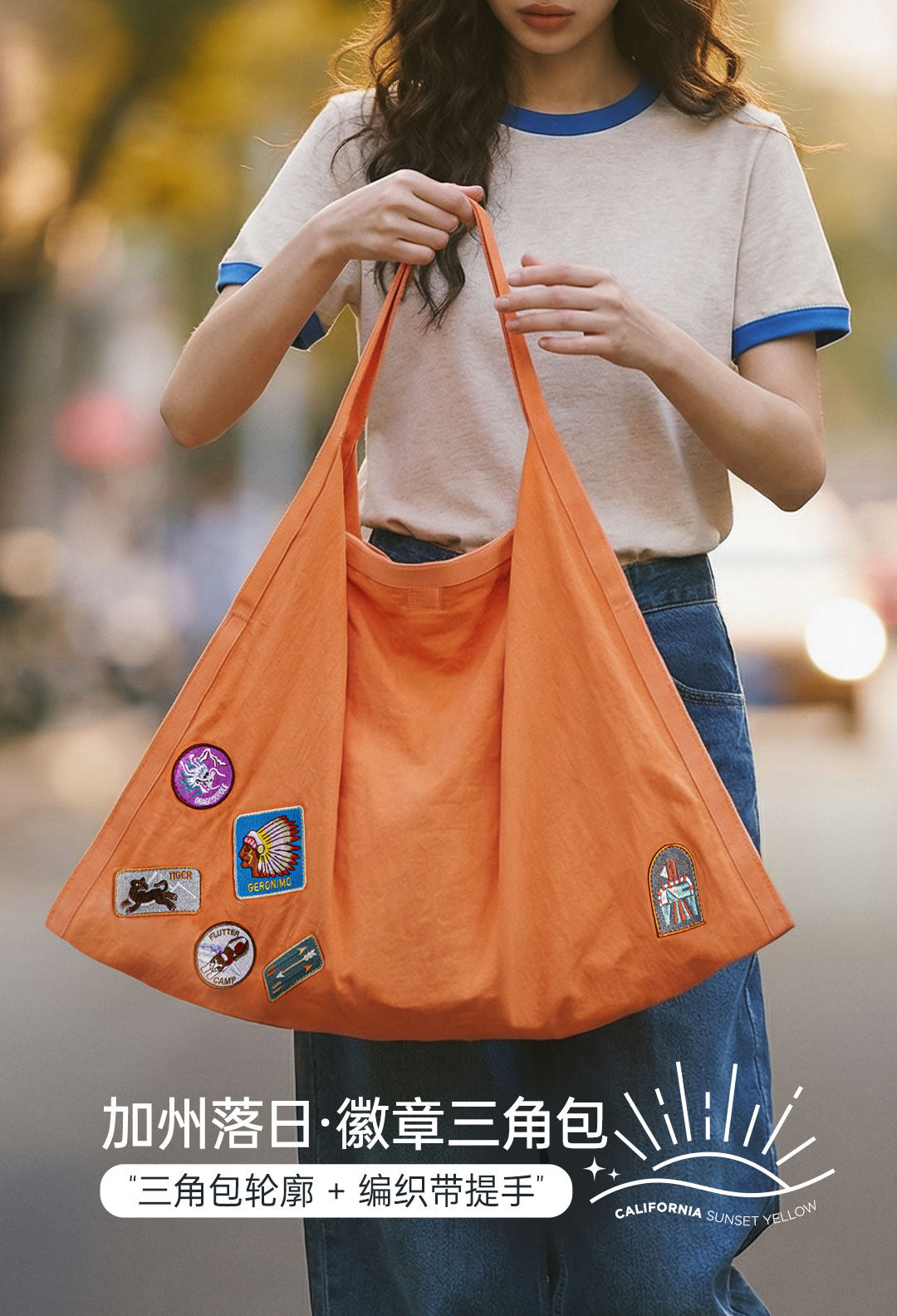 马登落日橘尼龙超大容量通勤电脑手提单肩出行轻托特包三角包女士