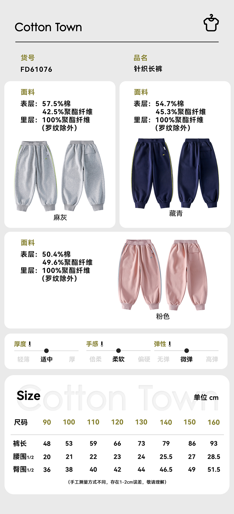 【A类针织长裤 】棉花堂 针织长裤 10A抗菌 不易起球 FD61076