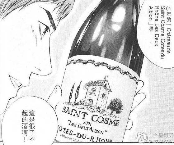 风靡亚洲的葡萄酒漫画《神之水滴》中,除了高品质的“十二使徒”,还在名酒如林的情节中提到一些平易近人的美酒,它们不仅好喝,而且性价比高,适合日常饮用。其中就有 2001 年的圣戈斯城堡罗纳河谷阿比恩干红(Chateau de Saint Cosme Cotes du Rhone Les Deux Albion)。
