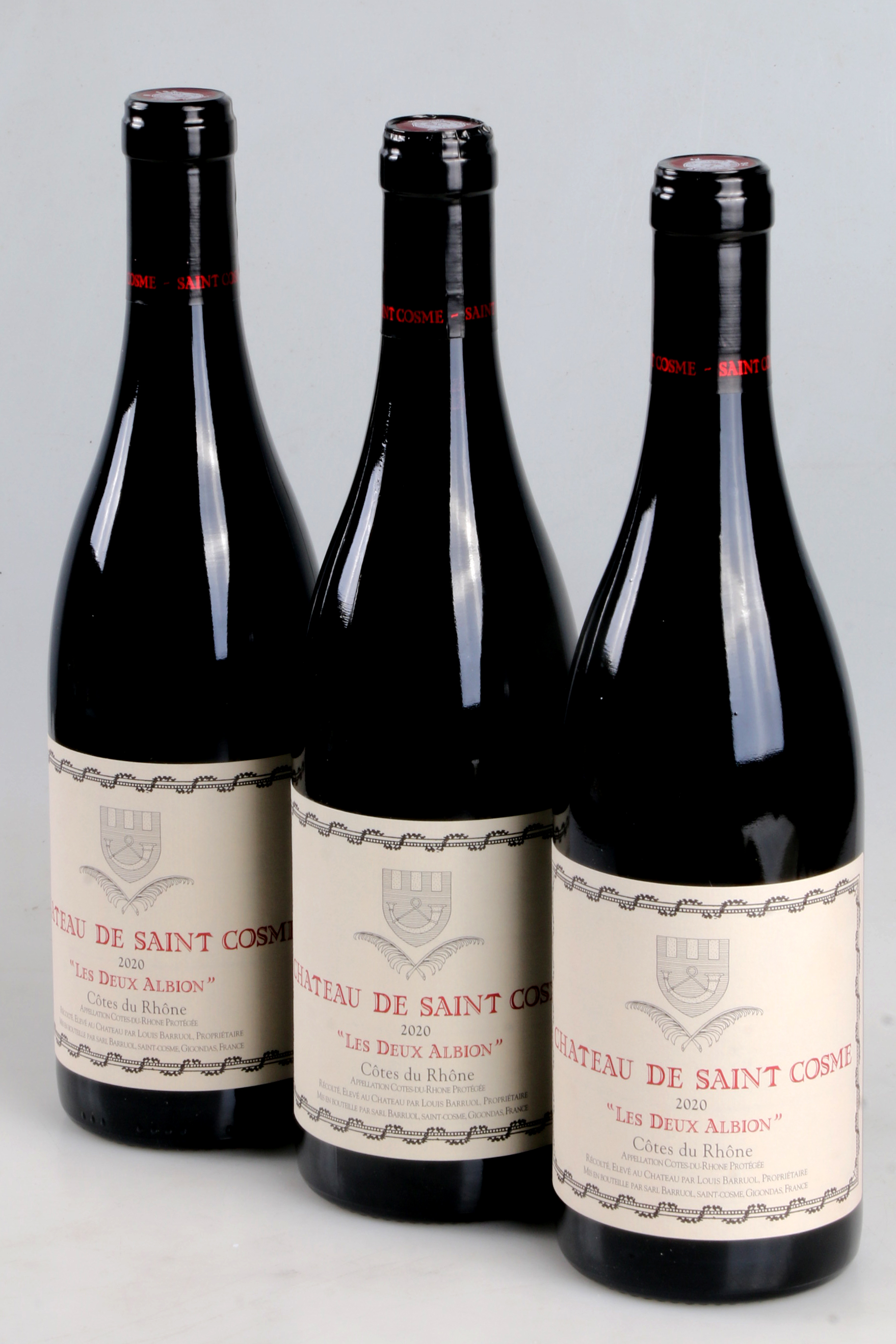 以下是 2020 年圣戈斯城堡奥比恩庄主特酿干红(Chateau de Saint du Rhone Les Deux Albion,中文名以背标为准)的详细介绍。