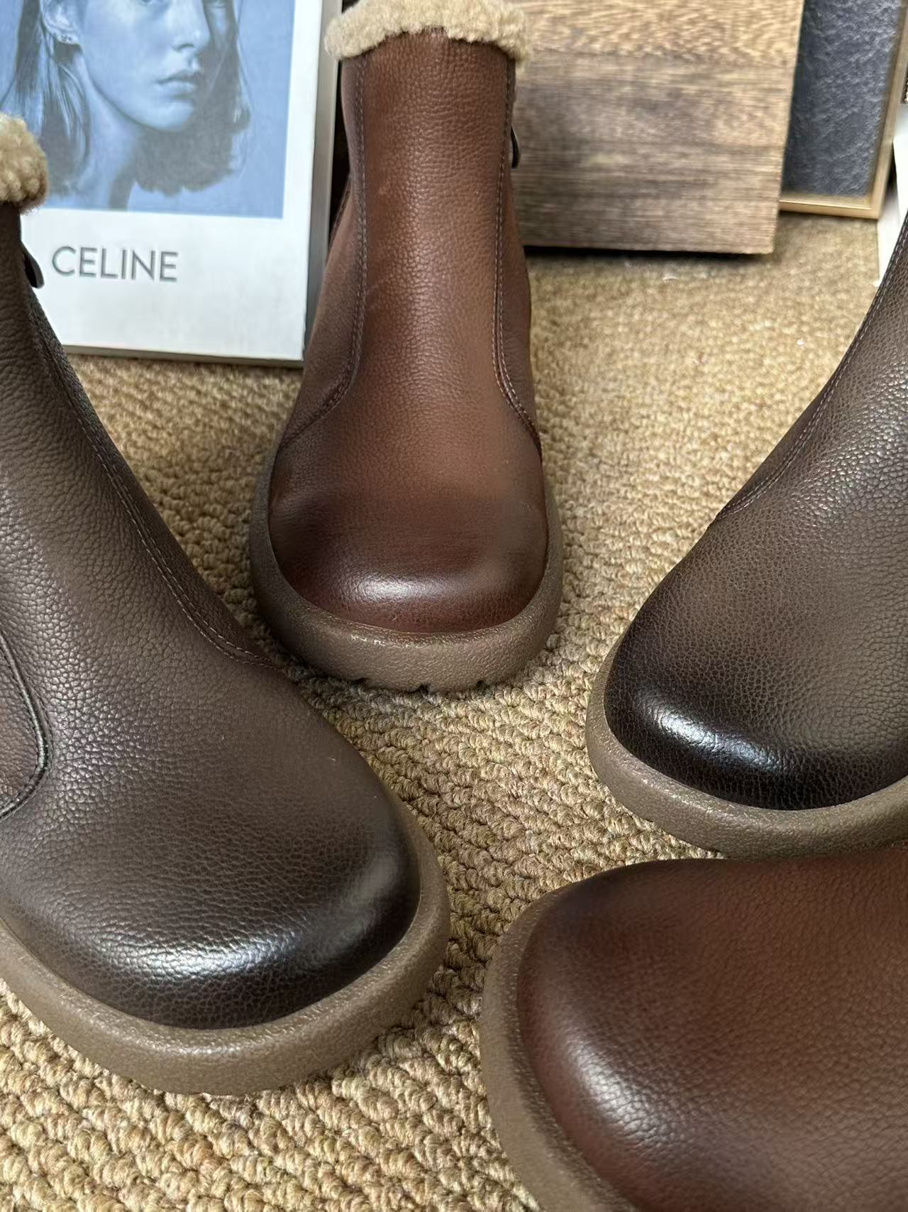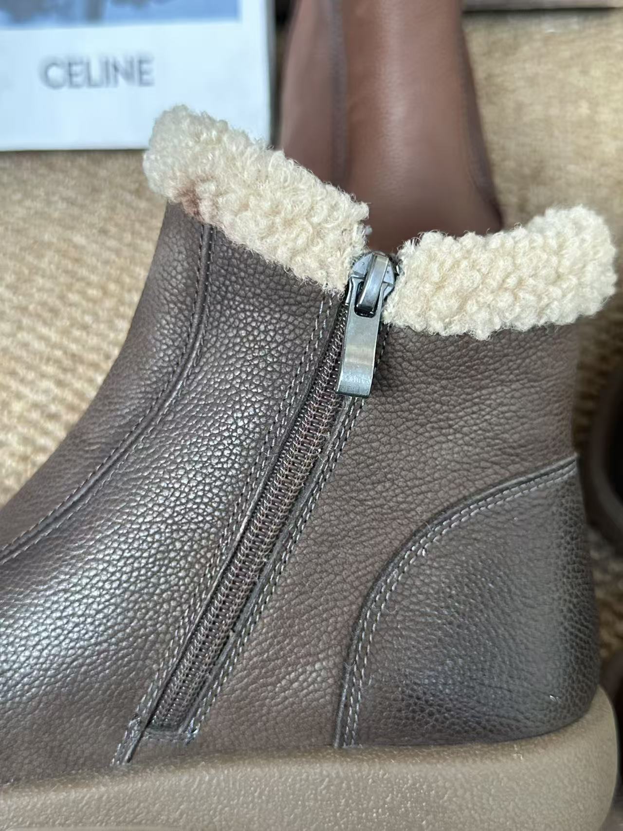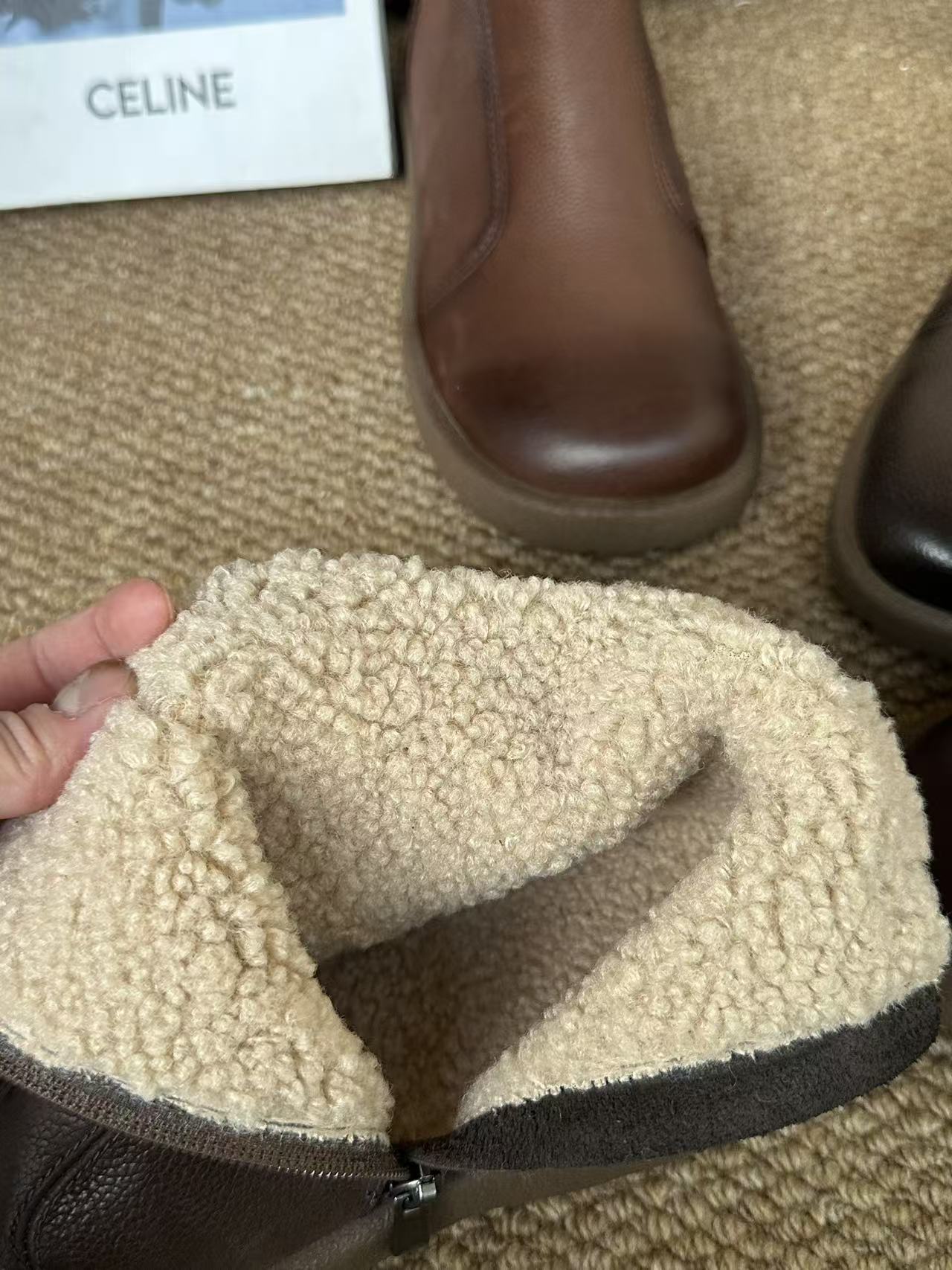 手工复古做旧雪地靴!2025小众设计加绒保暖棉靴女磨砂牛皮侧拉链棉鞋!