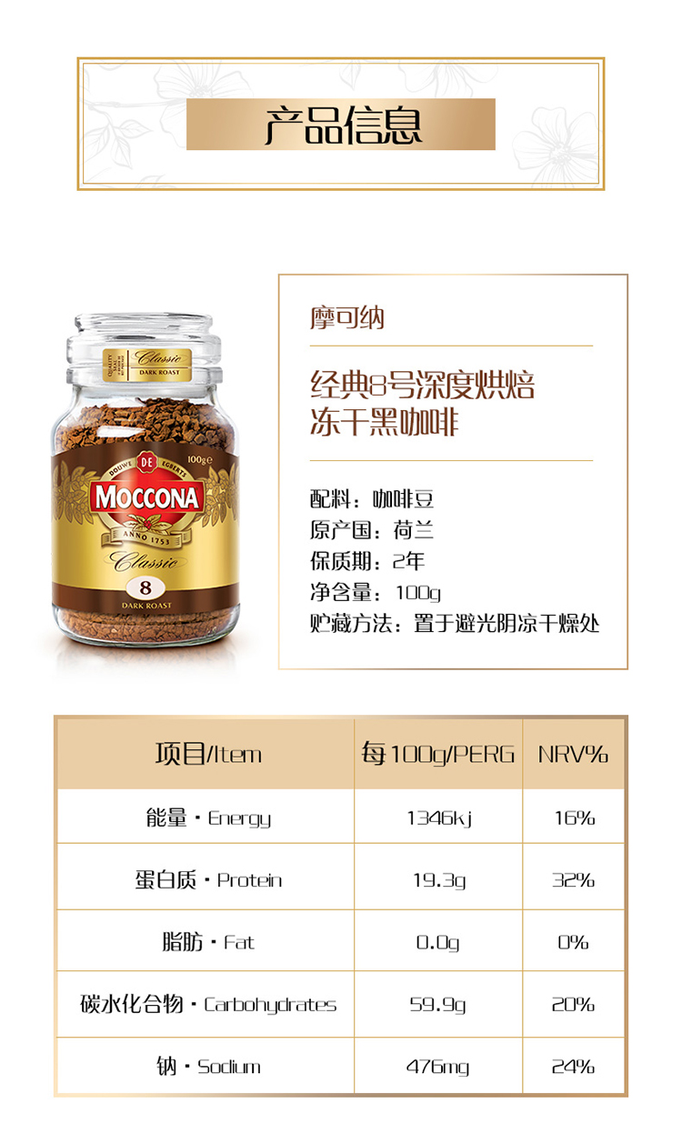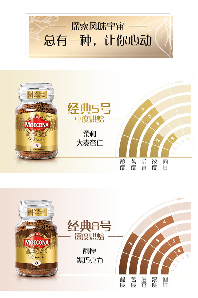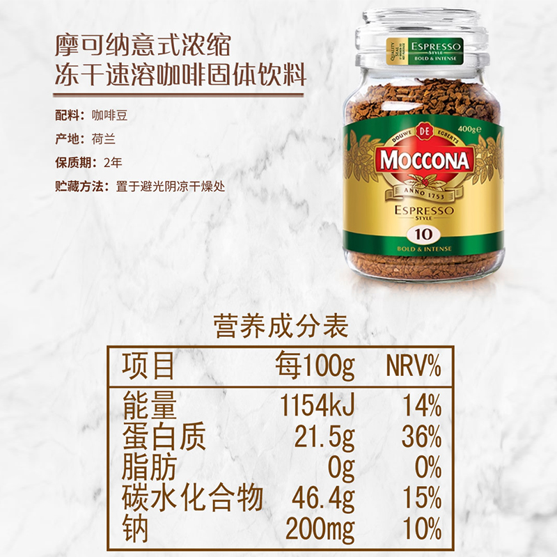 【超模君严选】荷兰MOCCONA摩可纳 经典8号深度/经典意式10号 冻干速溶咖啡400g