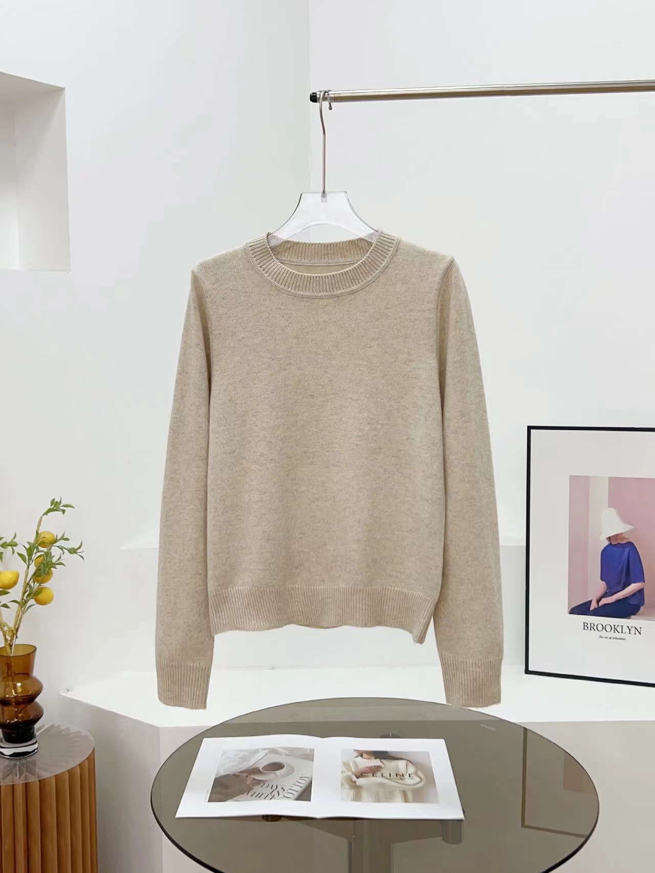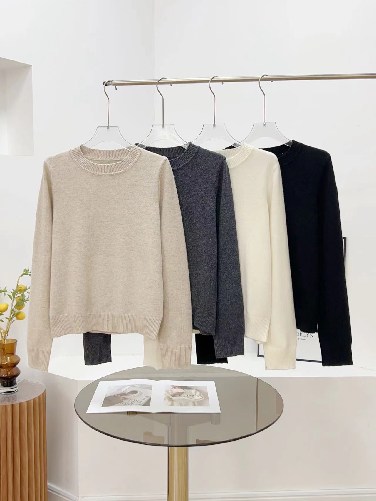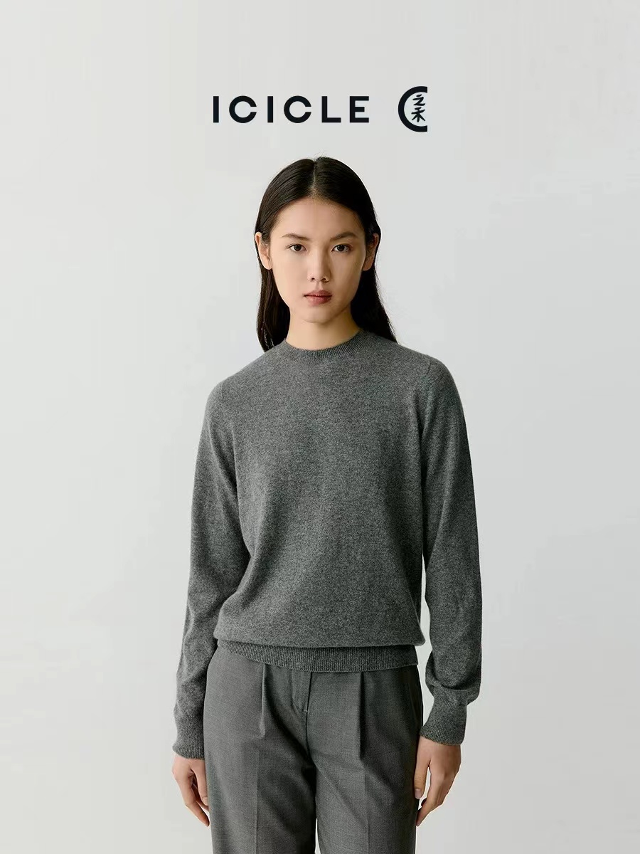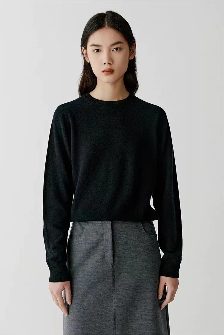 D122119秋冬新款羊毛极简基础款无缝圆领针织毛衣简约大方百搭