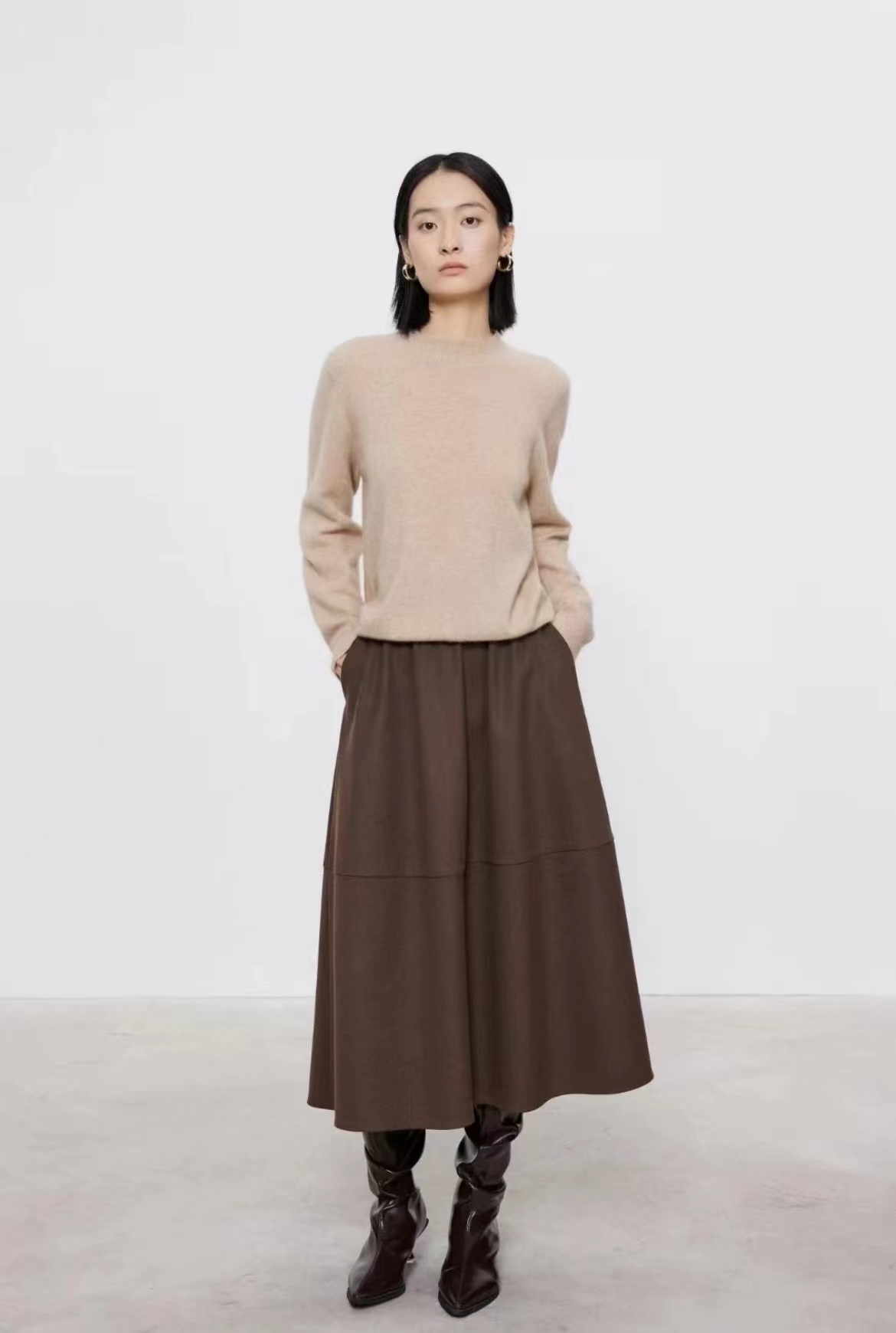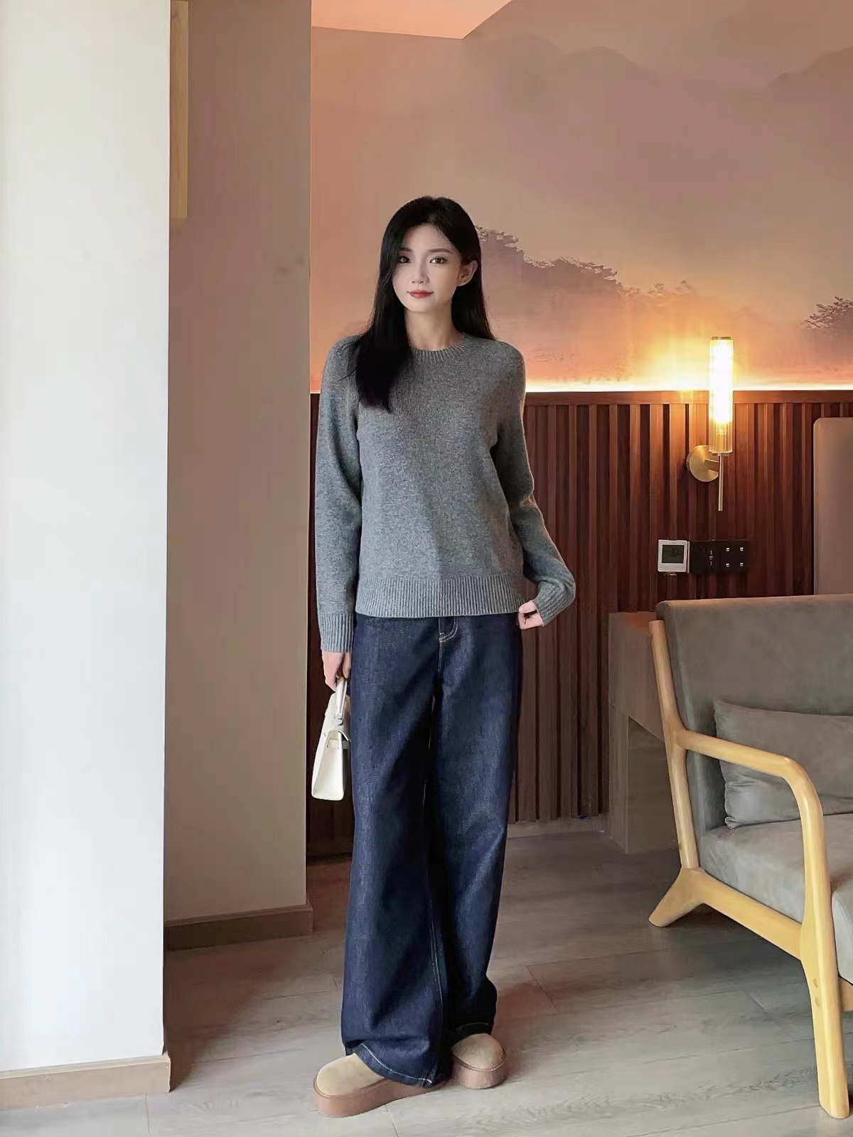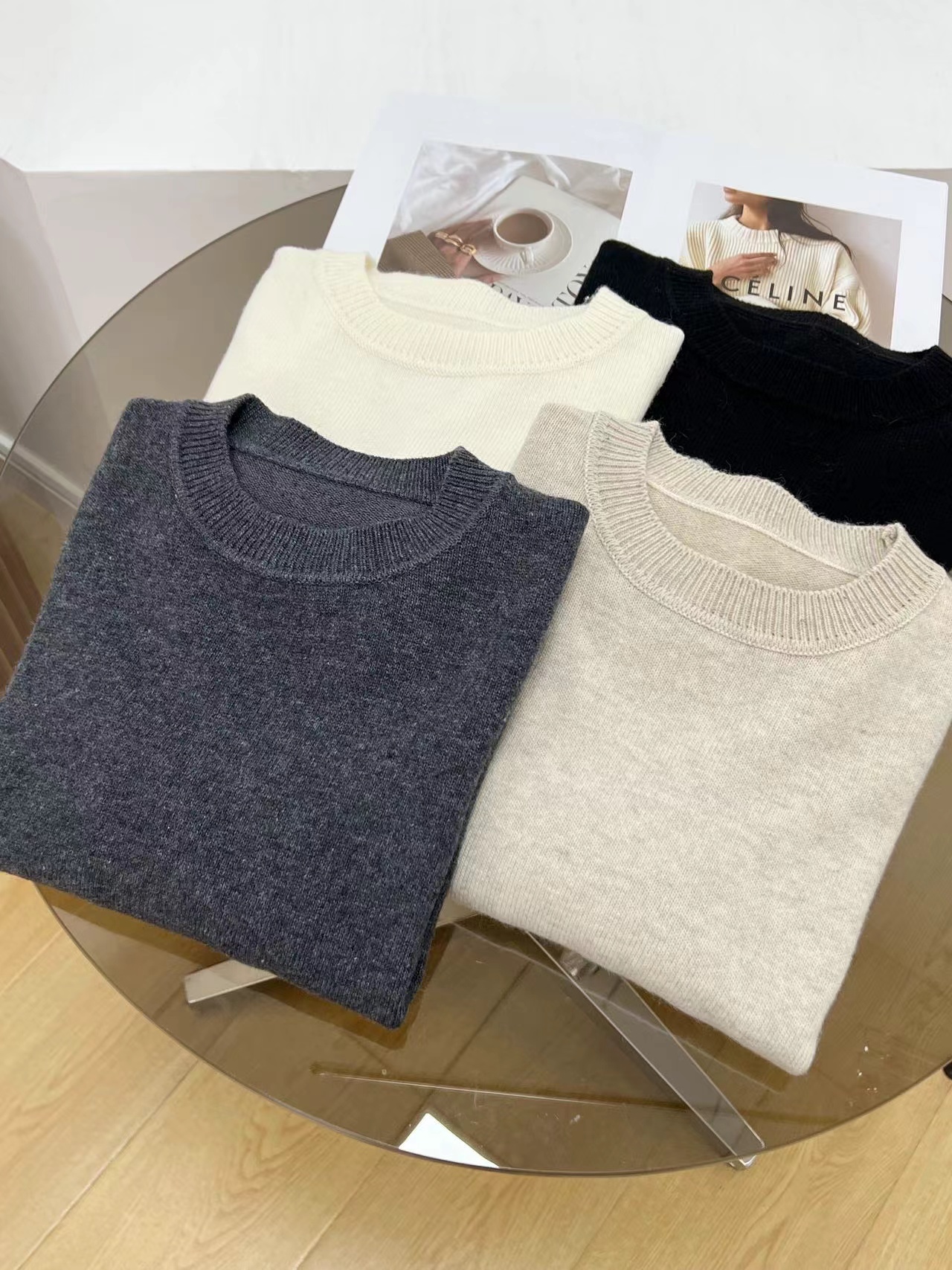 D122119秋冬新款羊毛极简基础款无缝圆领针织毛衣简约大方百搭