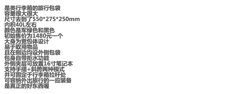 40L大容量旅行包,仪式感行李包。可置拉杆箱上の防水包袋A111366