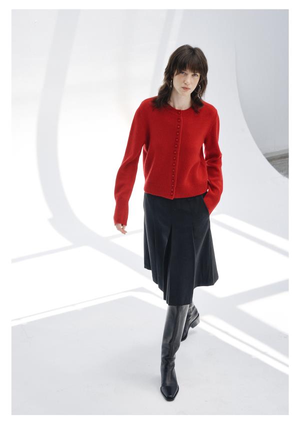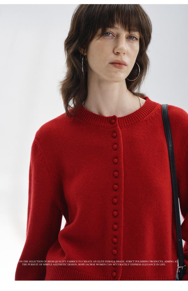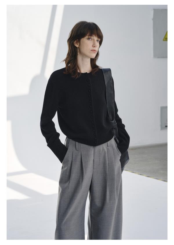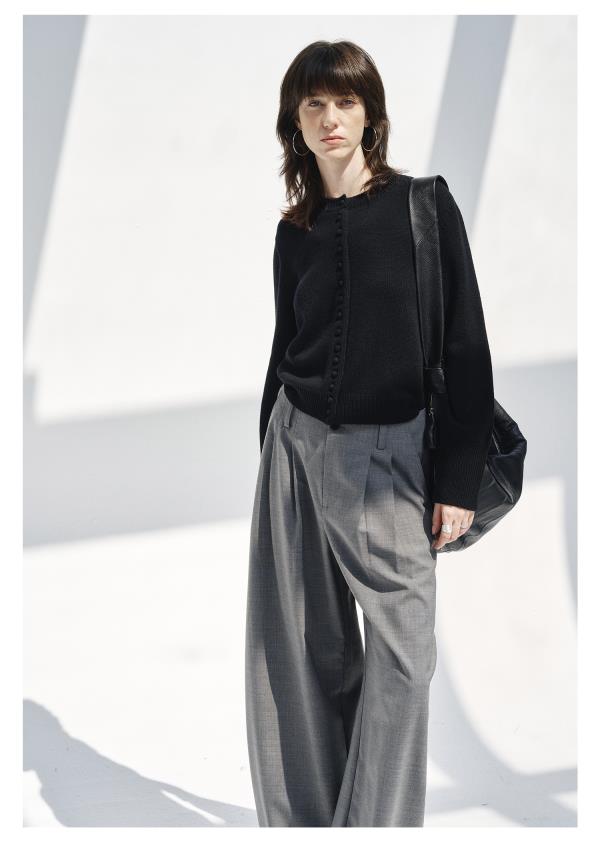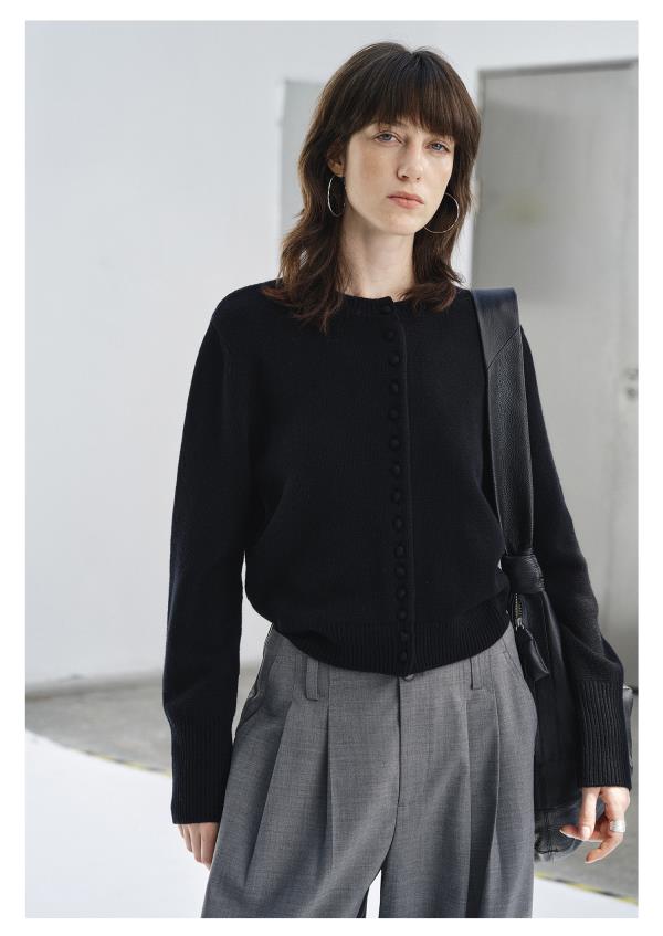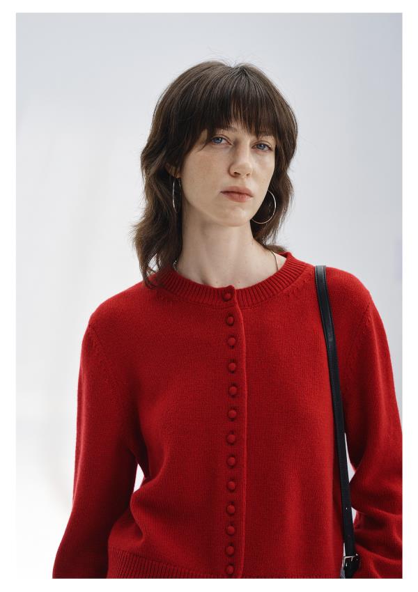 棉仓3661506003-【蘑菇蘑菇】全羊毛纽扣毛衣