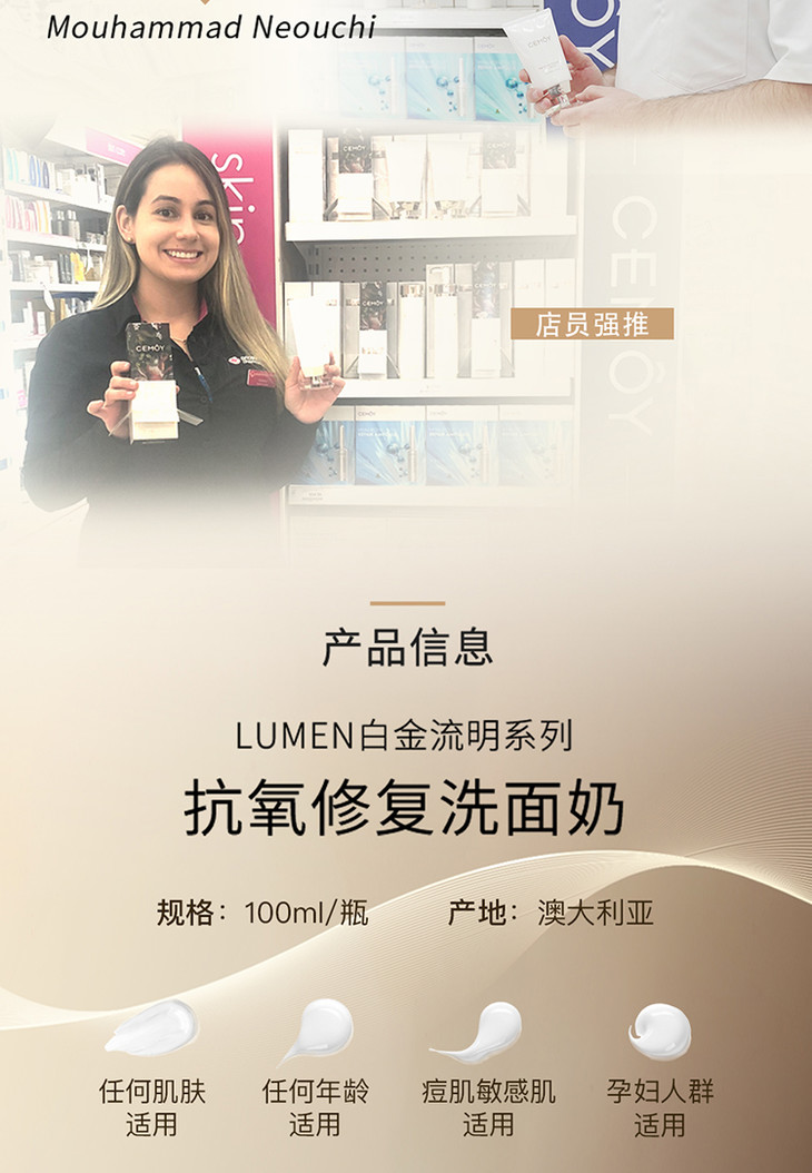 现货▲澳洲cemoy白金流明洗面奶 氨基酸温和清洁毛孔控油 100ML