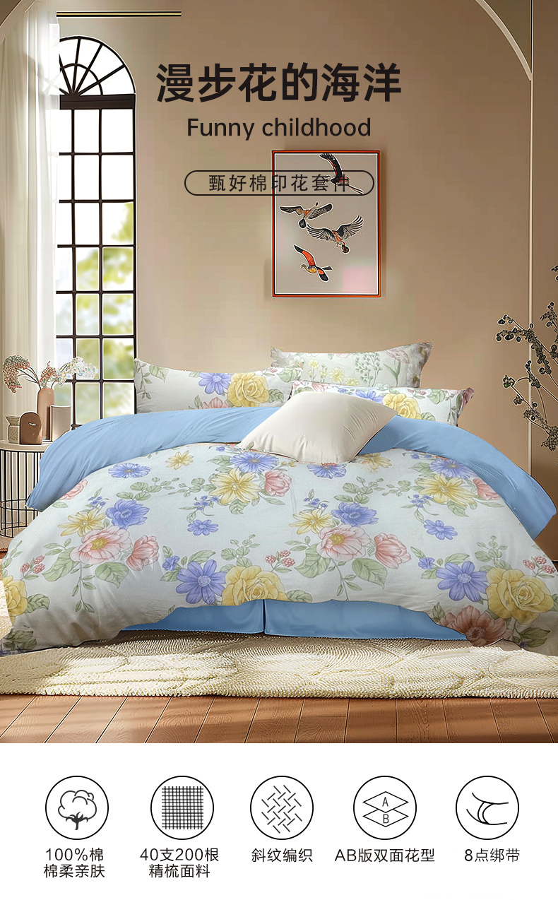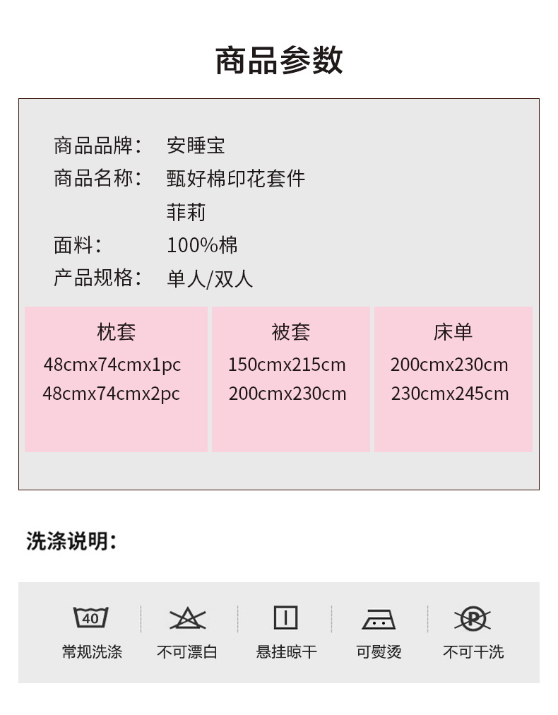 【春上新】10楼 安睡宝 甄好棉印花四件套-菲莉 吊牌价1599-1799元 活动价279-299元