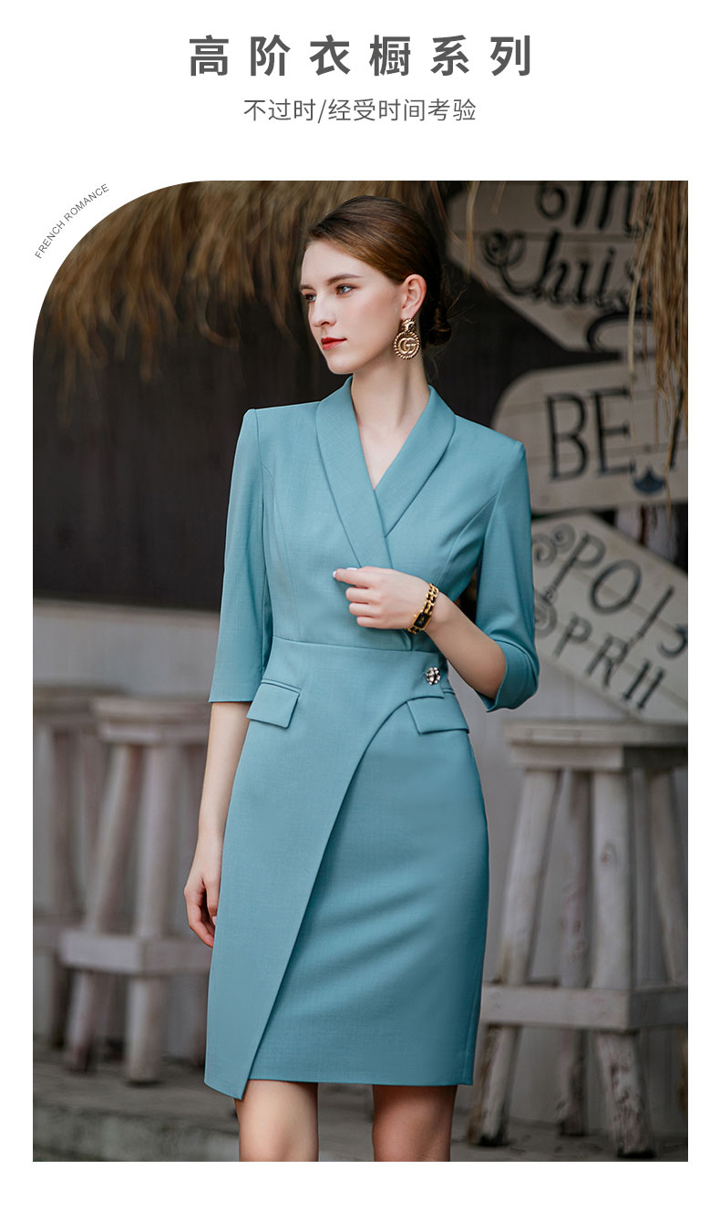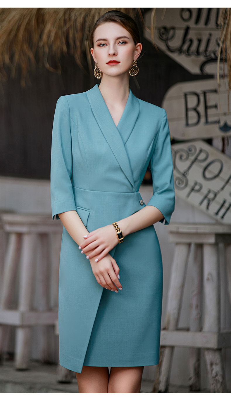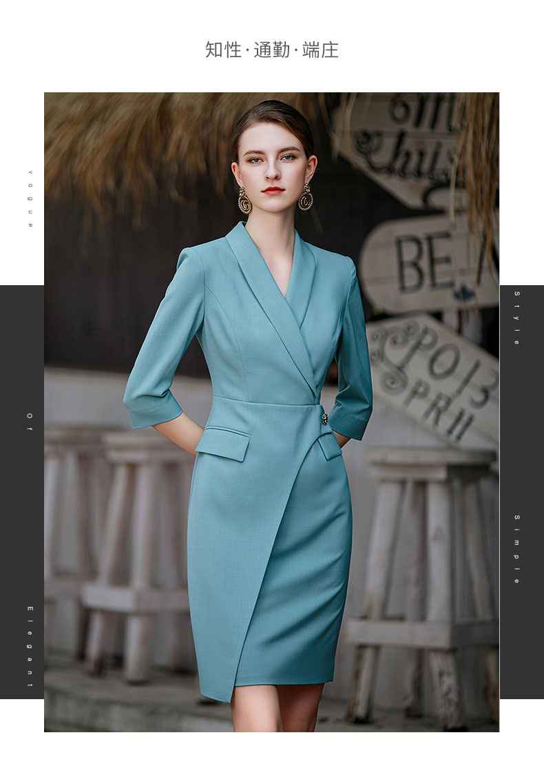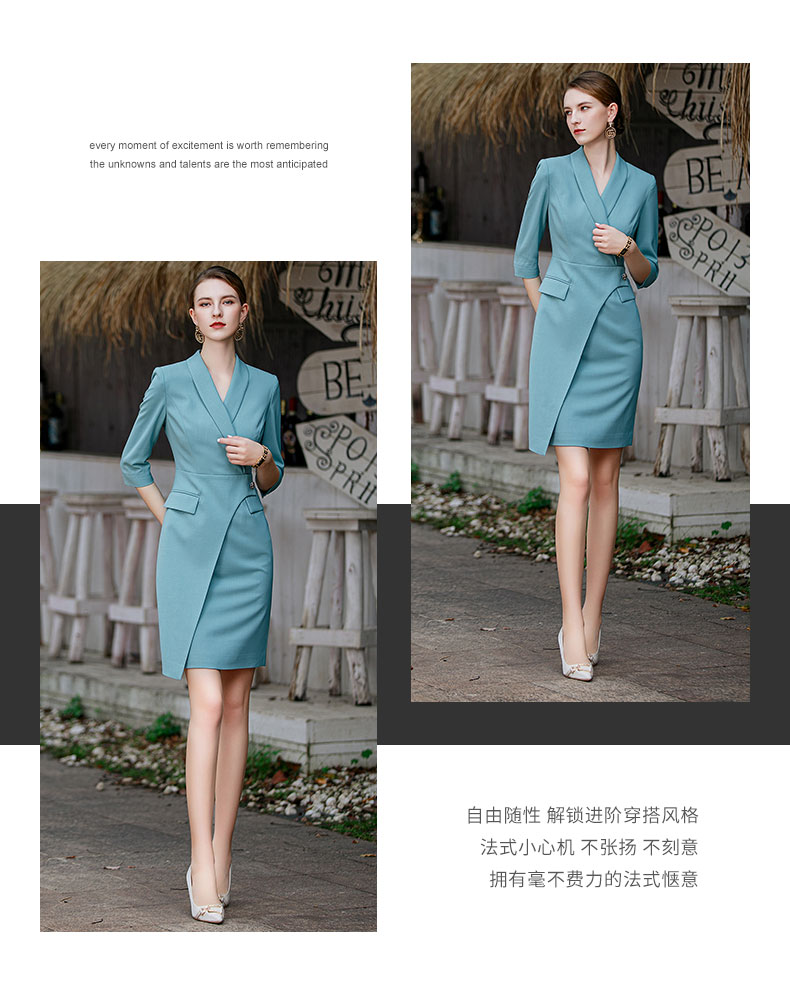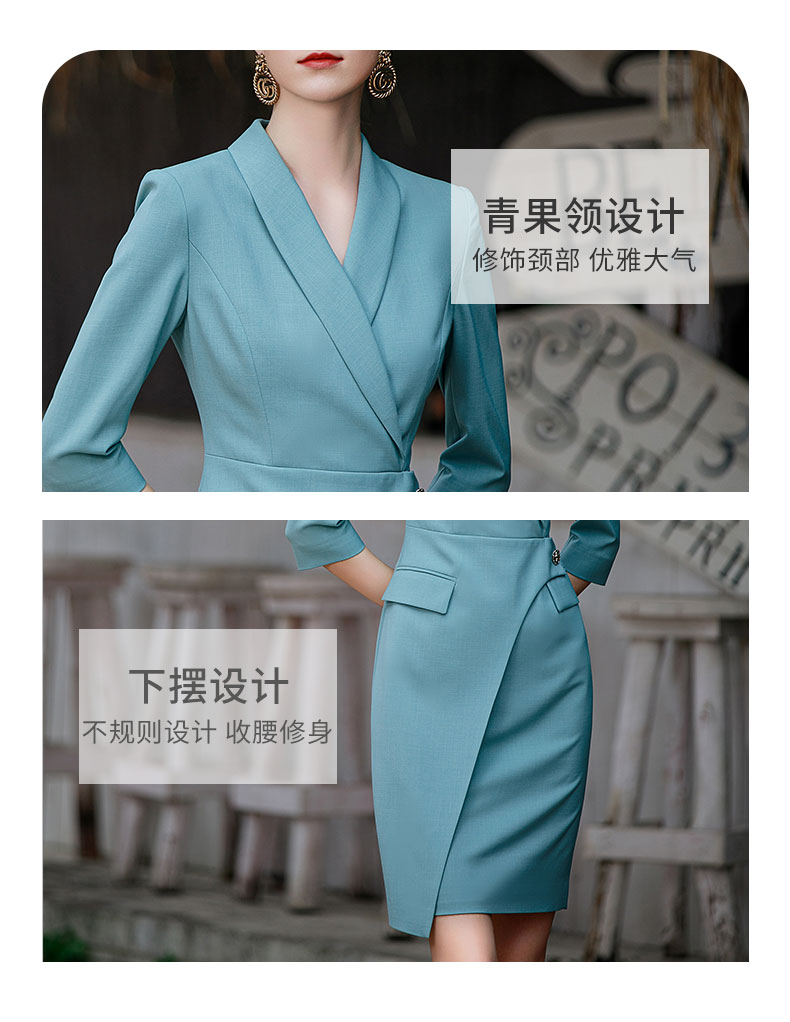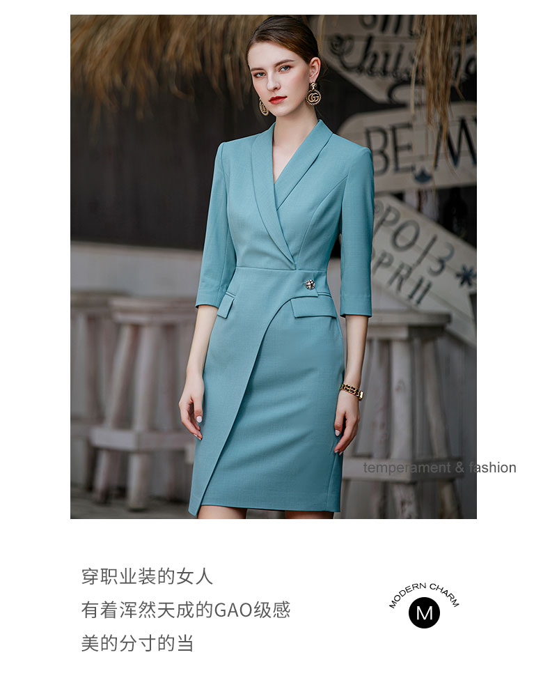 AD灰绿色职业连衣裙女春款时尚气质女神范西装裙高级感主持人正装