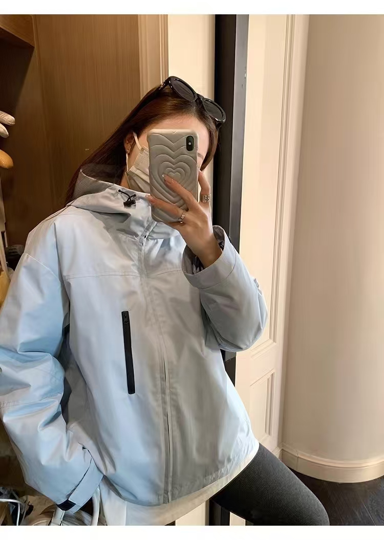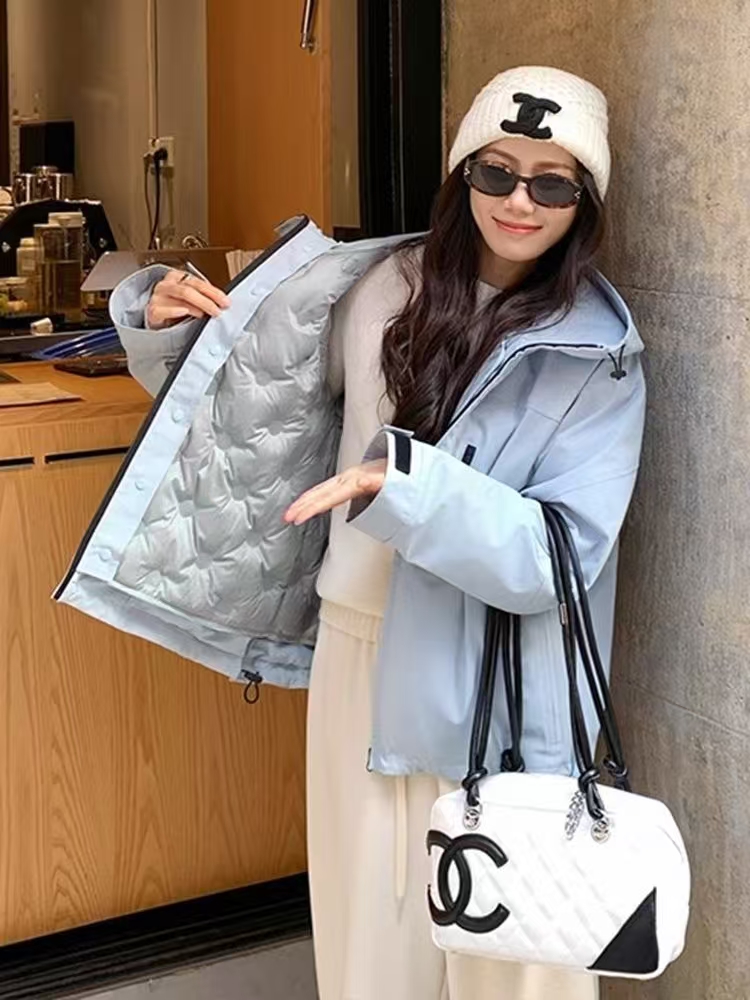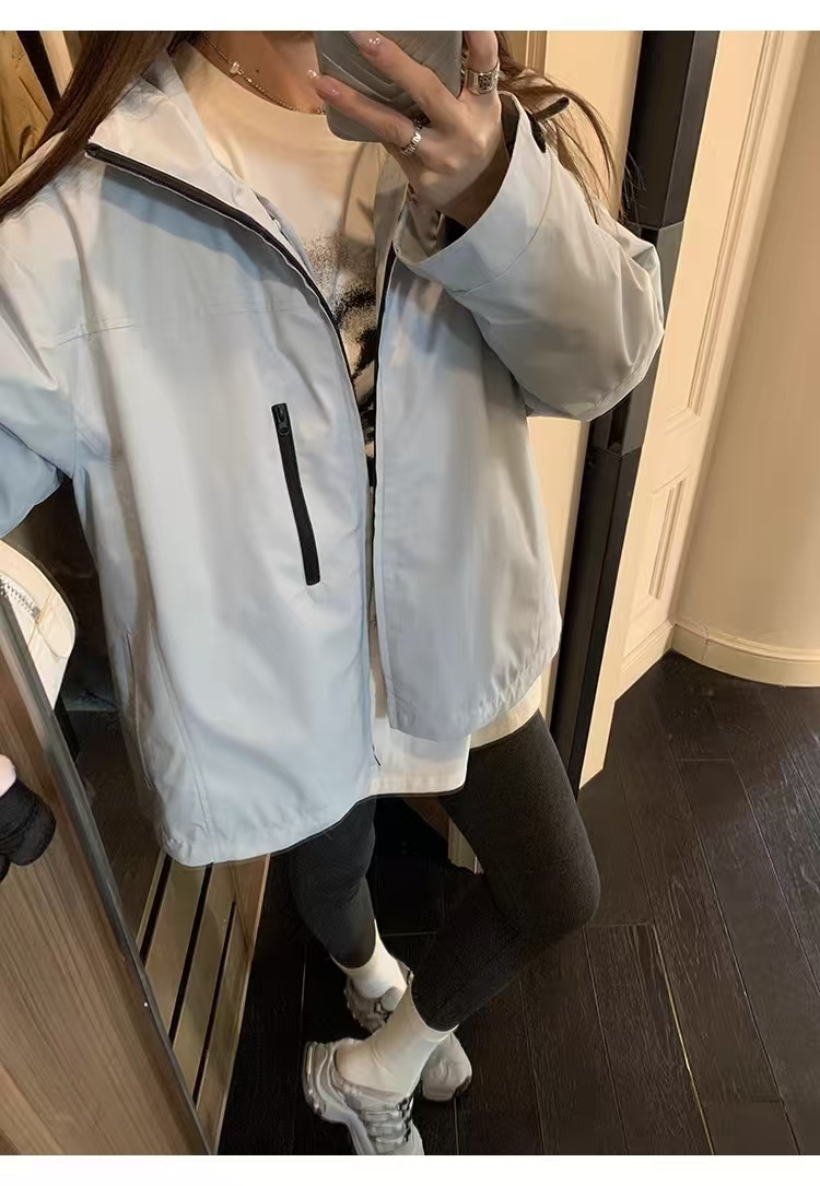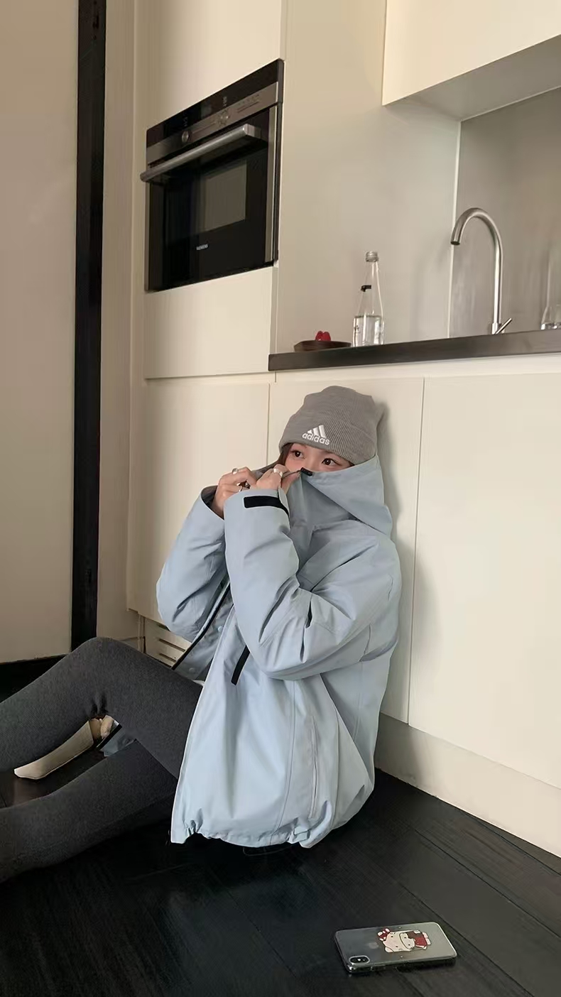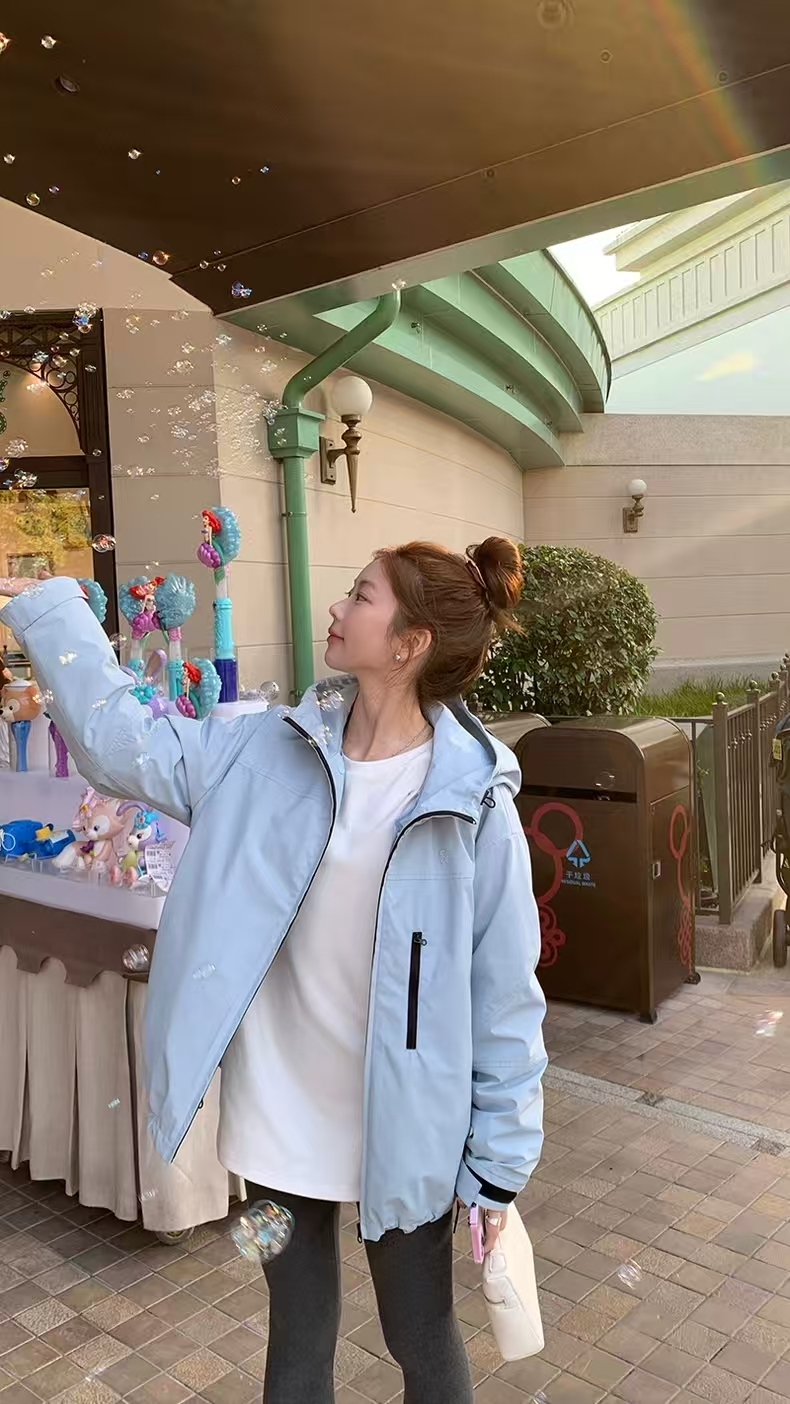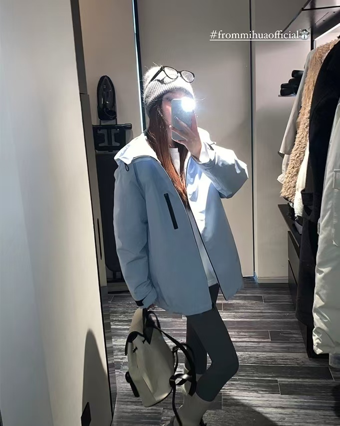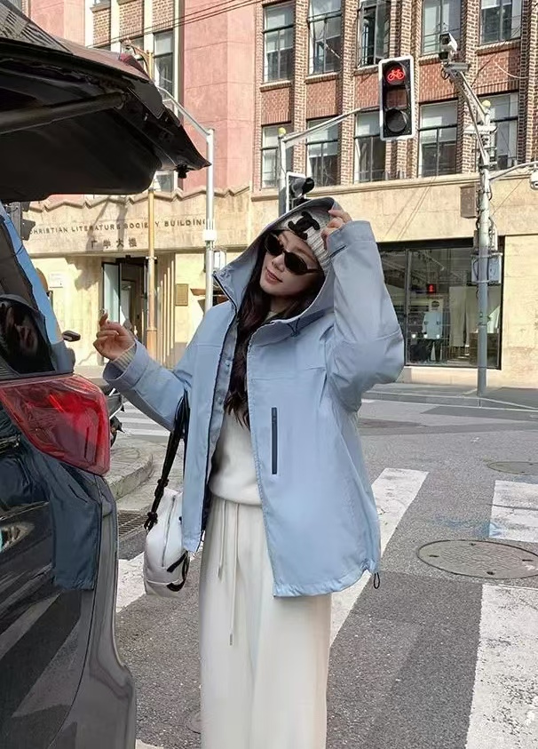 轻盈又自在轻便又舒适,浅色的冲锋衣配上秋冬天真的温柔耐看。