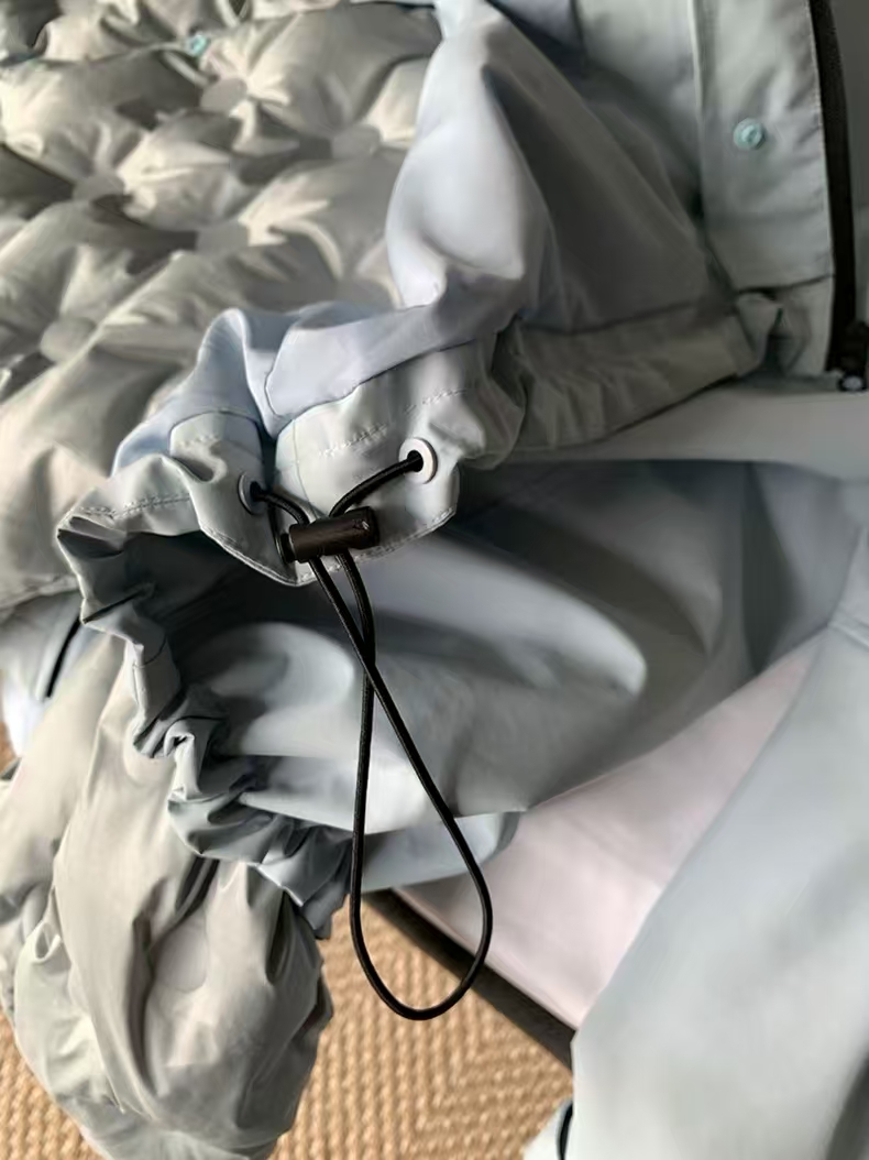 袖口、下摆魔术贴+弹力抽绳设计,可以随心调节大小,